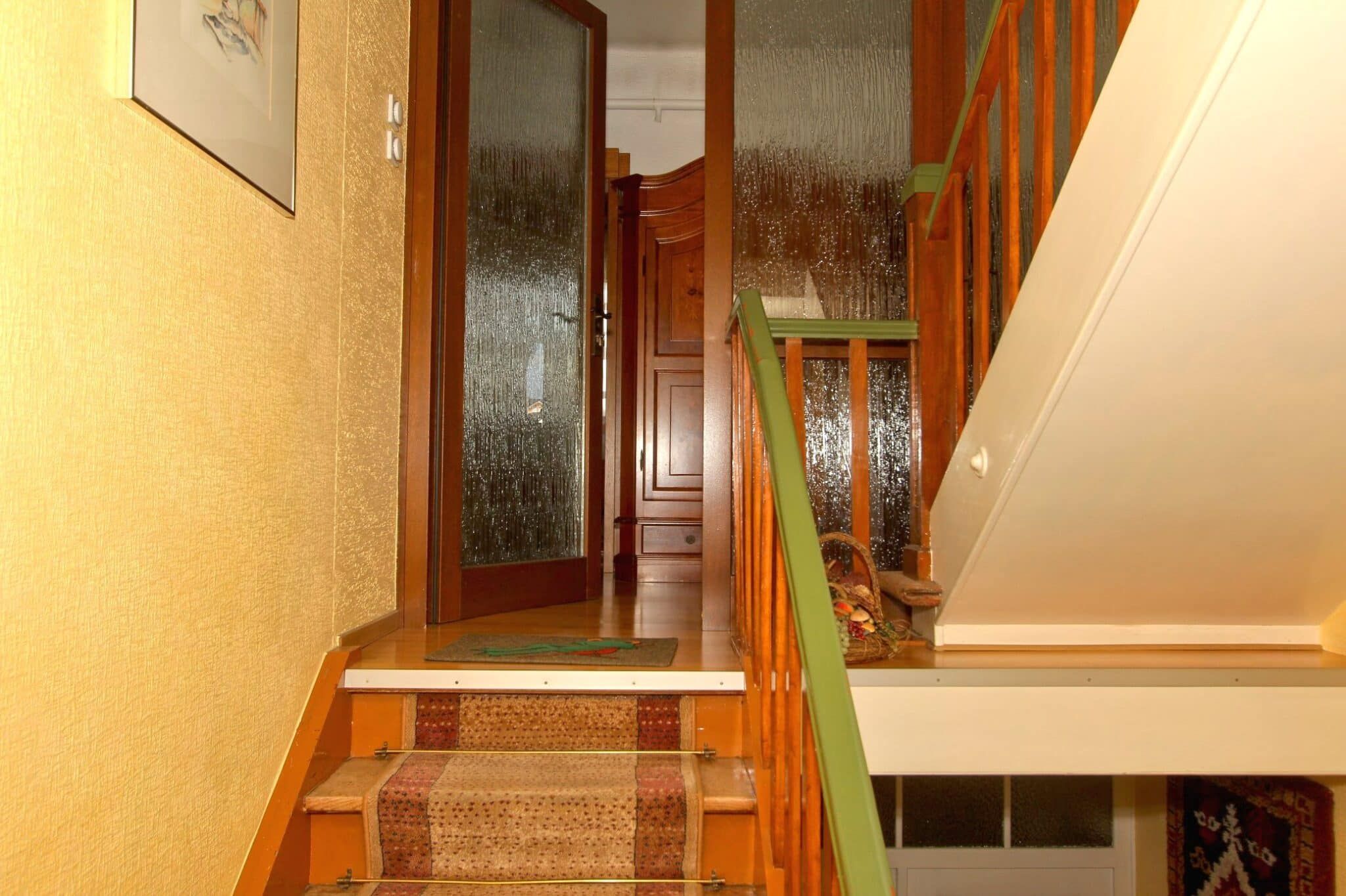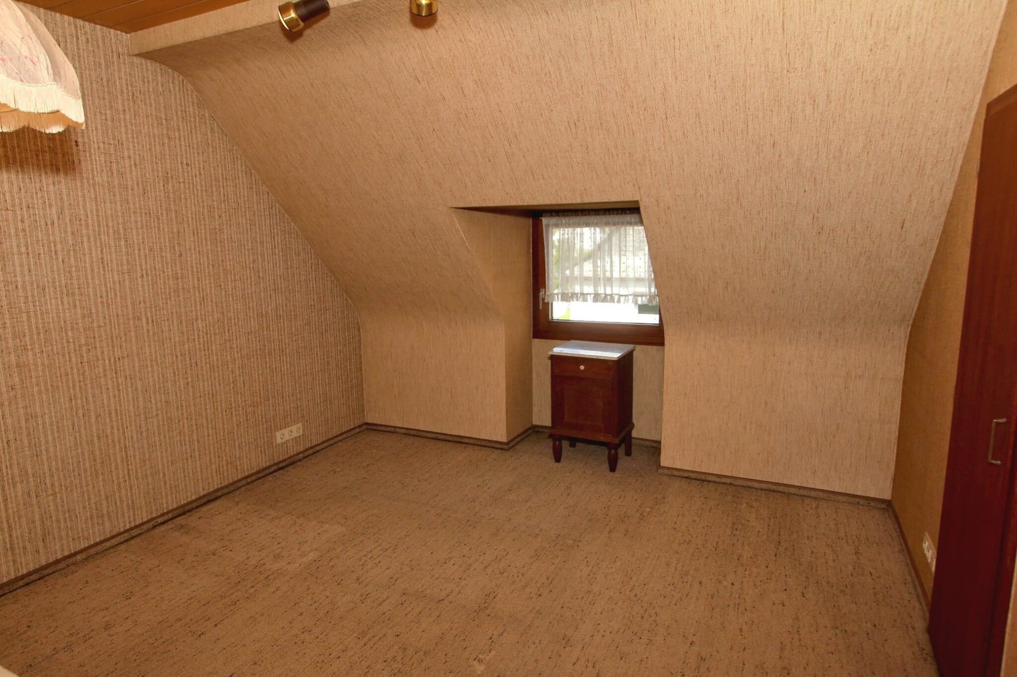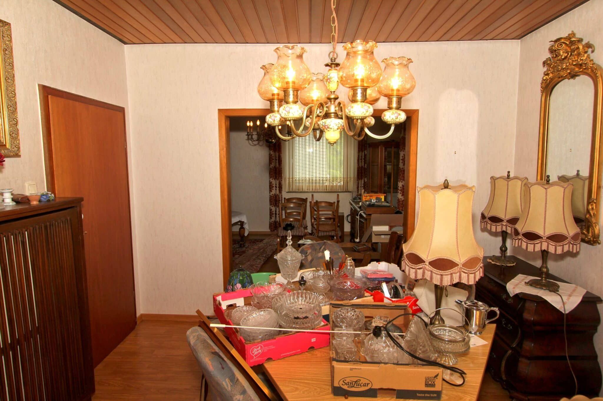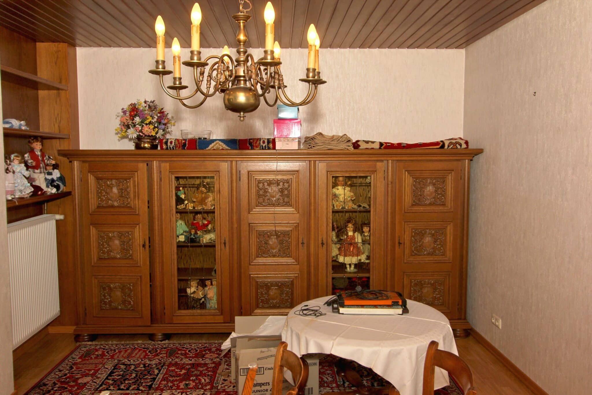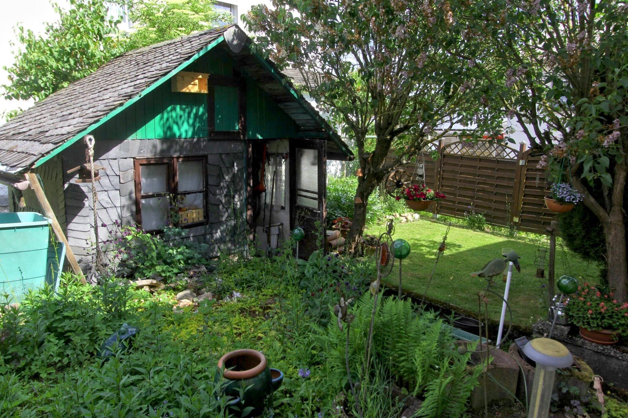 In der Schulstraße, zentral gelegen, wurde im Jahre 1936 dieses repräsentative Anwesen als Wohn- und Geschäftshaus erbaut. 1961 wurde die ehemalige Garage zu Wohnraum umgebaut und 1970 die Terrasse zu einem neuen Gebäudeteil mit Walmdach aufgestockt. Das Haus kann als Ganzes mit mehreren Generationen, als einzelne Wohnungen oder – wie ursprünglich – als Wohn- und Geschäftshaus genutzt werden. Durch das vorgelagerte Treppenhaus sind die Wohnbereiche in Erd- und Obergeschoss separiert und in sich abgeschlossen. Der Wohnbereich im Dachgeschoss ist durch den Flur der Obergeschosswohnung zu erreichen.