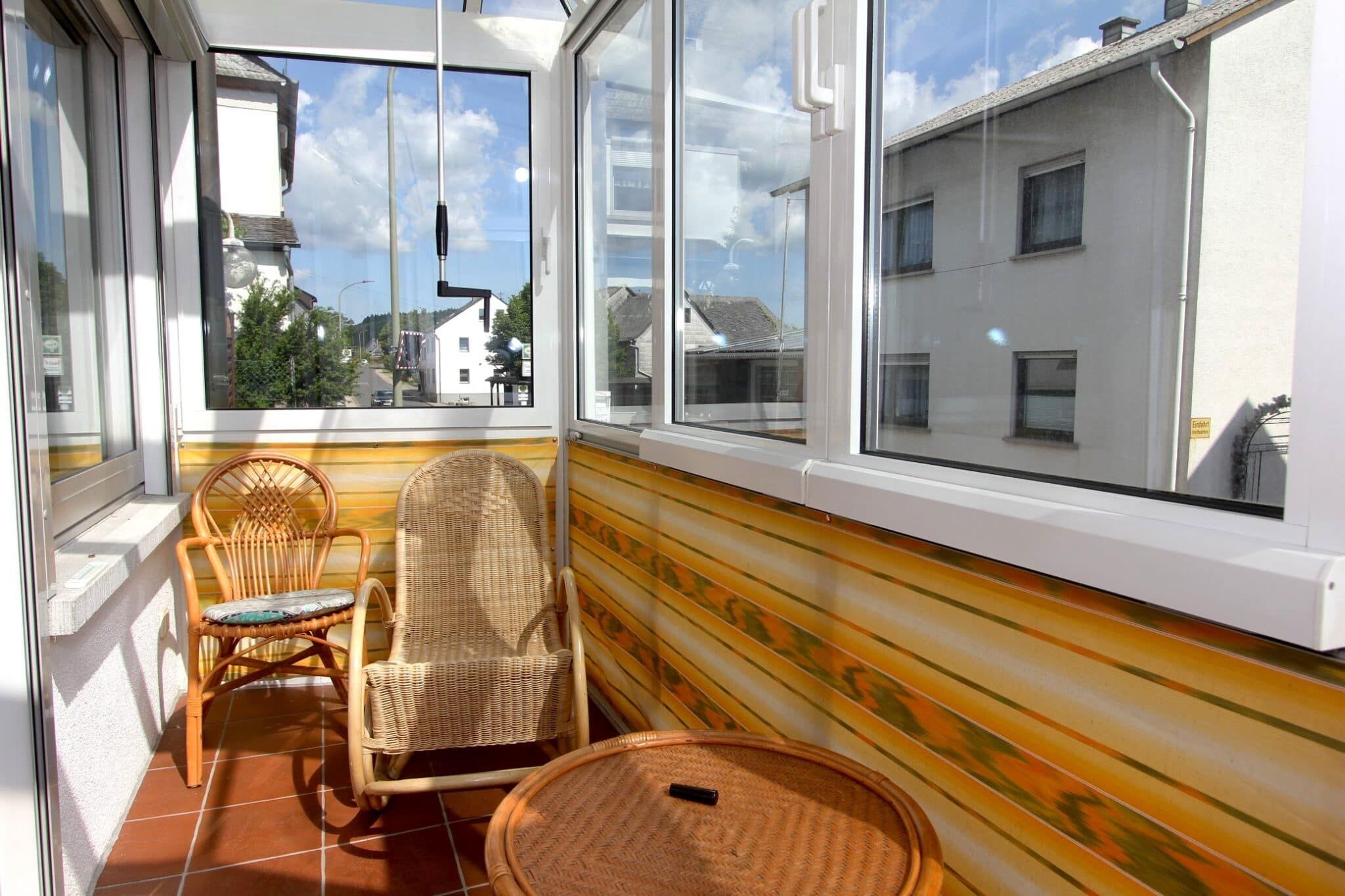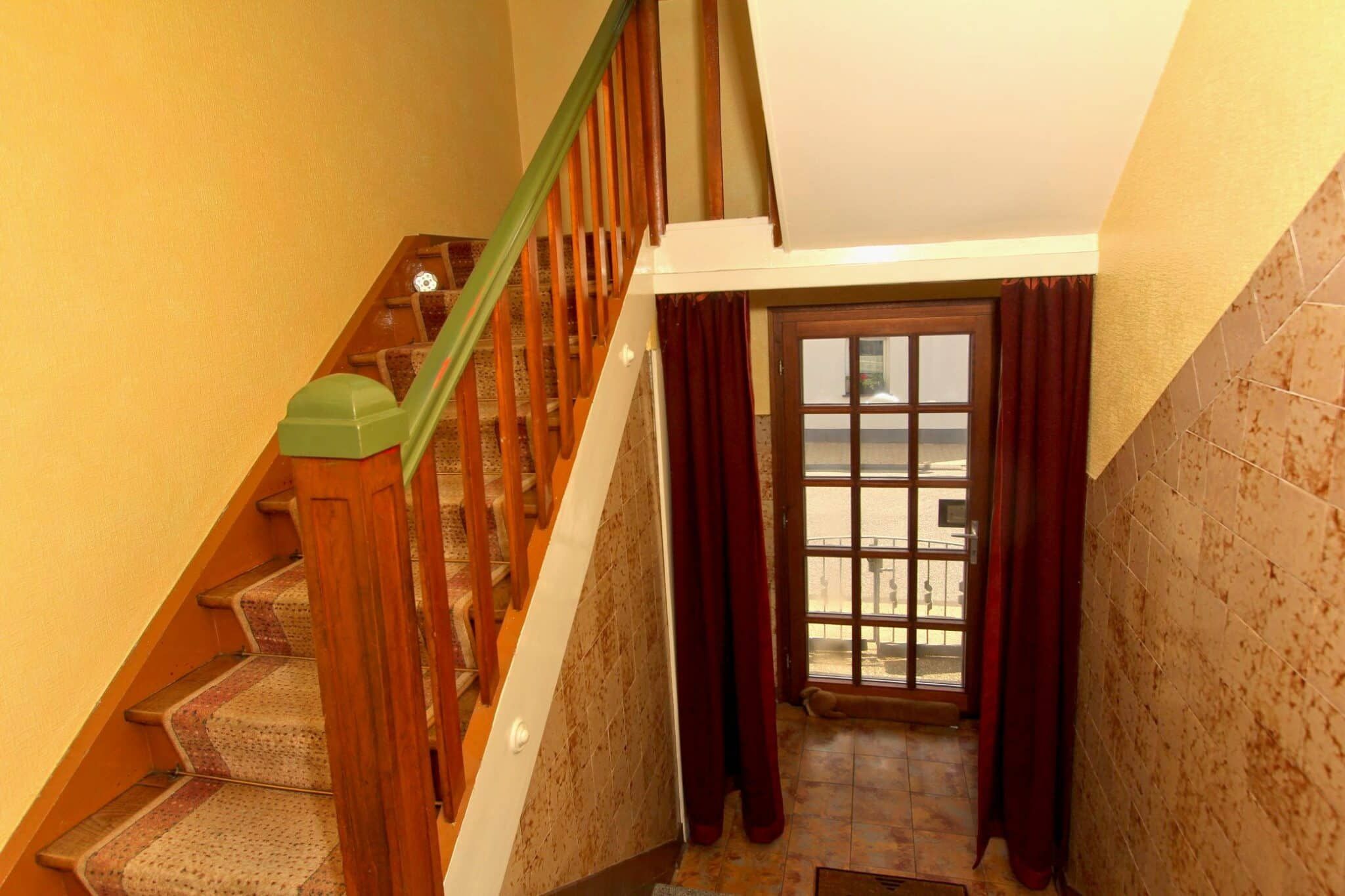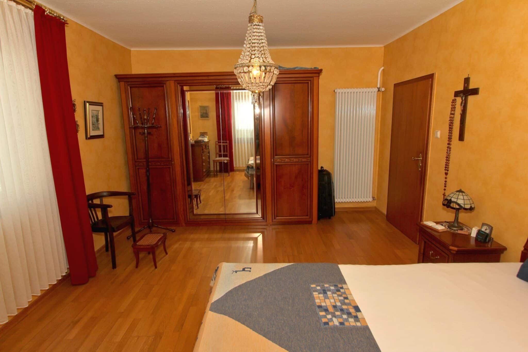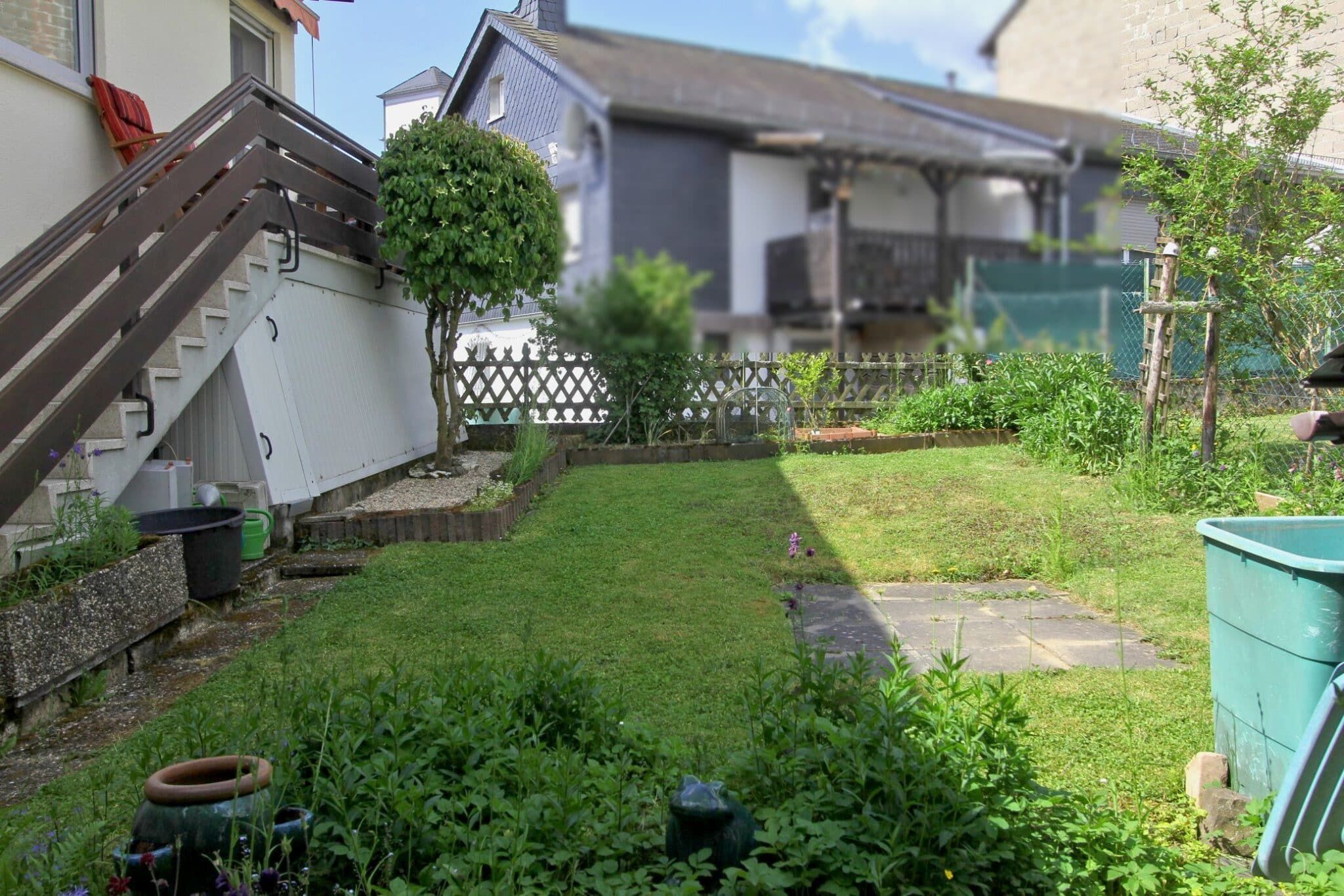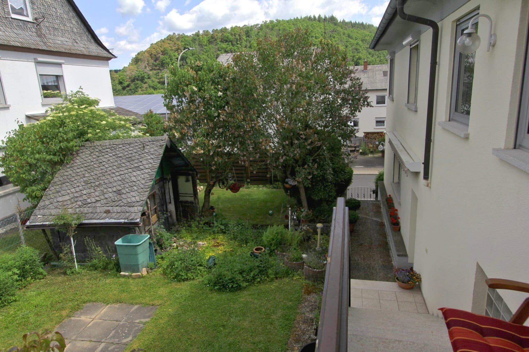 In der Schulstraße, zentral gelegen, wurde im Jahre 1936 dieses repräsentative Anwesen als Wohn- und Geschäftshaus erbaut. 1961 wurde die ehemalige Garage zu Wohnraum umgebaut und 1970 die Terrasse zu einem neuen Gebäudeteil mit Walmdach aufgestockt. Das Haus kann als Ganzes mit mehreren Generationen, als einzelne Wohnungen oder – wie ursprünglich – als Wohn- und Geschäftshaus genutzt werden. Durch das vorgelagerte Treppenhaus sind die Wohnbereiche in Erd- und Obergeschoss separiert und in sich abgeschlossen. Der Wohnbereich im Dachgeschoss ist durch den Flur der Obergeschosswohnung zu erreichen.