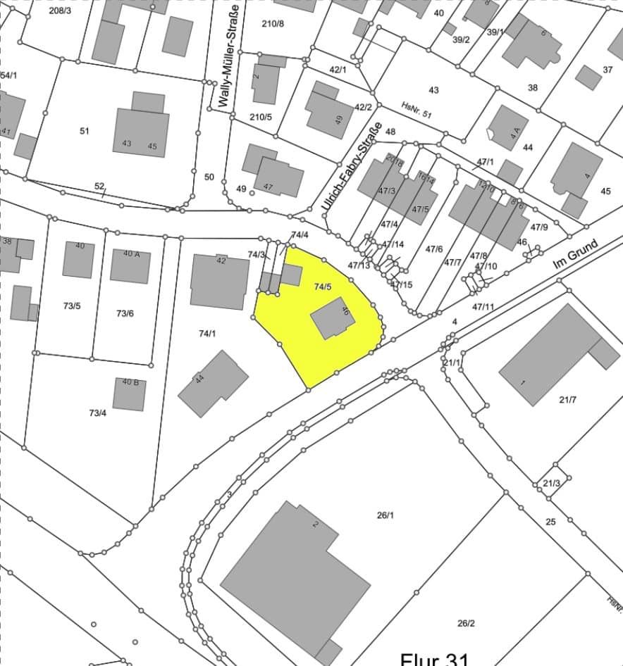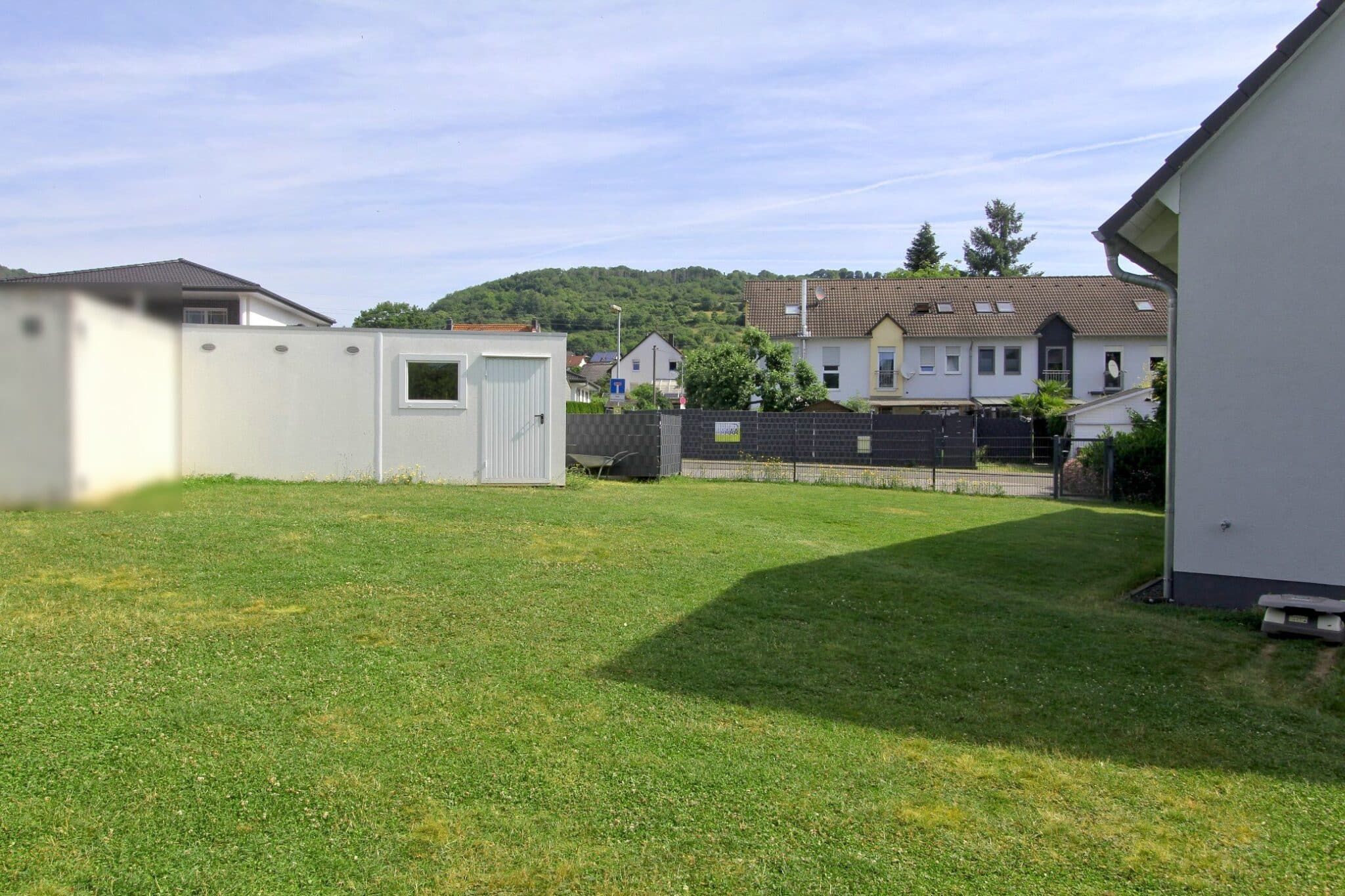 Das überwiegend als Wiesenfläche gestaltete Grundstück mit einer Größe von ca. 1037 m² ist entweder mit Hecken und Sträuchern bzw. teilweise mit einer Zaunanlage eingefriedet.