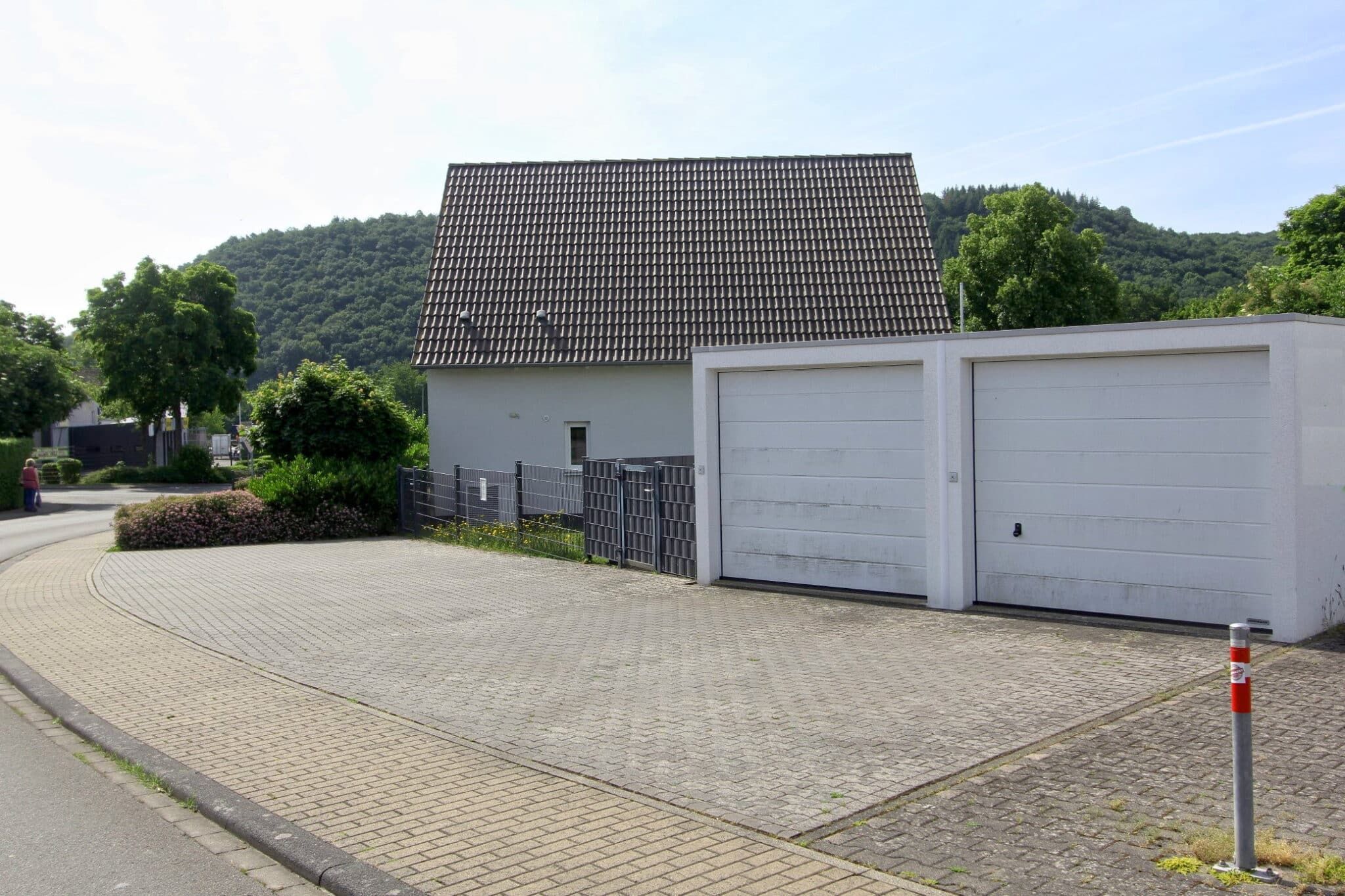 An der Hausfrontseite stehen rechts des Hauses ca. 5 gepflasterte Kfz-Stellplätze sowie eine Doppelgarage zur Verfügung.