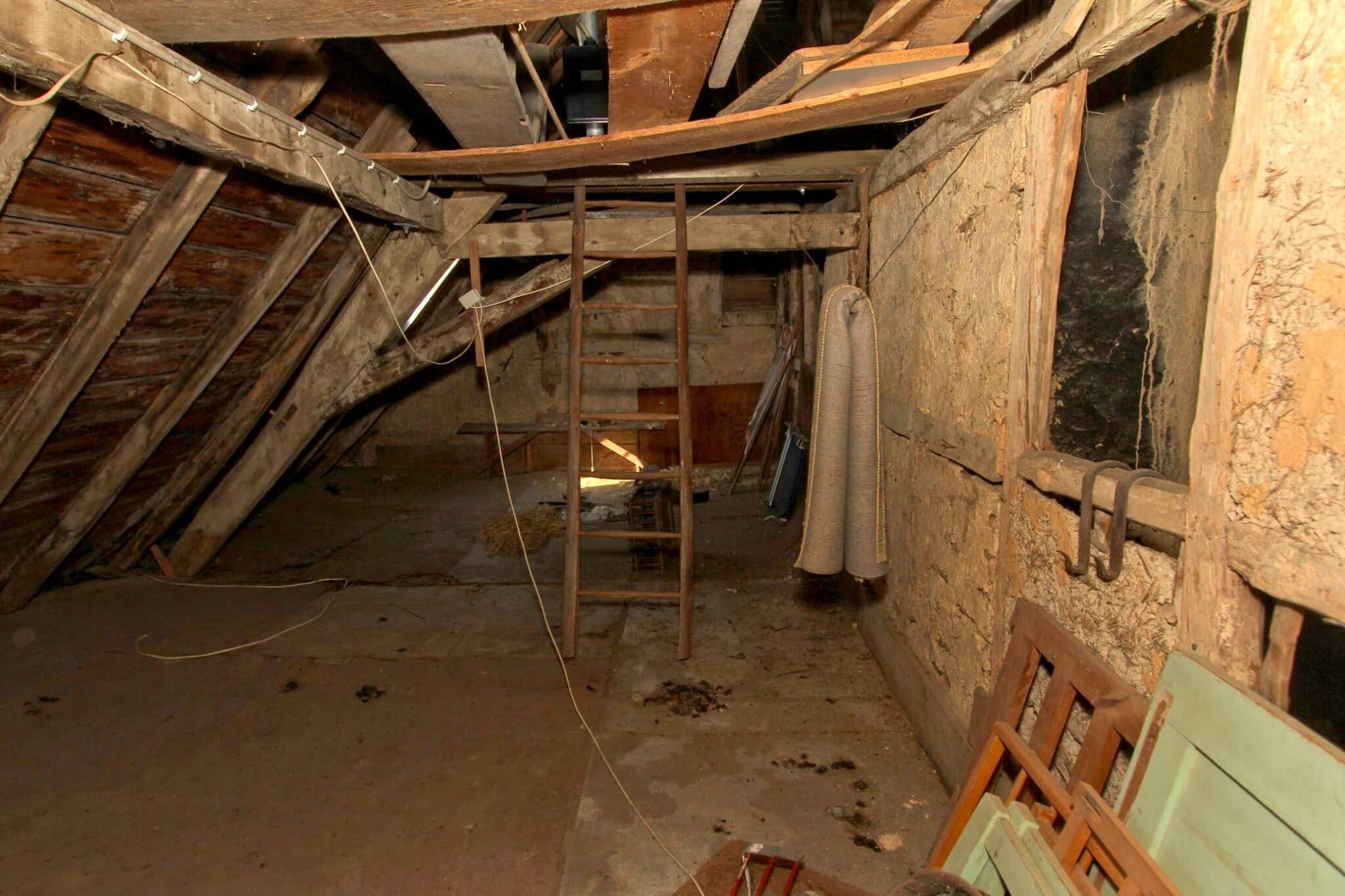 Das Haus ist teilunterkellert. Eine Holztreppe führt zum geräumigen Dachboden.