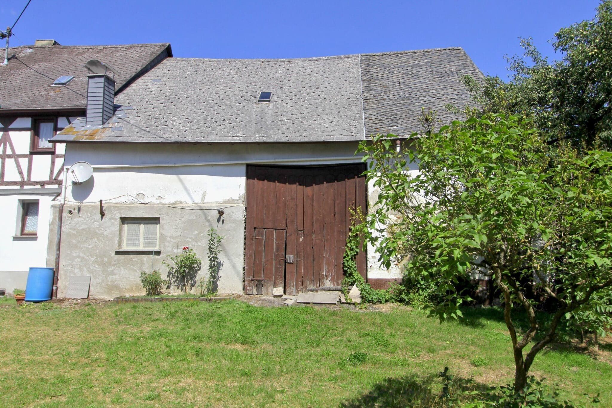 An das Haus angebaut ist das Wirtschaftsgebäude, bestehend aus Scheune und Stallungen mit Teilunterkellerung.