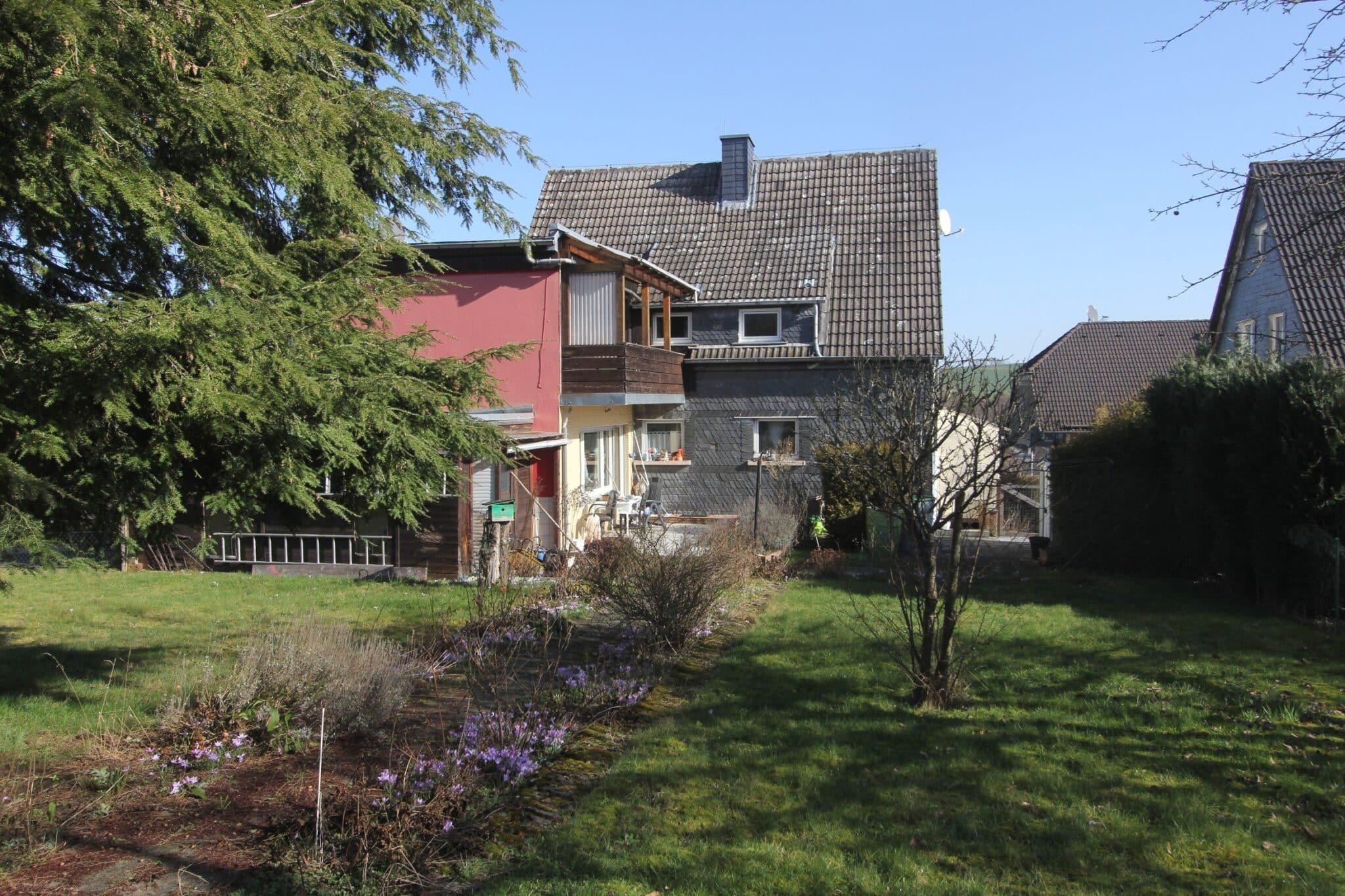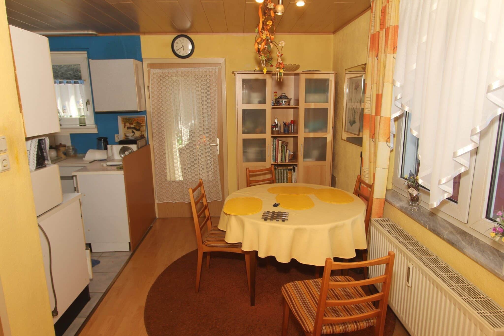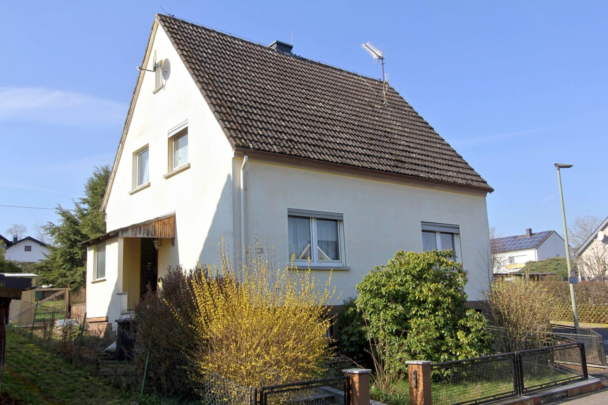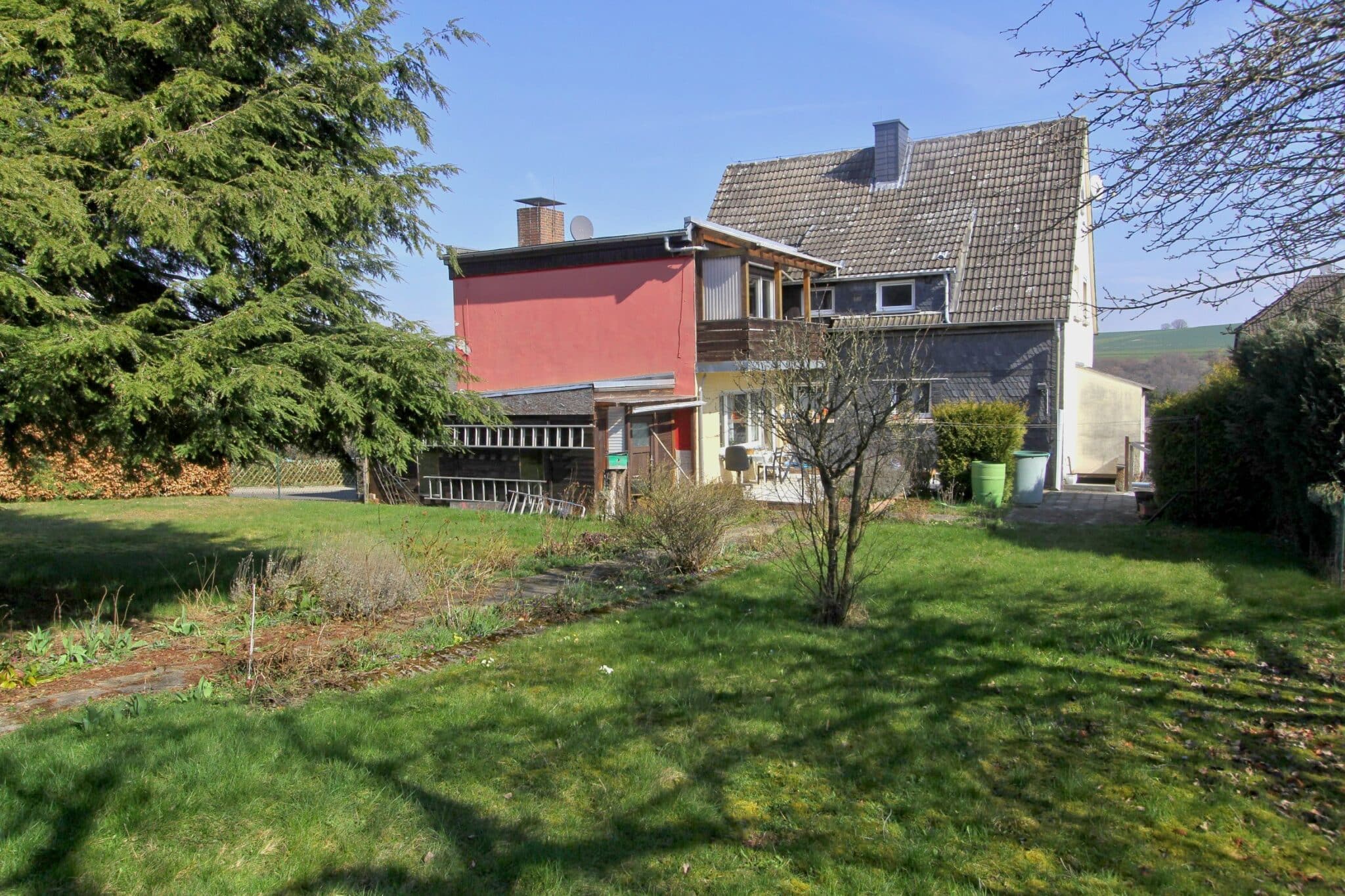 In einer ruhigen Seitenstraße von Rhaunen steht dieses 1960/61 errichtete Haus, das durch einen Anbau 1971–73 auf rund 169 m² Wohnfläche in Erd- und Dachgeschoss erweitert wurde. Im Erd- und Dachgeschoss befinden sich jeweils ein Wohnzimmer (im EG mit Terrassenausgang und im OG mit Balkonzugang), der Küchen-/Essbereich, 2 Schlafzimmer, Bad (Wanne/WC) und Speisekammer/Abstellraum. Die Deckenhöhen betragen 2,33–2,40 m im Erd- und 2,36–2,48 m im Dachgeschoss. Über eine Bodeneinschubtreppe gelangt man zum Dachboden. Das Haus ist vollständig unterkellert und verfügt über eine Garage. An den Wohnhausanbau schließt sich eine Holzgarage an.