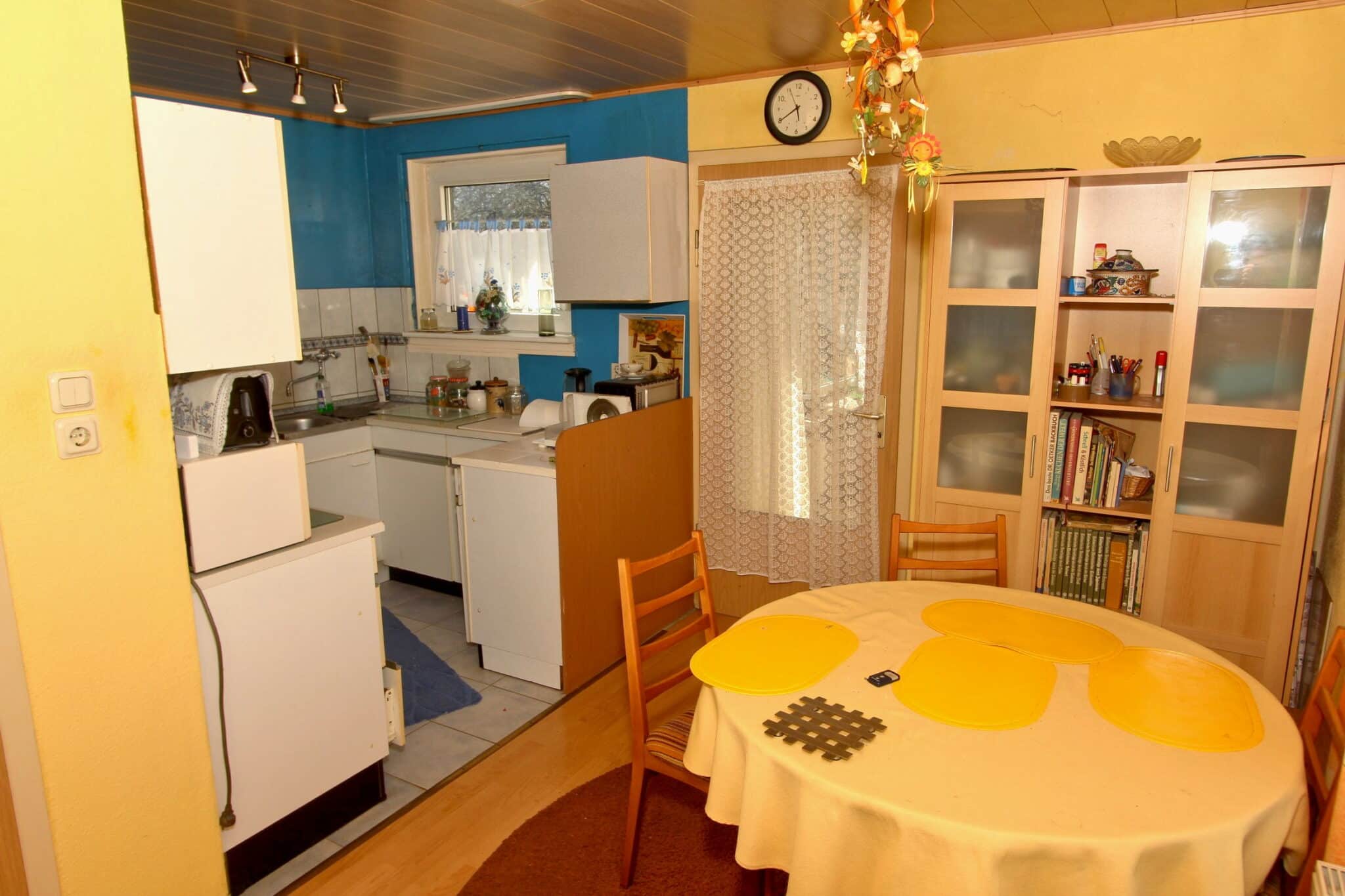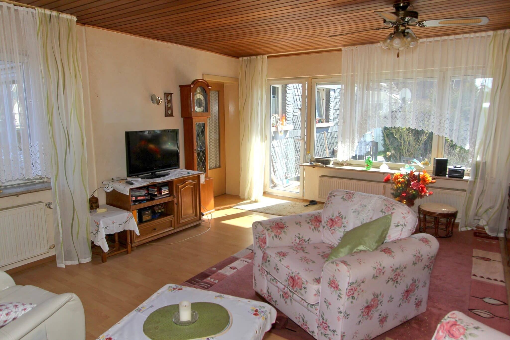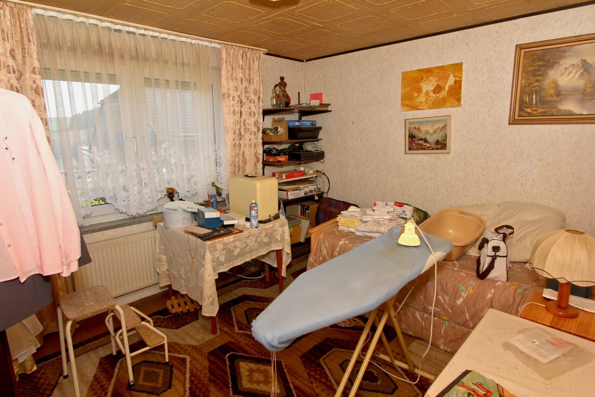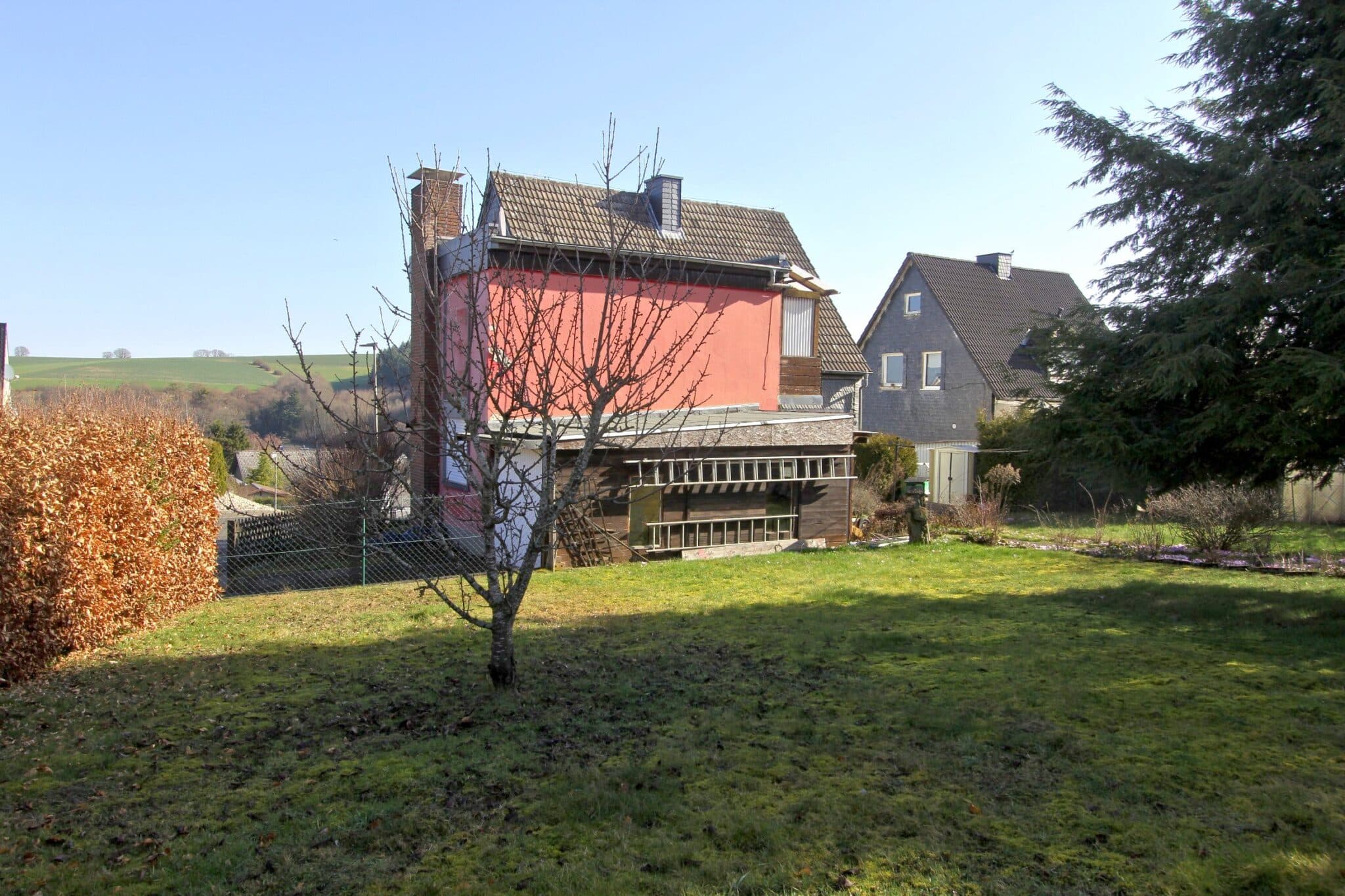 In einer ruhigen Seitenstraße von Rhaunen steht dieses 1960/61 errichtete Haus, das durch einen Anbau 1971–73 auf rund 169 m² Wohnfläche in Erd- und Dachgeschoss erweitert wurde. Im Erd- und Dachgeschoss befinden sich jeweils ein Wohnzimmer (im EG mit Terrassenausgang und im OG mit Balkonzugang), der Küchen-/Essbereich, 2 Schlafzimmer, Bad (Wanne/WC) und Speisekammer/Abstellraum. Die Deckenhöhen betragen 2,33–2,40 m im Erd- und 2,36–2,48 m im Dachgeschoss. Über eine Bodeneinschubtreppe gelangt man zum Dachboden. Das Haus ist vollständig unterkellert und verfügt über eine Garage. An den Wohnhausanbau schließt sich eine Holzgarage an.