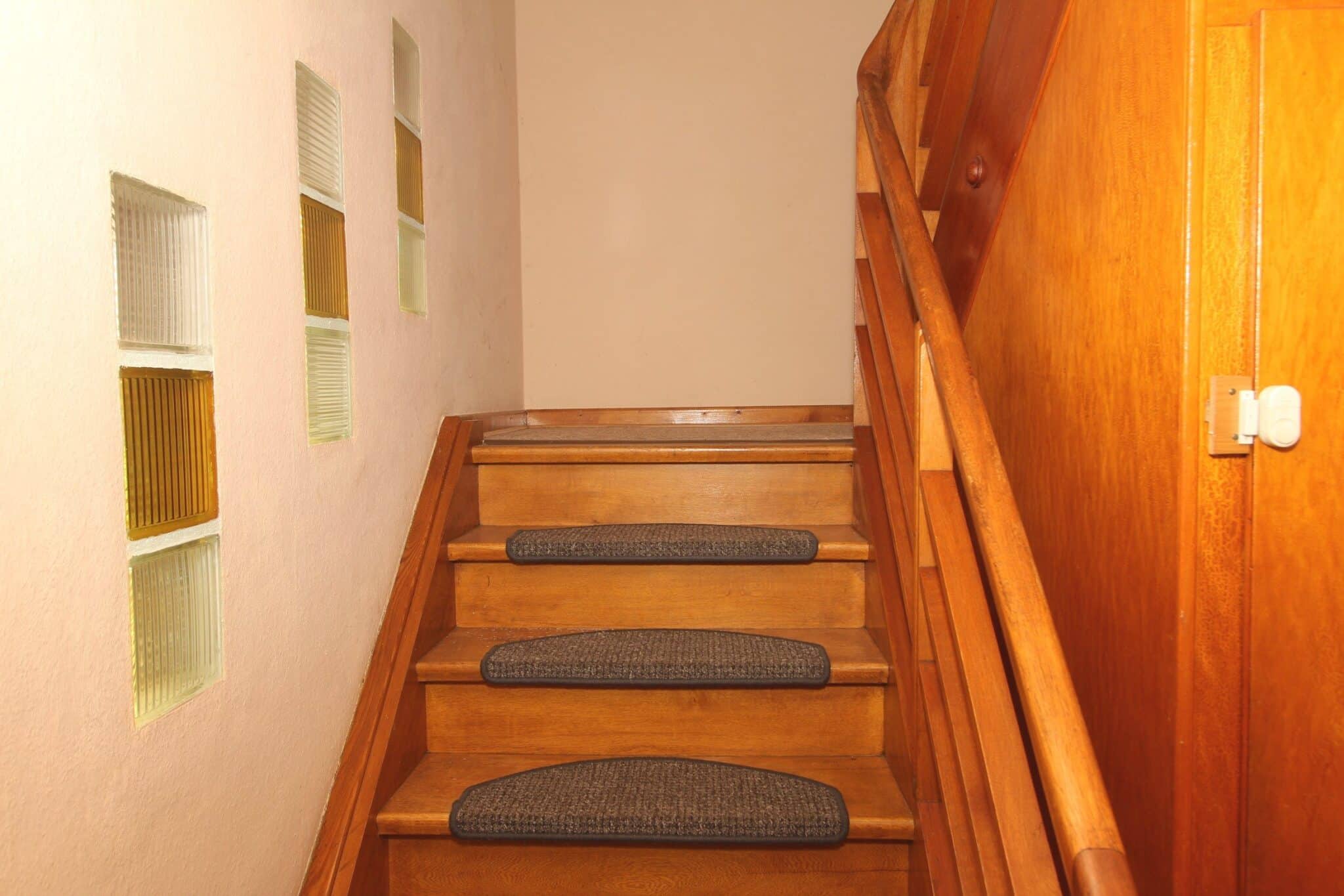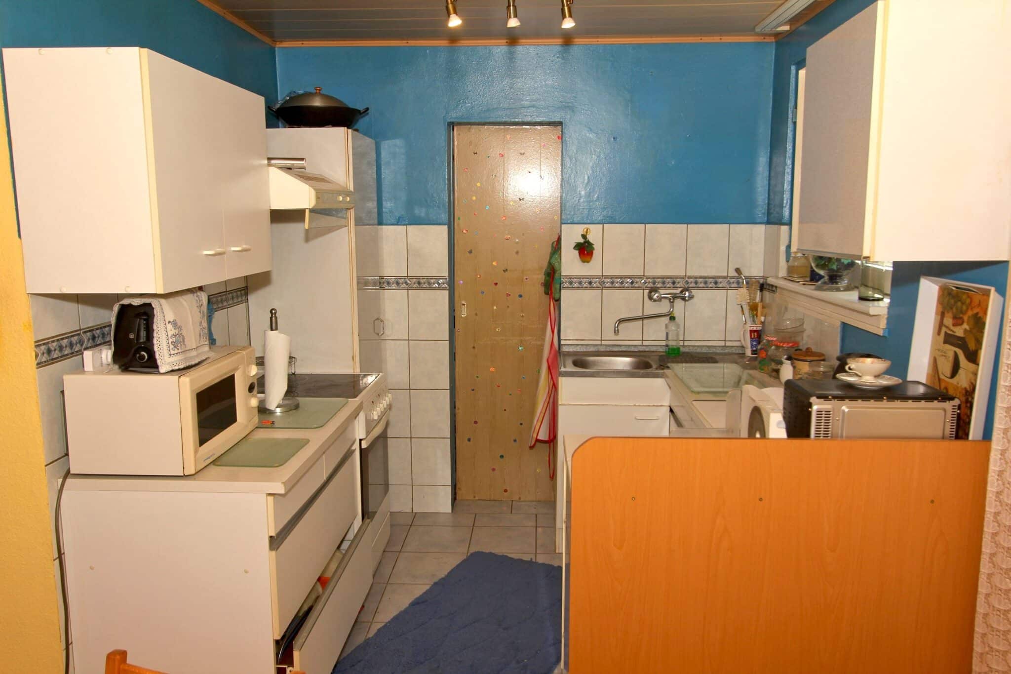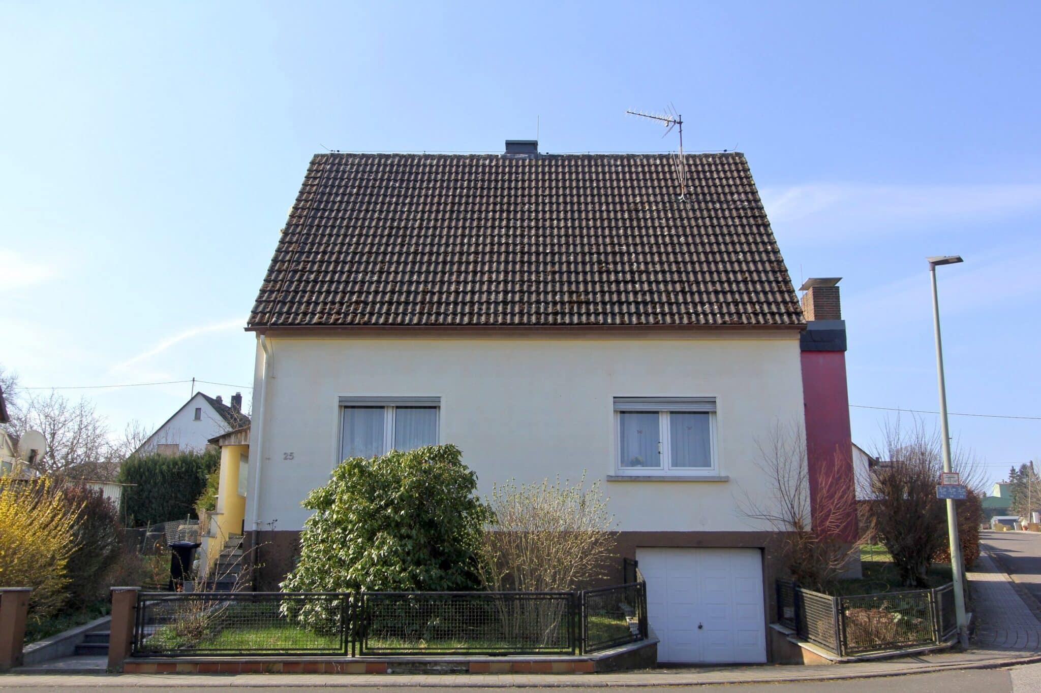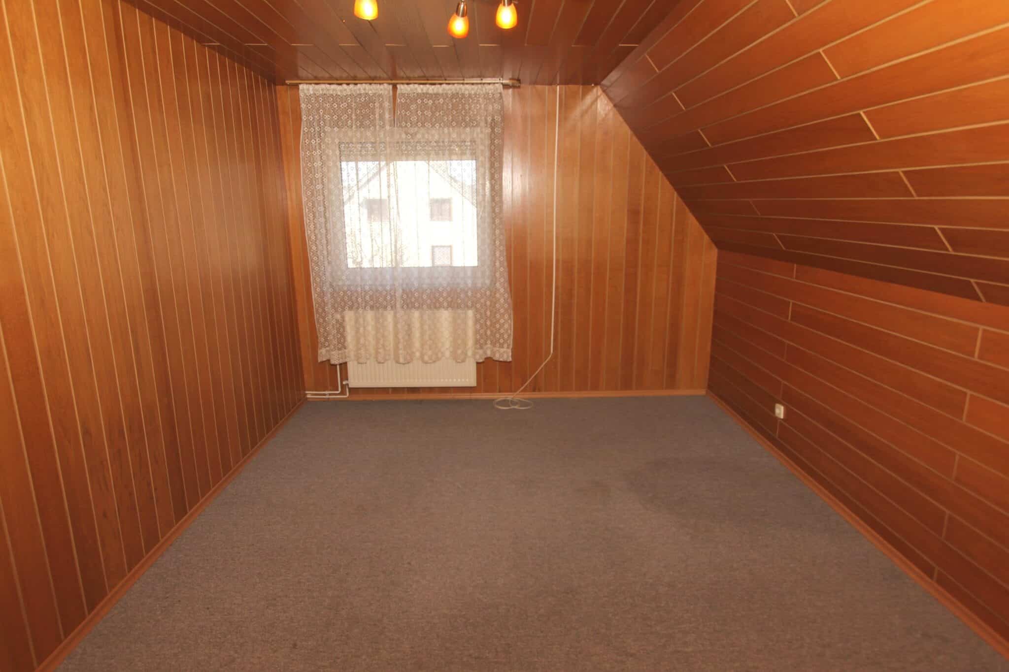 In einer ruhigen Seitenstraße von Rhaunen steht dieses 1960/61 errichtete Haus, das durch einen Anbau 1971–73 auf rund 169 m² Wohnfläche in Erd- und Dachgeschoss erweitert wurde. Im Erd- und Dachgeschoss befinden sich jeweils ein Wohnzimmer (im EG mit Terrassenausgang und im OG mit Balkonzugang), der Küchen-/Essbereich, 2 Schlafzimmer, Bad (Wanne/WC) und Speisekammer/Abstellraum. Die Deckenhöhen betragen 2,33–2,40 m im Erd- und 2,36–2,48 m im Dachgeschoss. Über eine Bodeneinschubtreppe gelangt man zum Dachboden. Das Haus ist vollständig unterkellert und verfügt über eine Garage. An den Wohnhausanbau schließt sich eine Holzgarage an.