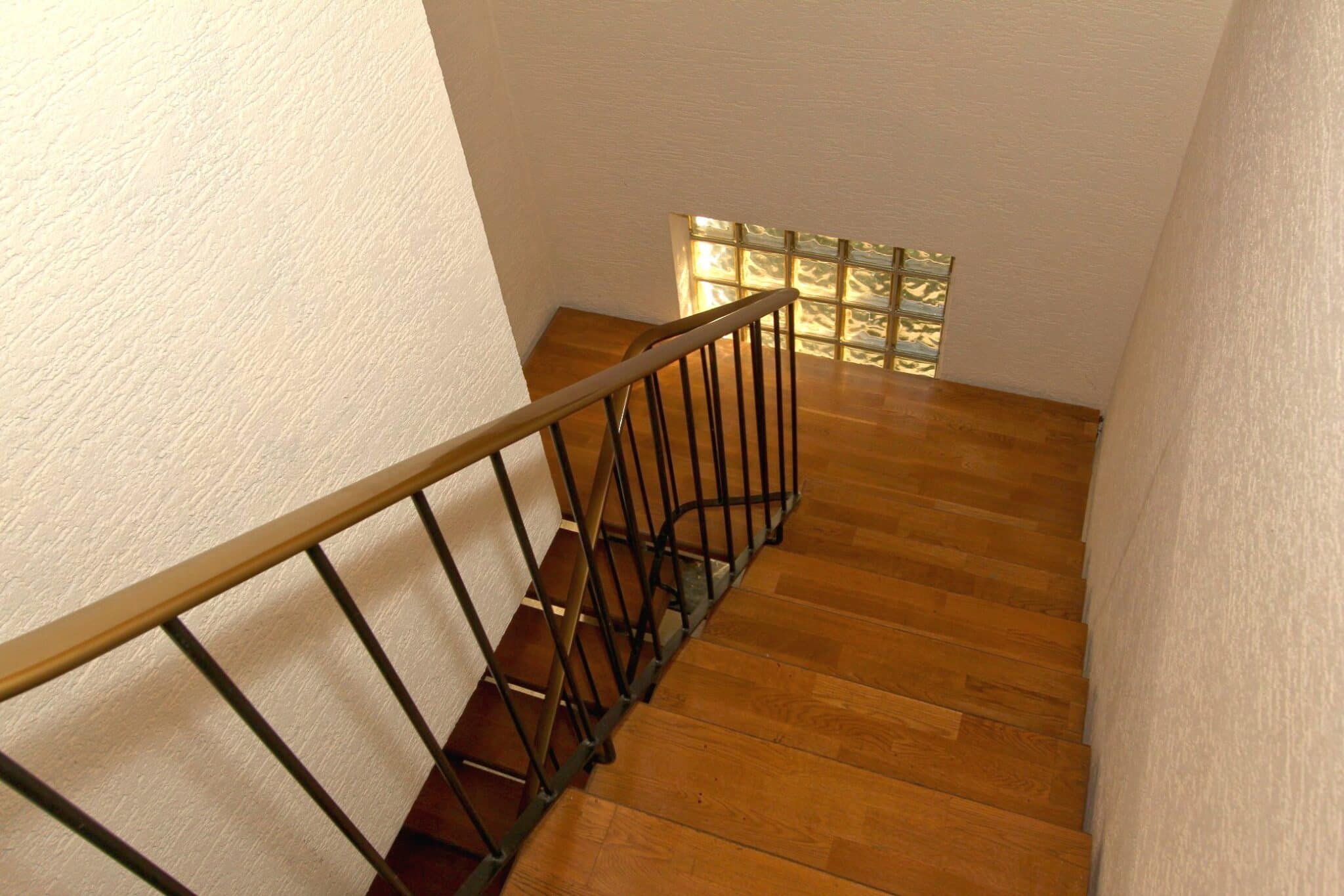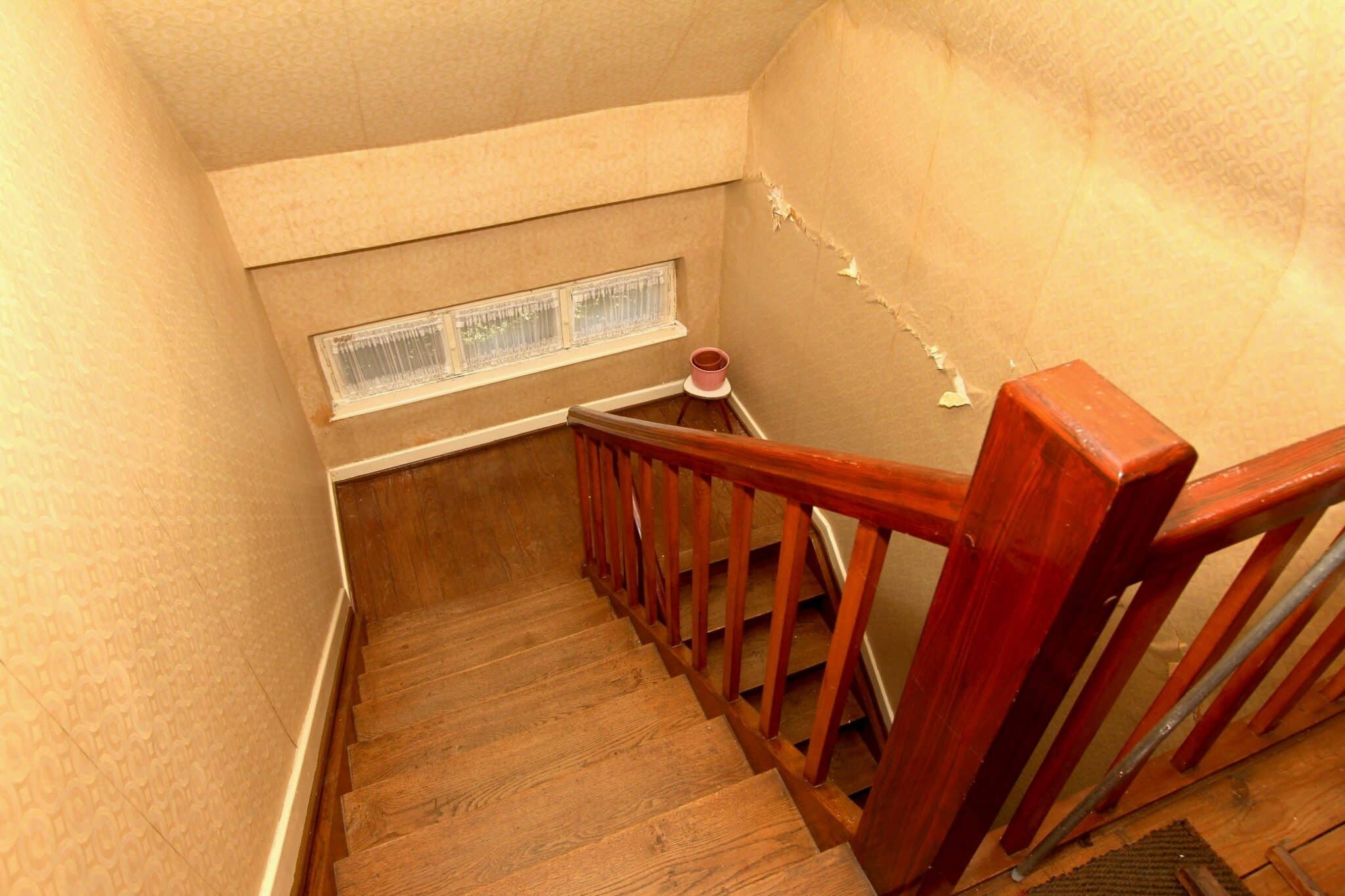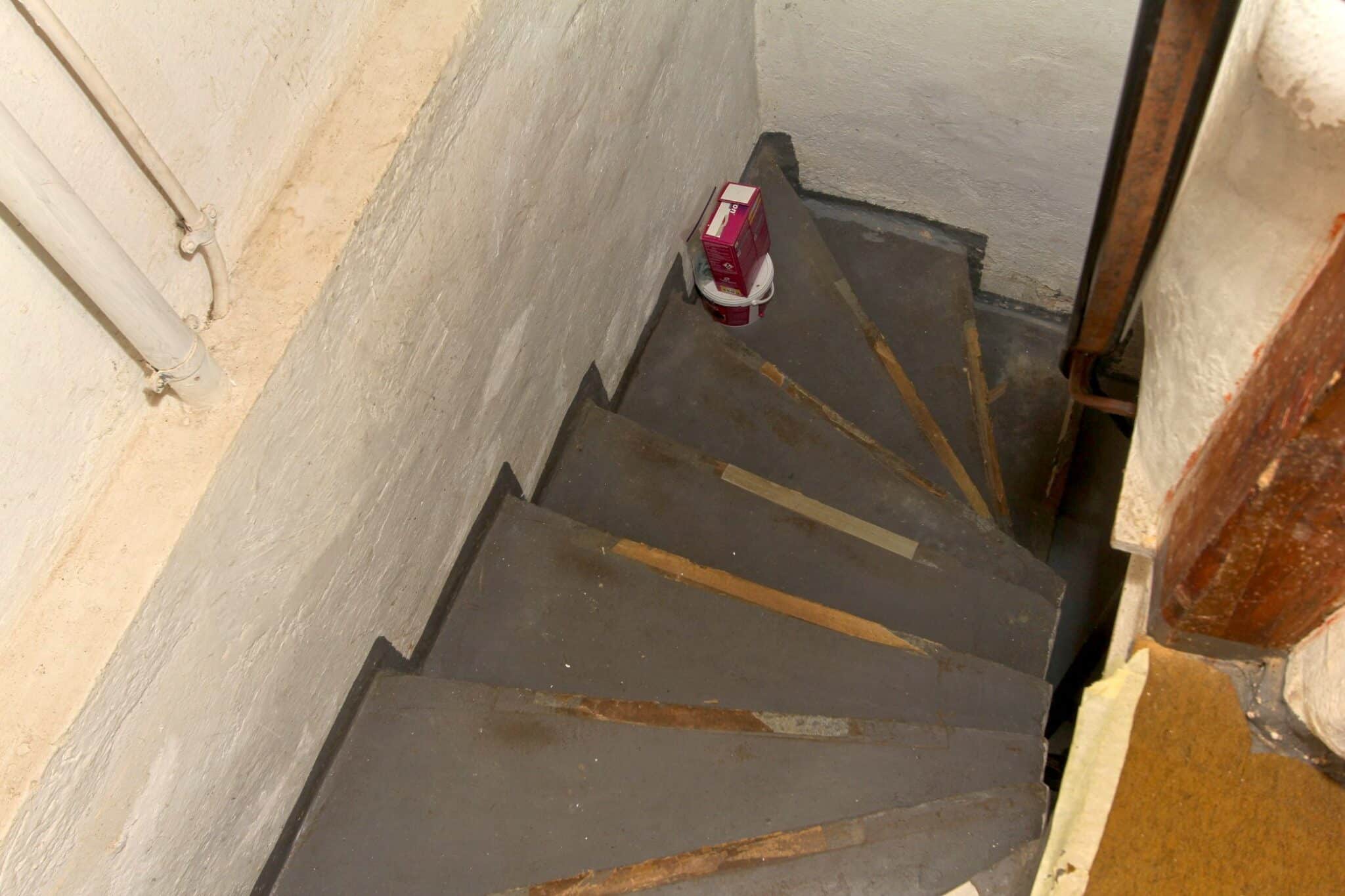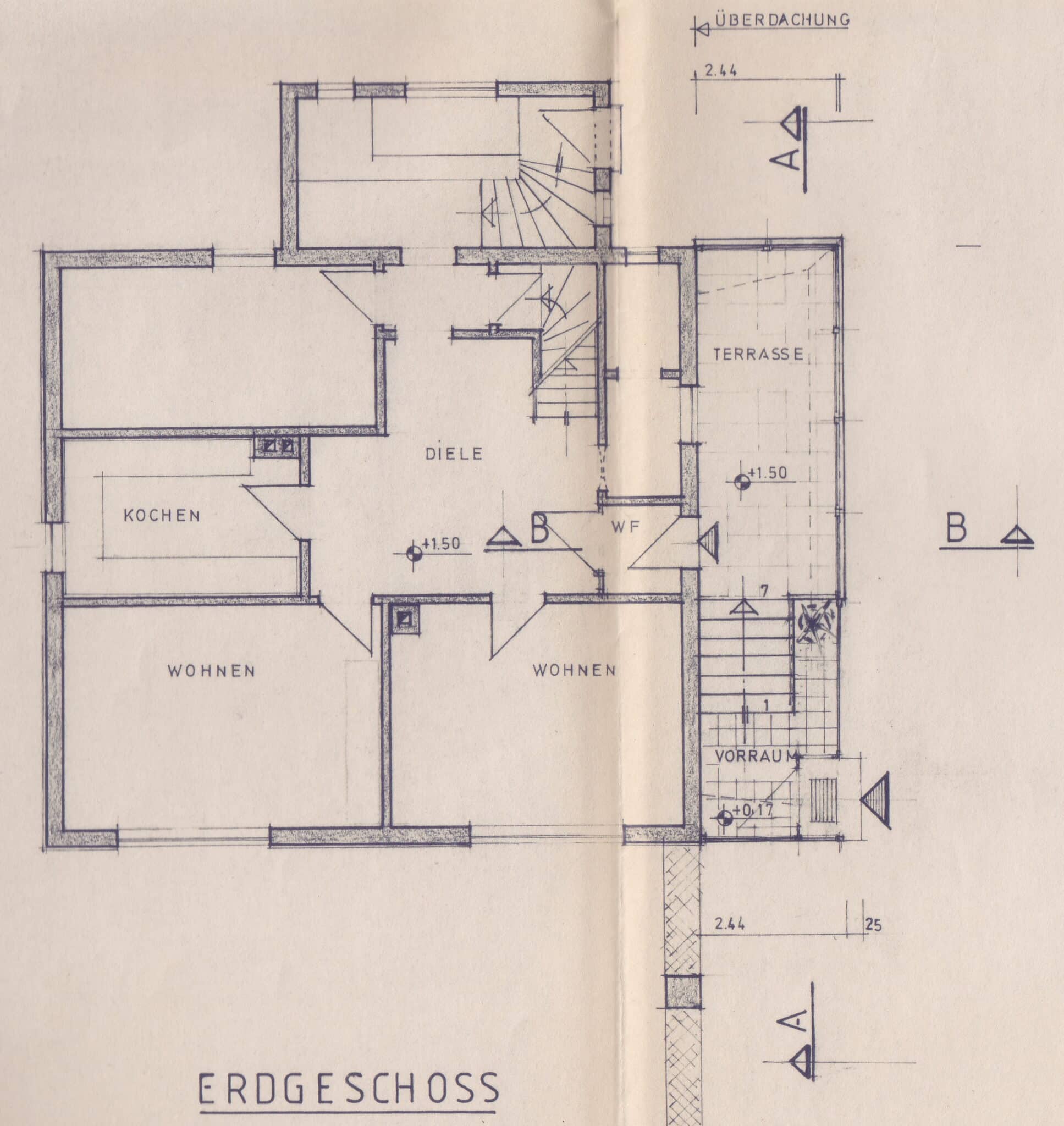 Die Wohnbereiche sind über das vorgelagerte Treppenhaus zu erreichen. Der Dachboden ist über eine Bodeneinschubtreppe im Treppenhaus zu begehen. Das Haus ist voll unterkellert mit dem Heizungs- und Ölraum, einem Lager- und Waschraum für die Dachwohnung und drei großen Lager- bzw. Hobbyräumen. Seitlich an das Haus angebaut ist ein Lagerraum für Gartengeräte, Fahrräder o. ä. Durch diesen gelangt man auch durch den Keller mittels Treppe auf das rückwärtige Grundstück.