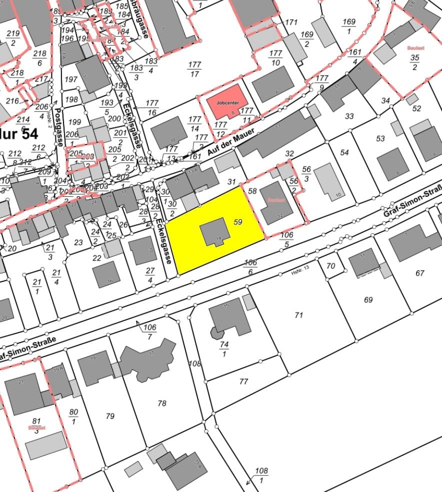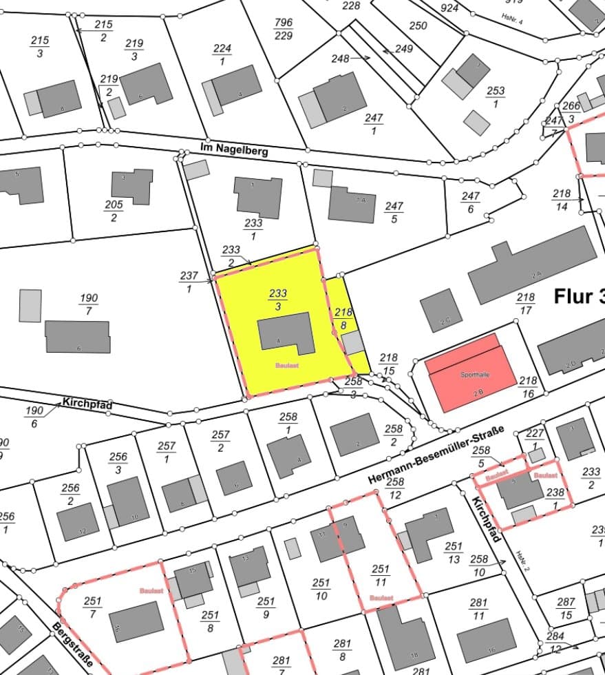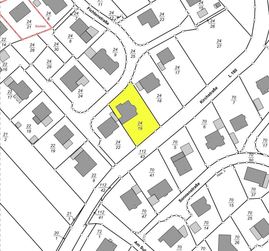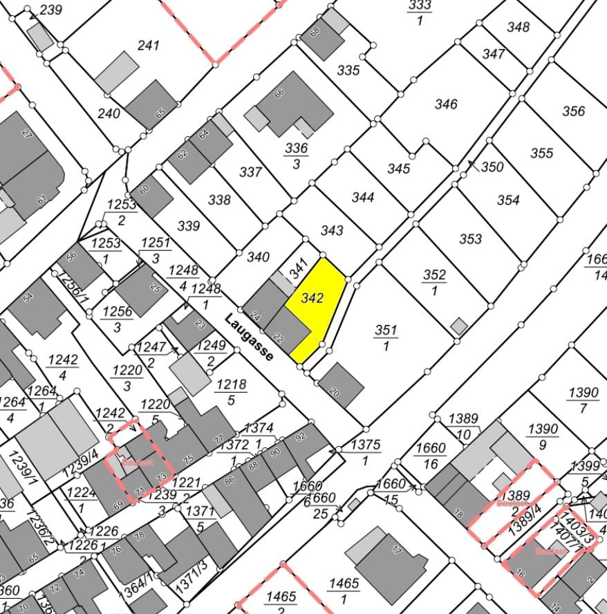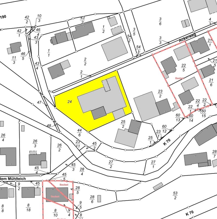 Das aus zwei Parzellen bestehende Grundstück hat eine Gesamtgröße von ca. 807 m². Den genauen Grundstücksverlauf entnehmend Sie bitte der farblichen Markierung im Lageplan.