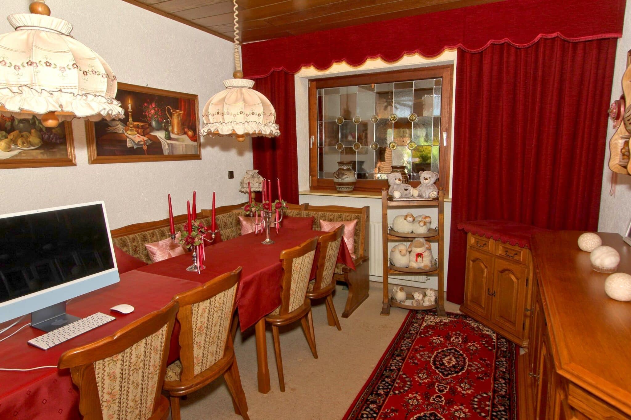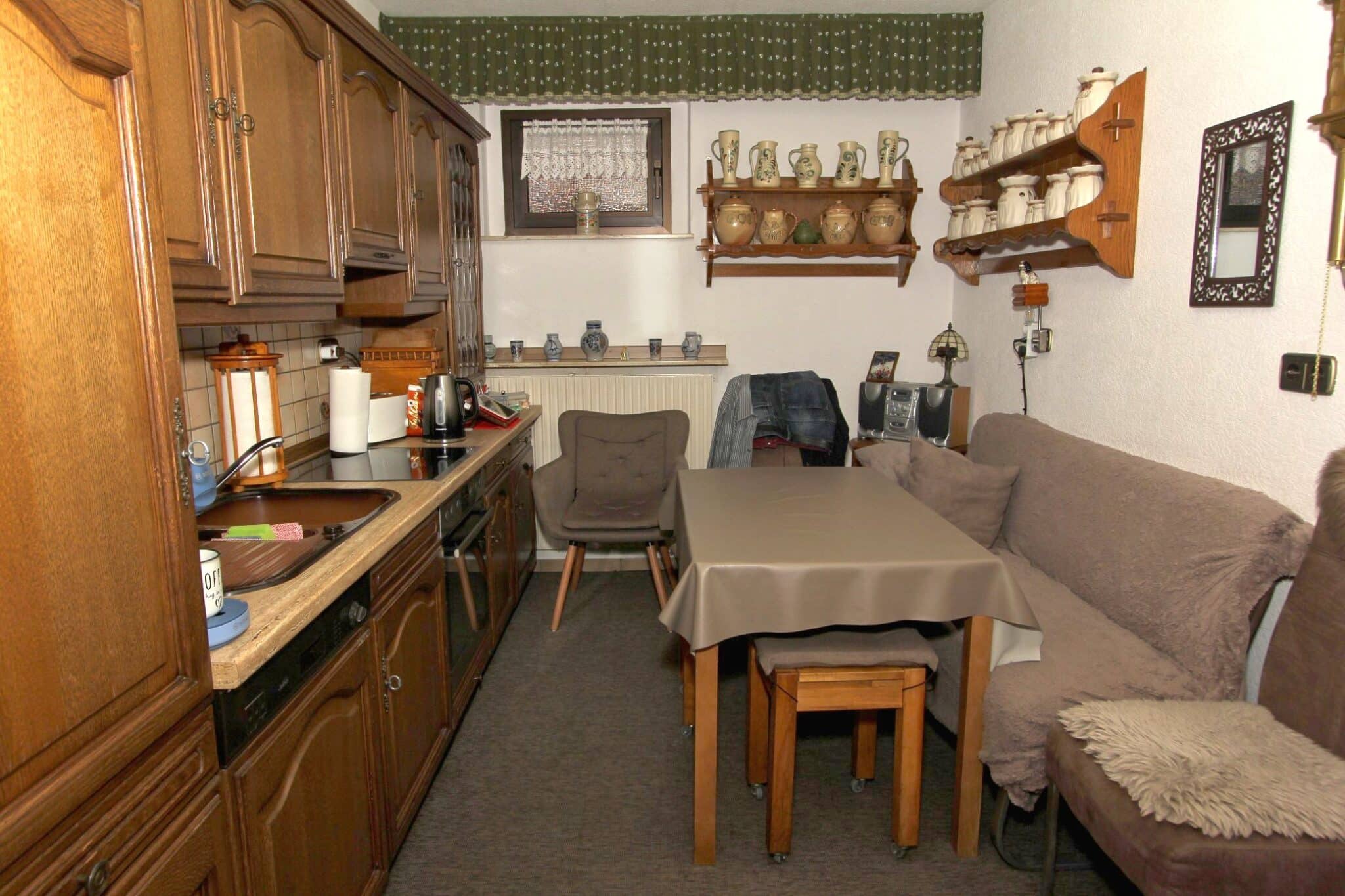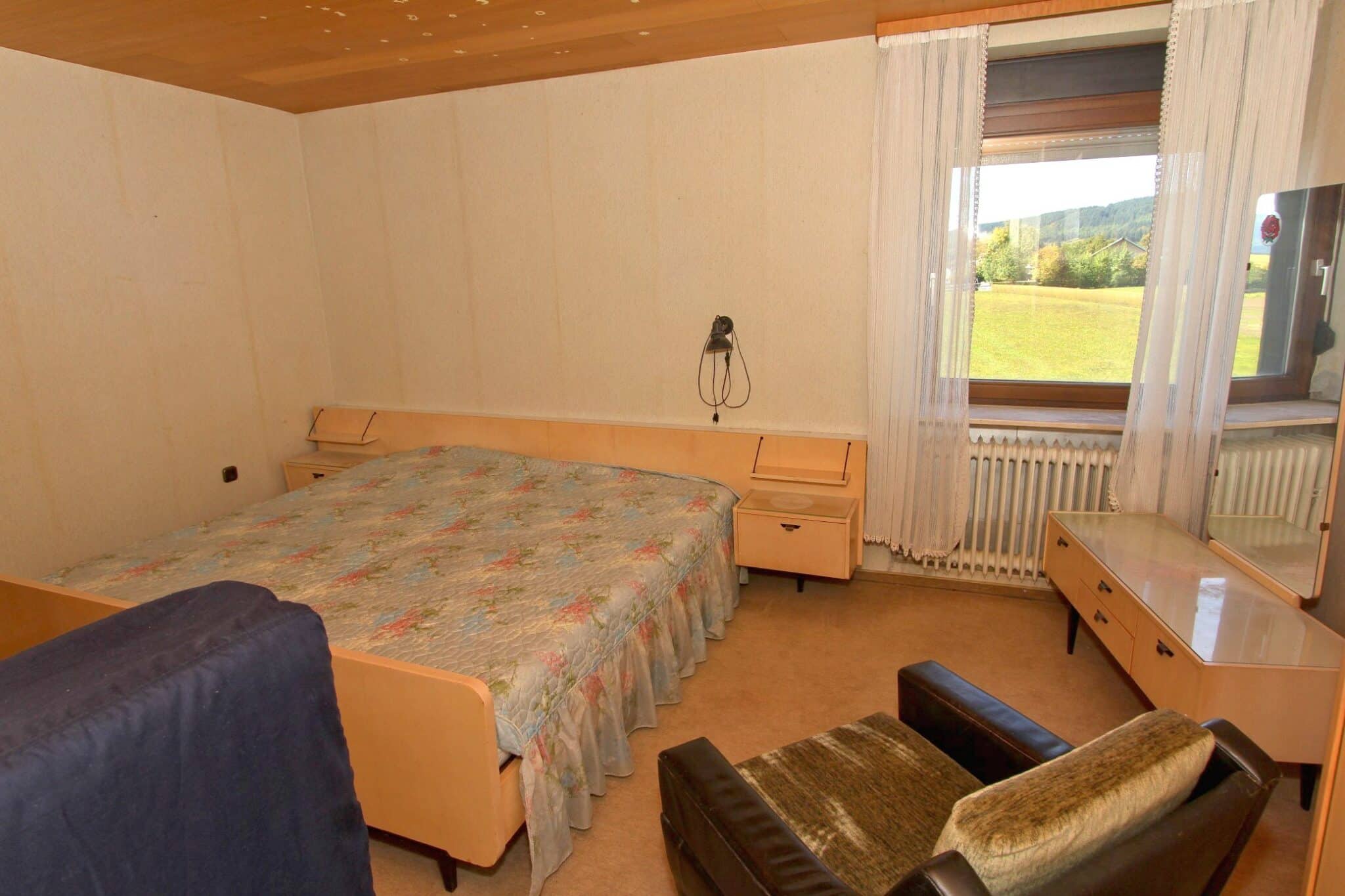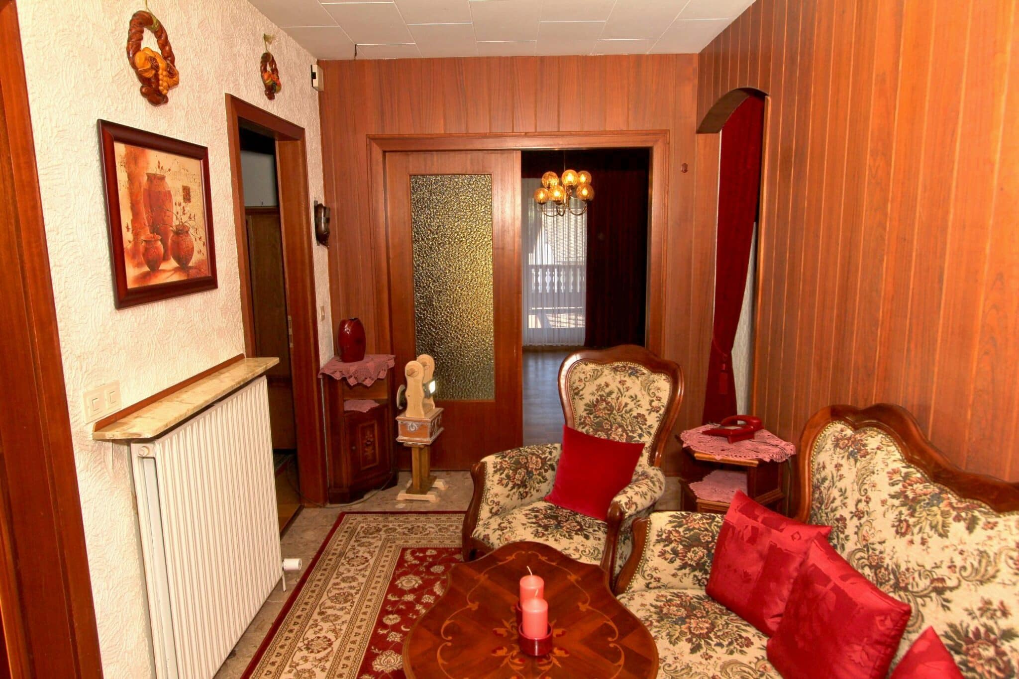 In absolut ruhiger Ortslage wurde im Jahre 1972 das zu verkaufende Wohnhaus in einer Seitenstraße mit erhabener Aussicht erbaut. Das Kellergeschoss ist gemauert und das Erdgeschoss in hochwertiger Fertigbauweise (Fa. Nordhaus) ausgeführt. Die Außenwände des Erdgeschosses sind isoliert. Es verfügt über eine Wohnfläche von ca. 223 m², die sich auf zwei abgeschlossene Wohnungen in Erd- und Kellergeschoss verteilt. Im Erdgeschoss befinden sich der dominierende Wohn-/Essbereich mit Zugang zum geräumigen Balkon, 3 Schlafzimmer, Küche, Bad und WC und im Keller Wohnzimmer, Küche, 2 Schlafzimmer und Bad.