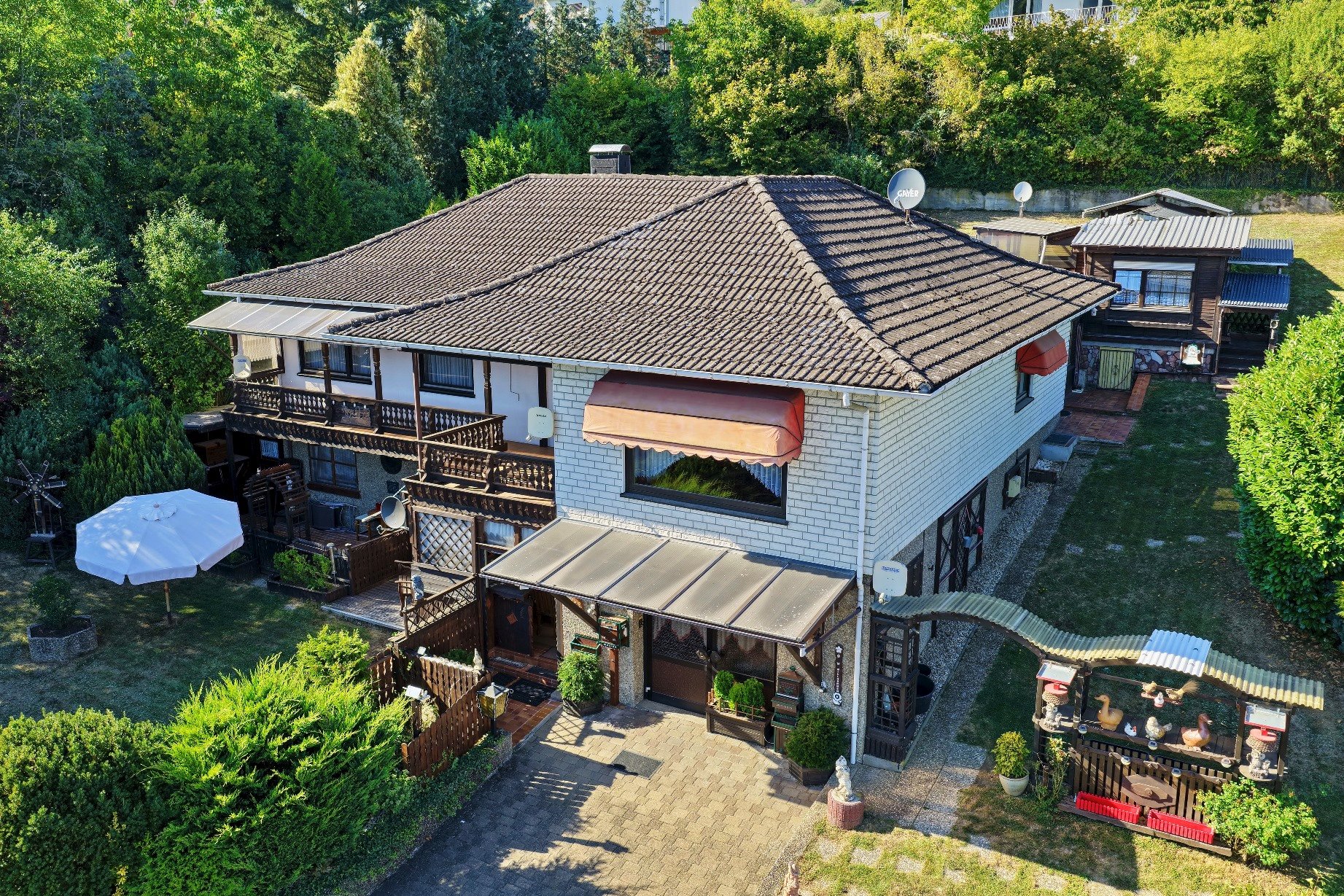 Ein gepflegter und liebevoll gestalteter Garten lädt ein zum Durchatmen, Ankommen und Genießen. Ob entspannter Start in den Tag mit Kaffee auf der Terrasse oder dem Balkon, gesellige Abende unter freiem Himmel – dieser Außenbereich ist mehr als nur Grünfläche. Er ist Ihr privates Paradies. Die Nebengebäude (Gartenhaus, Sommerküche etc.) bieten zusätzlichen Freizeitwert als heimeliger Rückzugsort oder für ein gemütliches Miteinander. Hier verbinden sich Natur, Ruhe und Lebensqualität mit funktionalem Raumangebot. Kurz gesagt: ein Ort, an dem man nicht nur wohnt – sondern lebt. Entdecken Sie das gute Gefühl von Freiheit, Entspannung und Möglichkeiten – direkt vor der eigenen Tür.