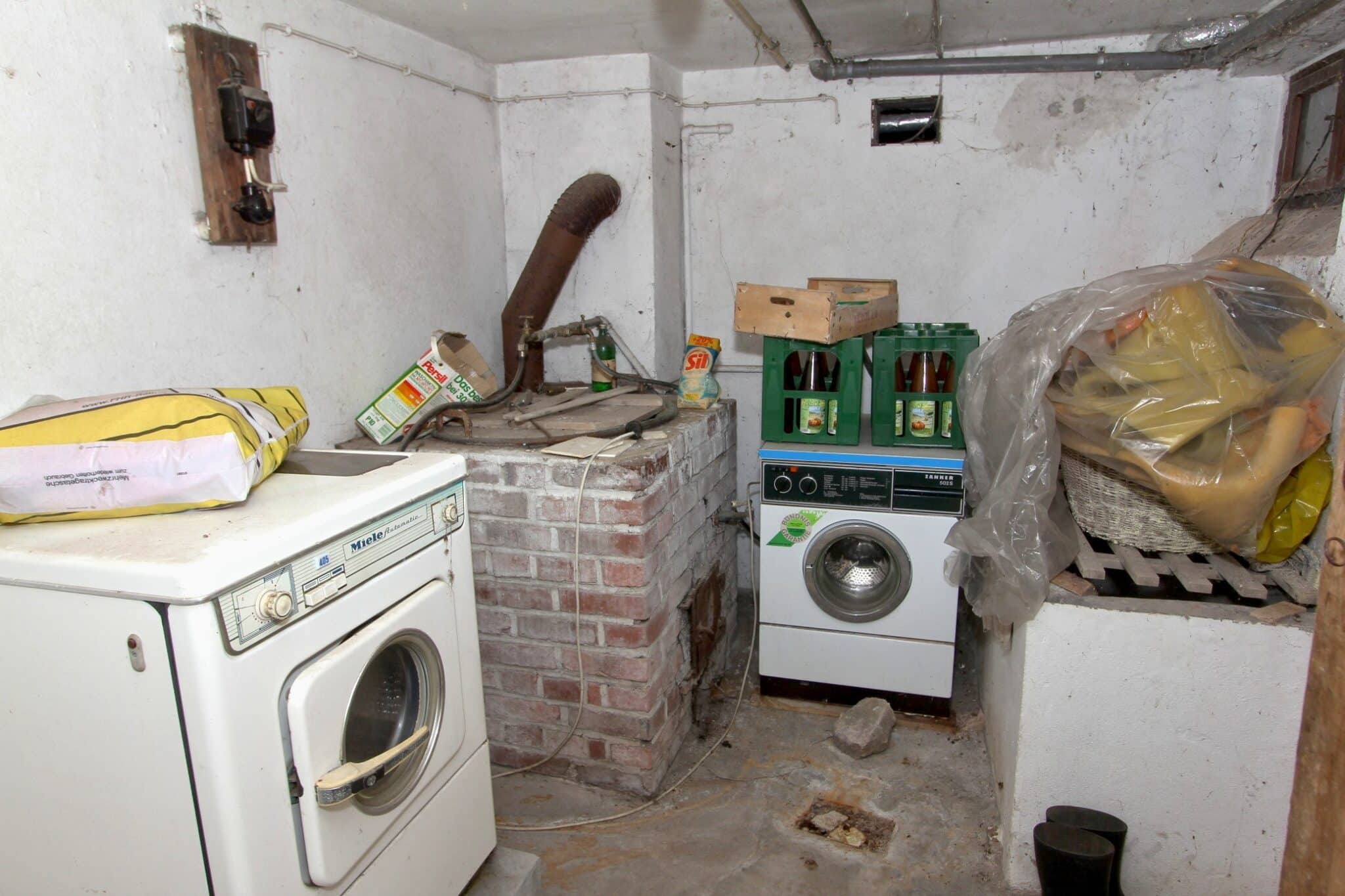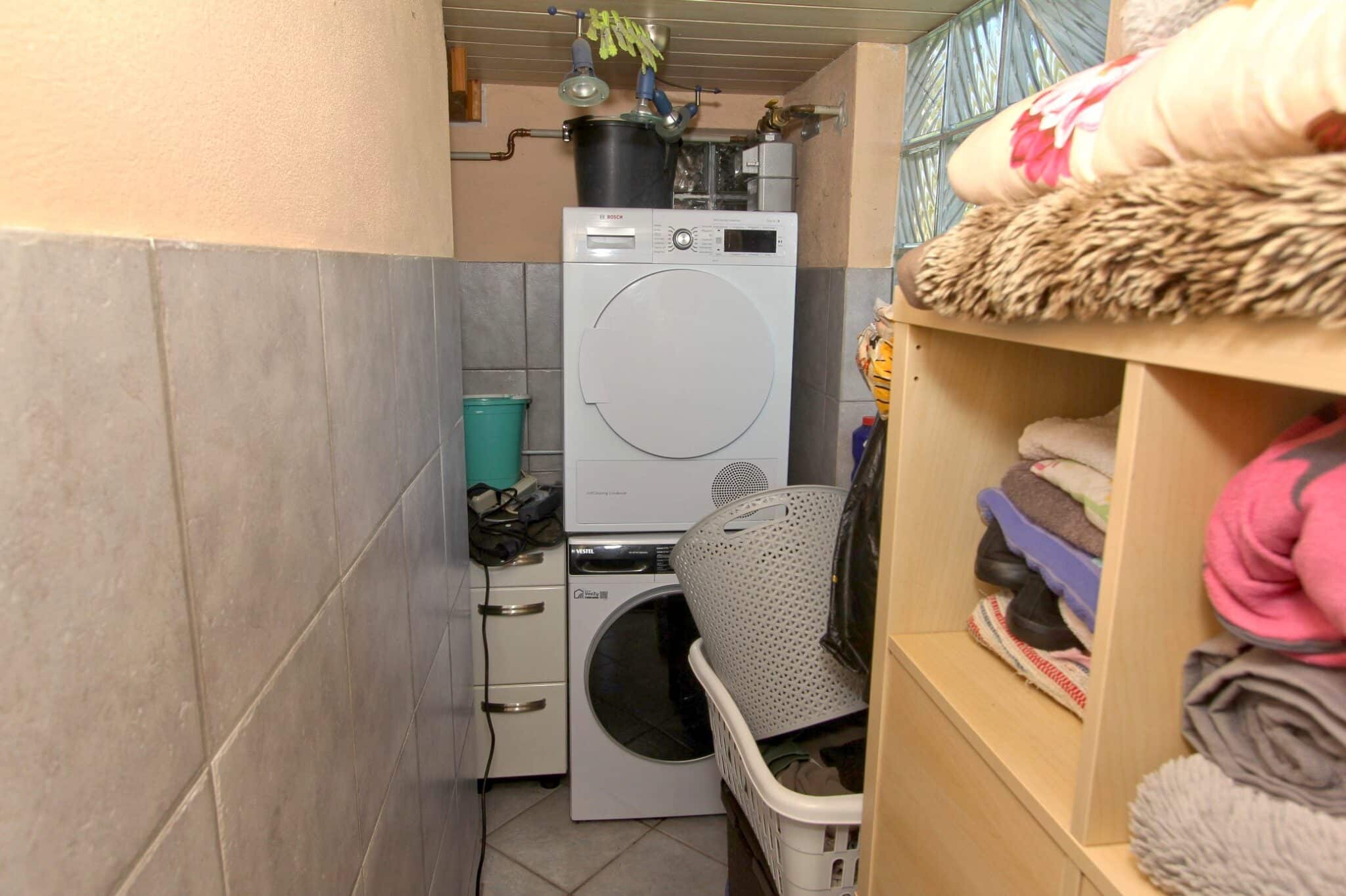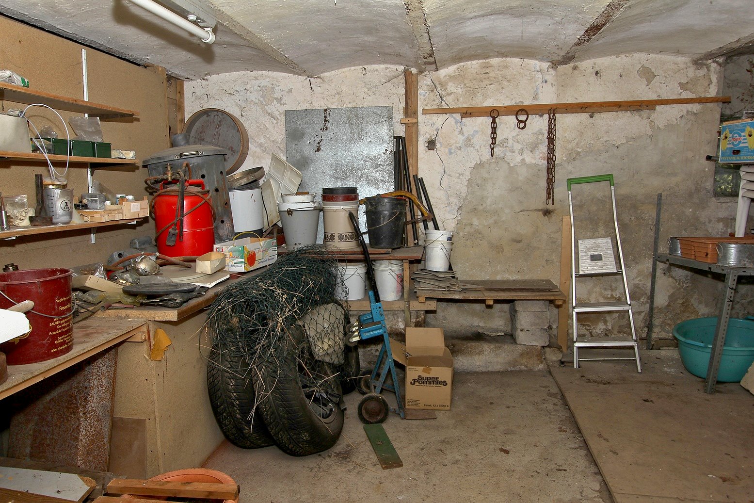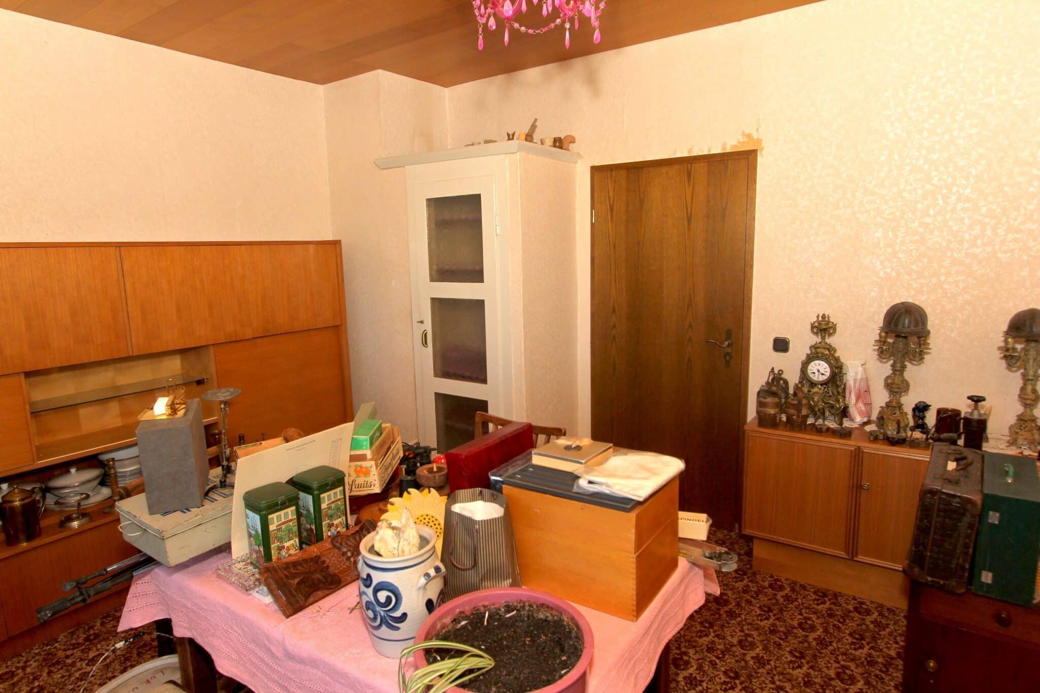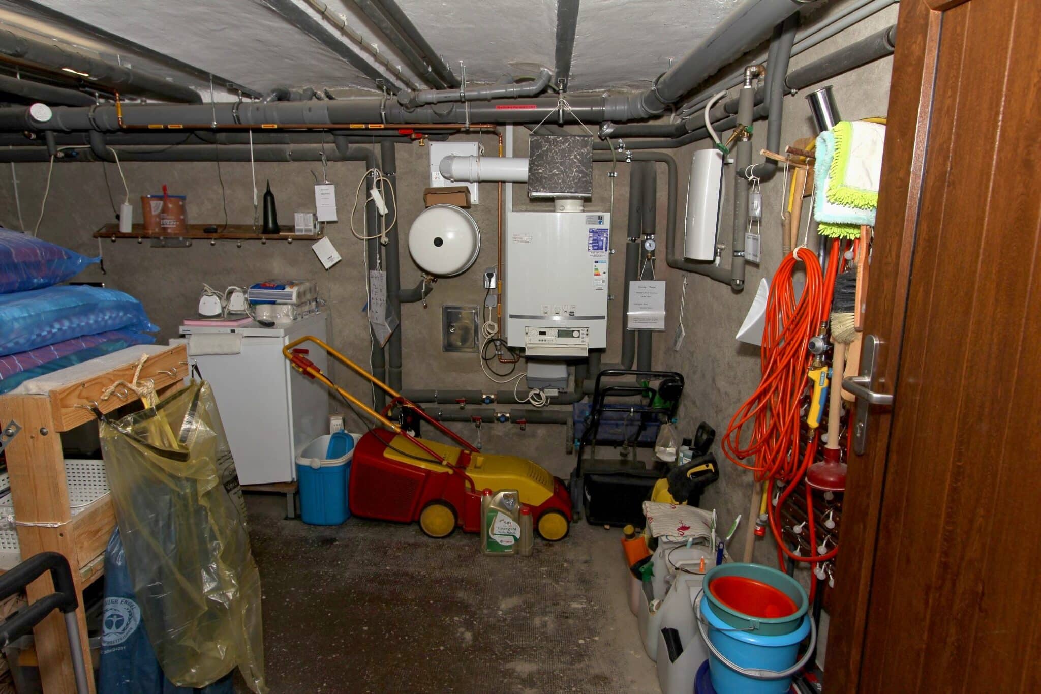 Die Werkstatt ist durch einen separaten Eingang von außen zu betreten, ebenso der Heizungs- und Waschraum. Von der Werkstatt führt eine Bodeneinschubtreppe zum Dachboden, der für Lagerzwecke verwendet werden kann. Das Haus ist teilunterkellert.