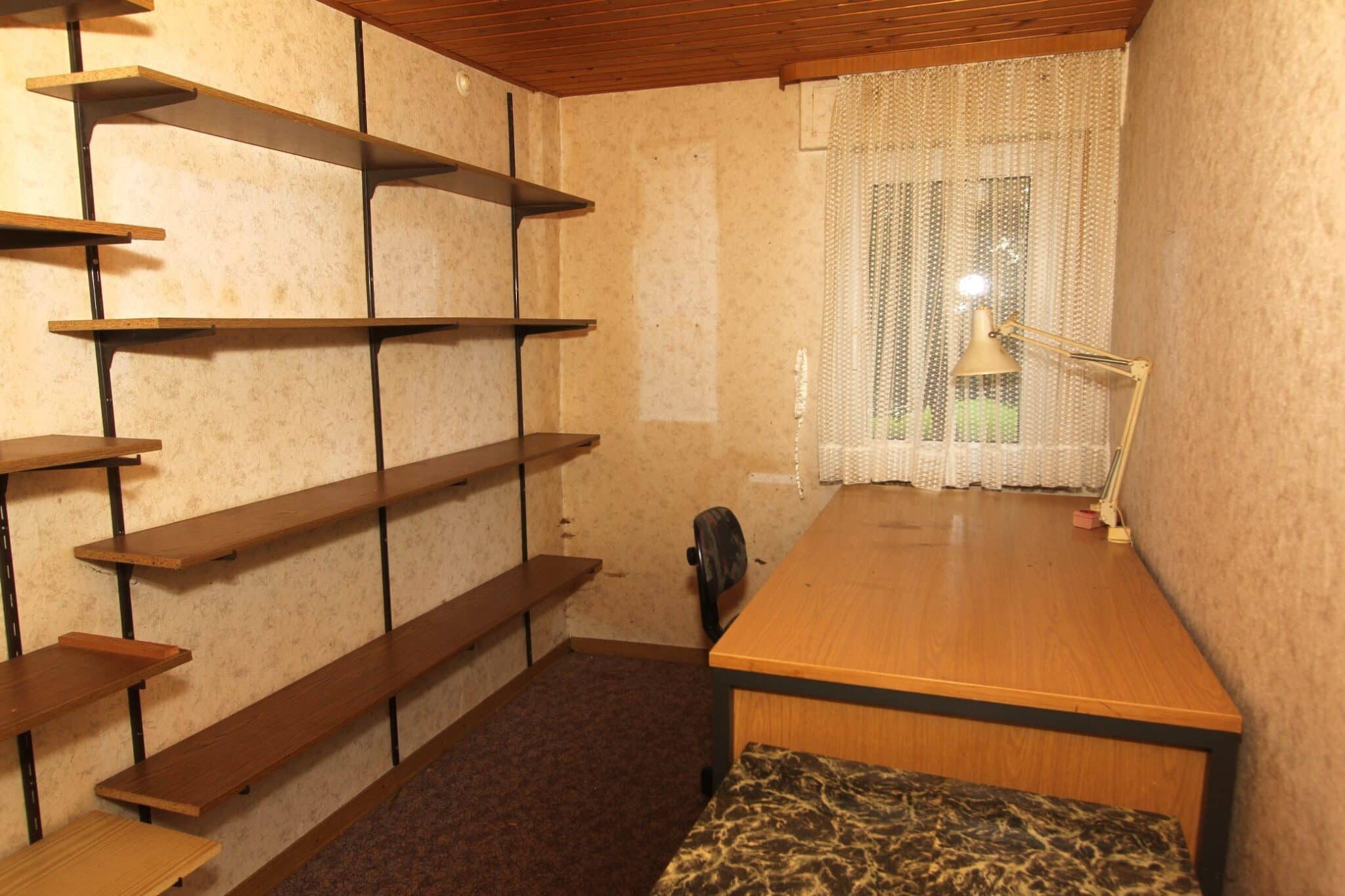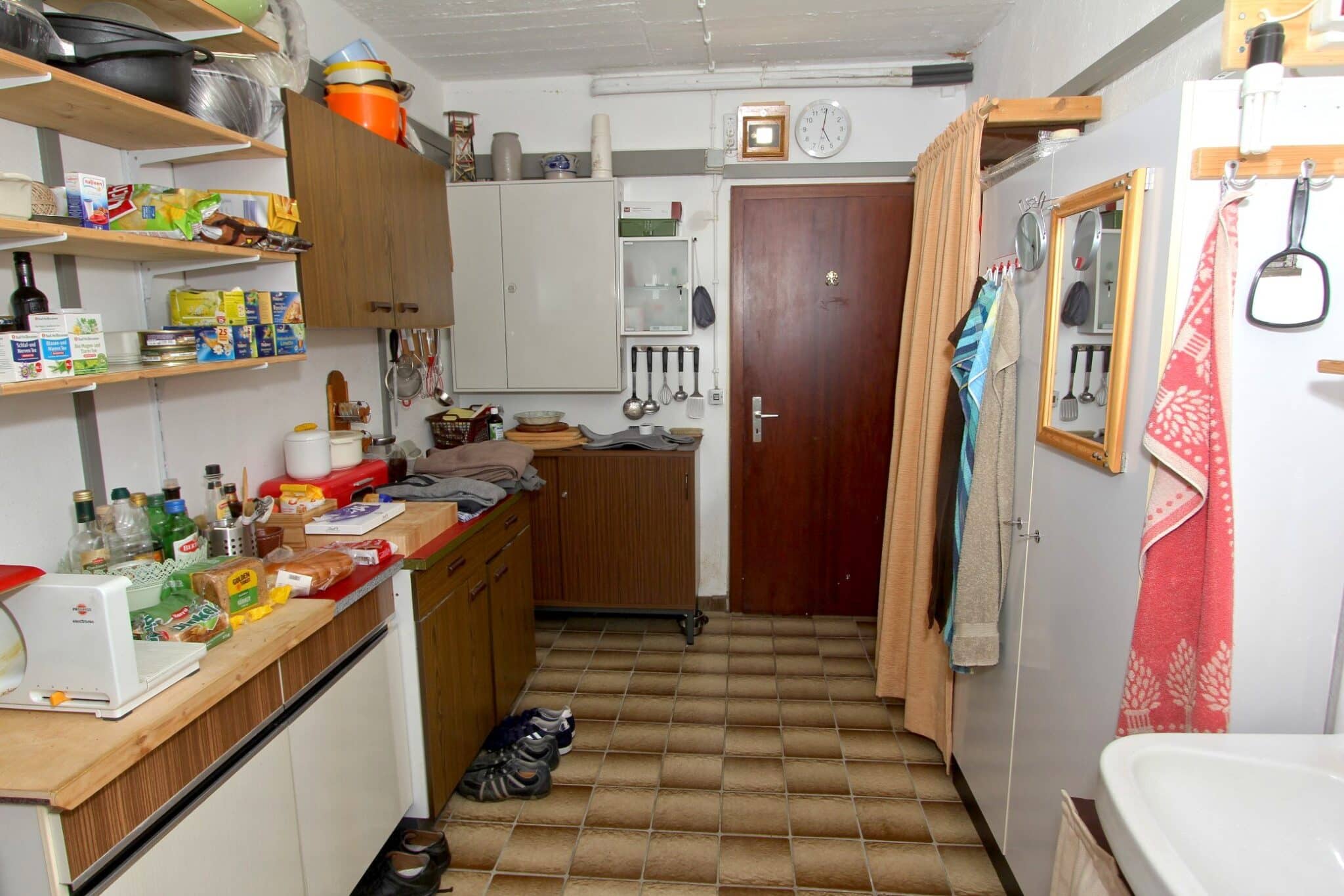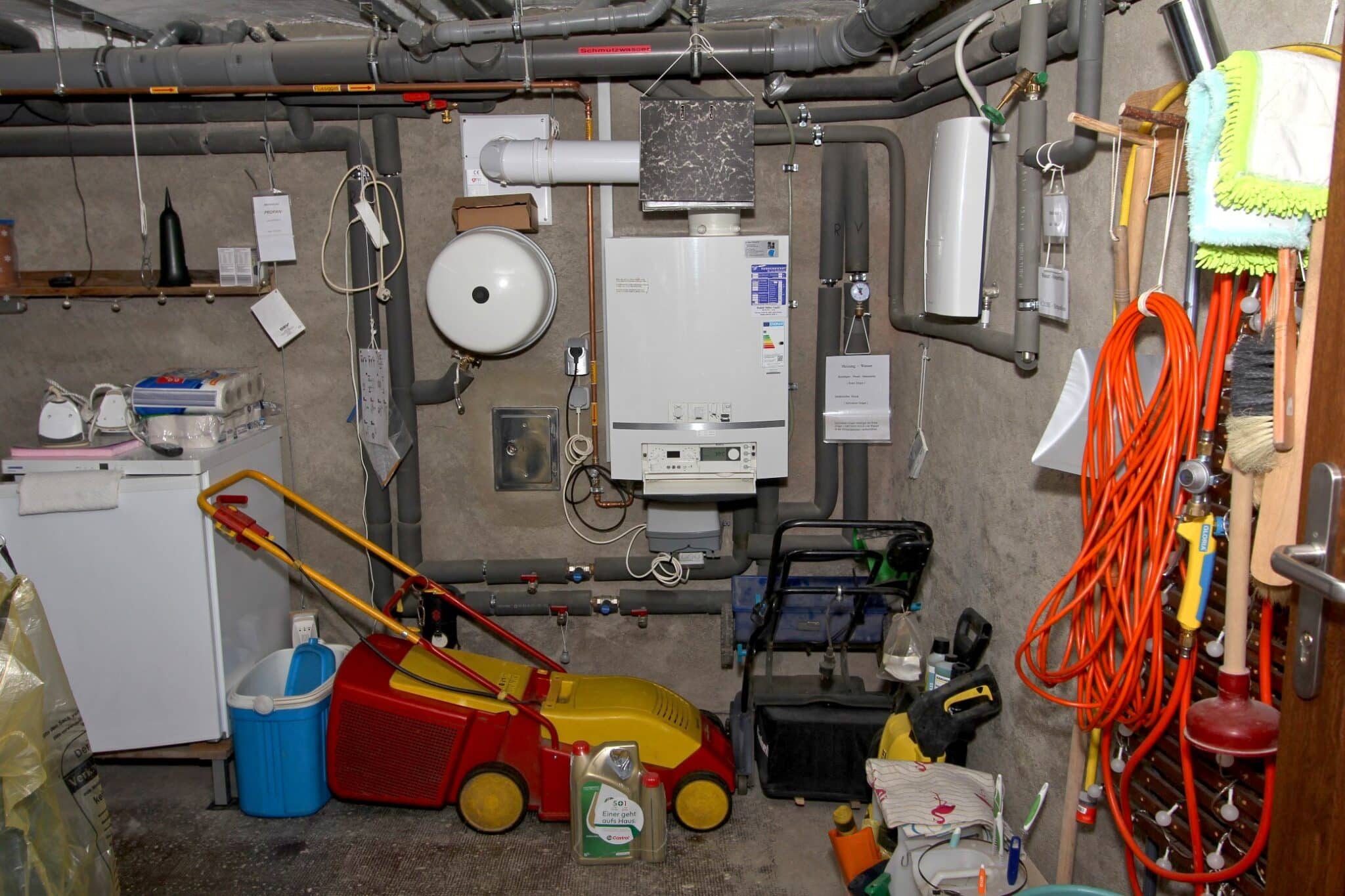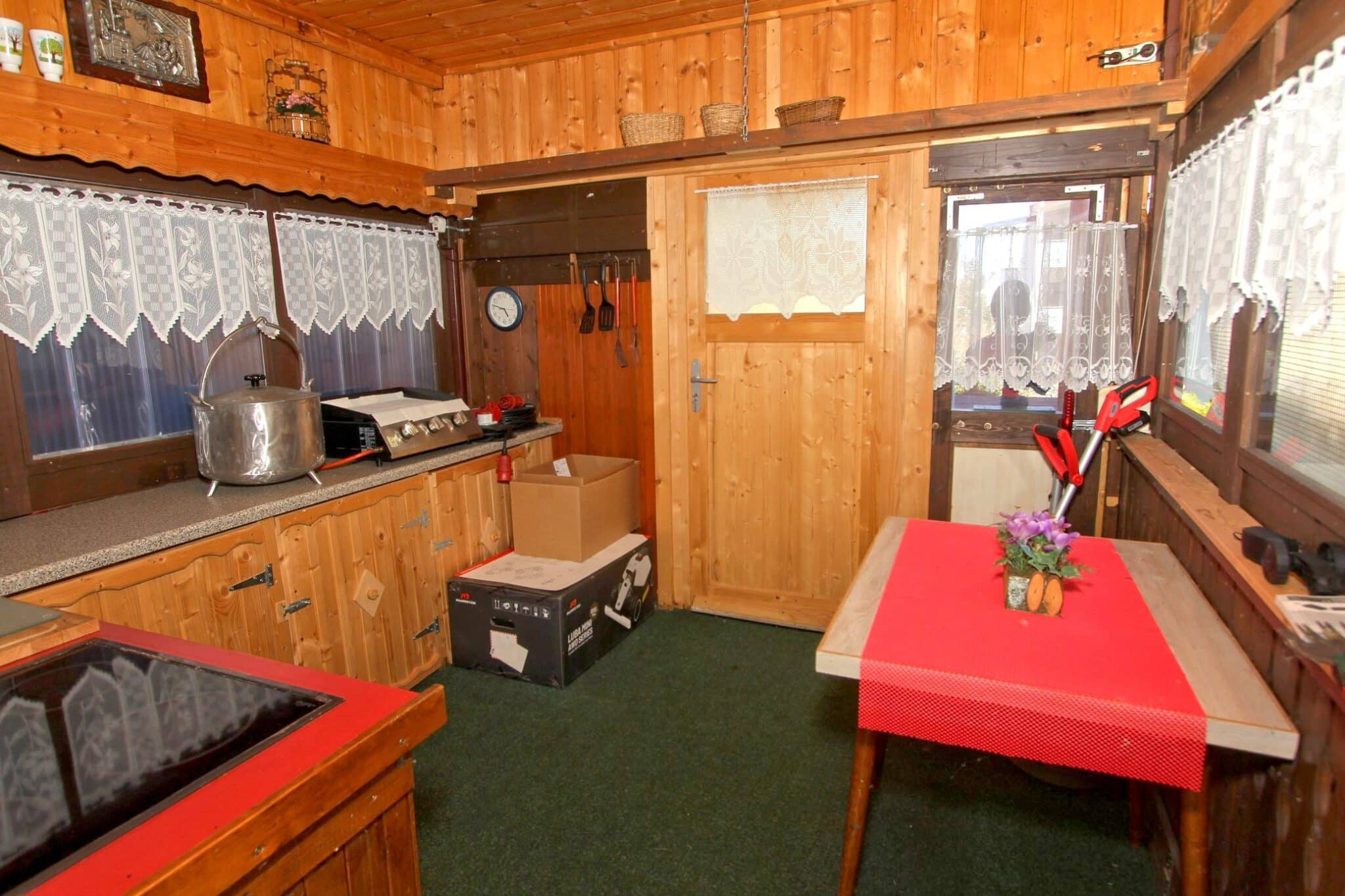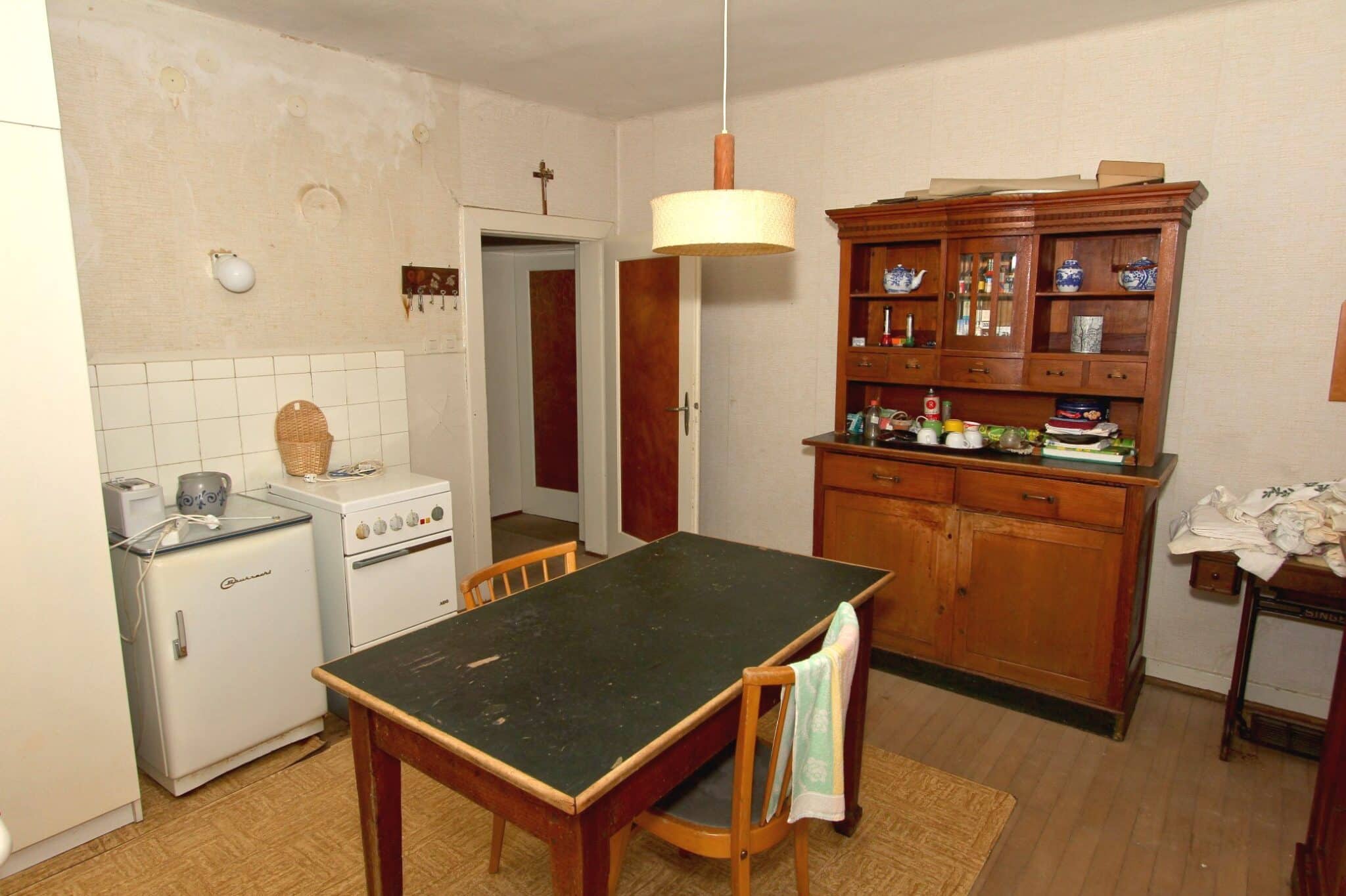 Die Werkstatt ist durch einen separaten Eingang von außen zu betreten, ebenso der Heizungs- und Waschraum. Von der Werkstatt führt eine Bodeneinschubtreppe zum Dachboden, der für Lagerzwecke verwendet werden kann. Das Haus ist teilunterkellert.