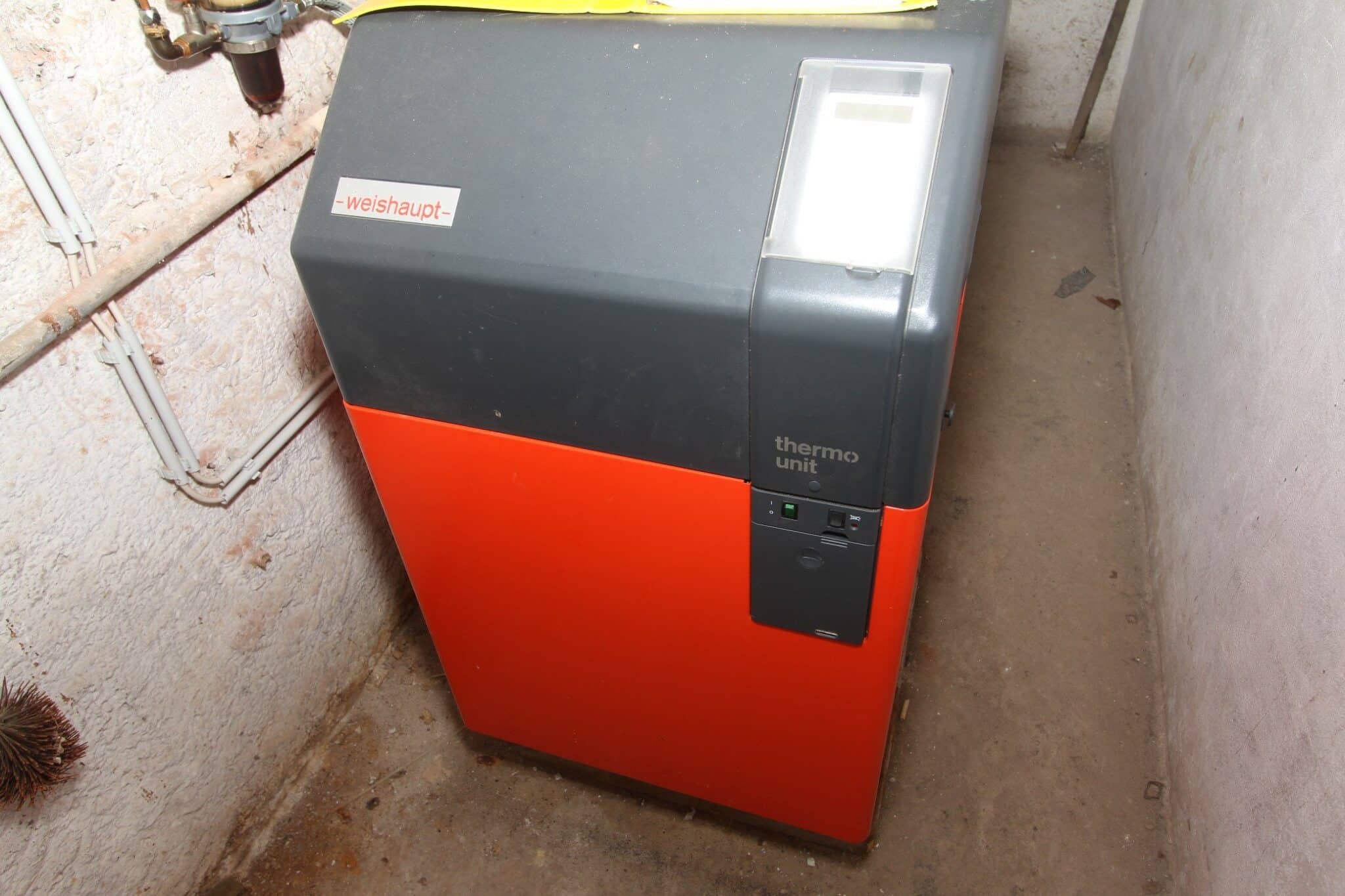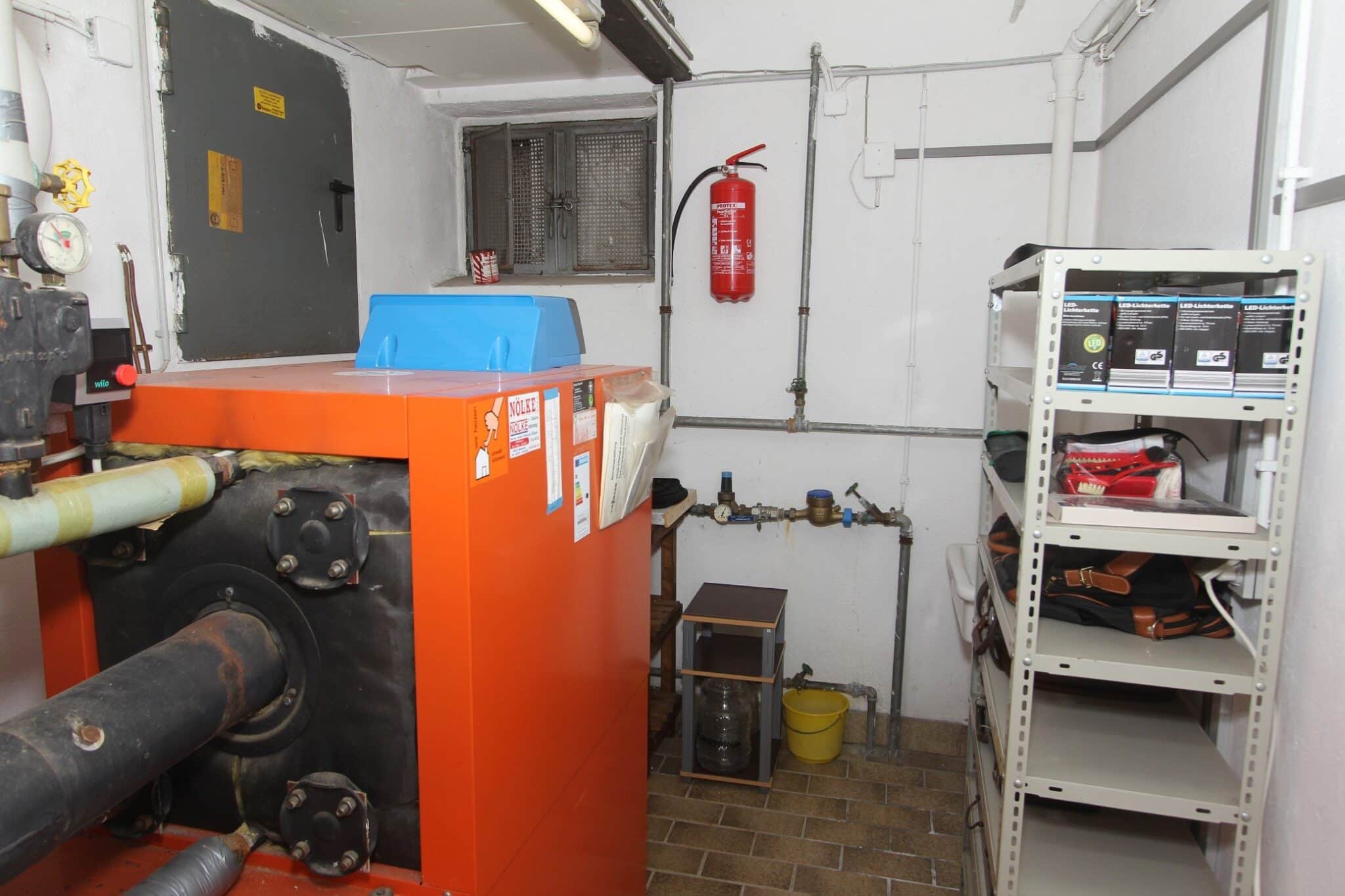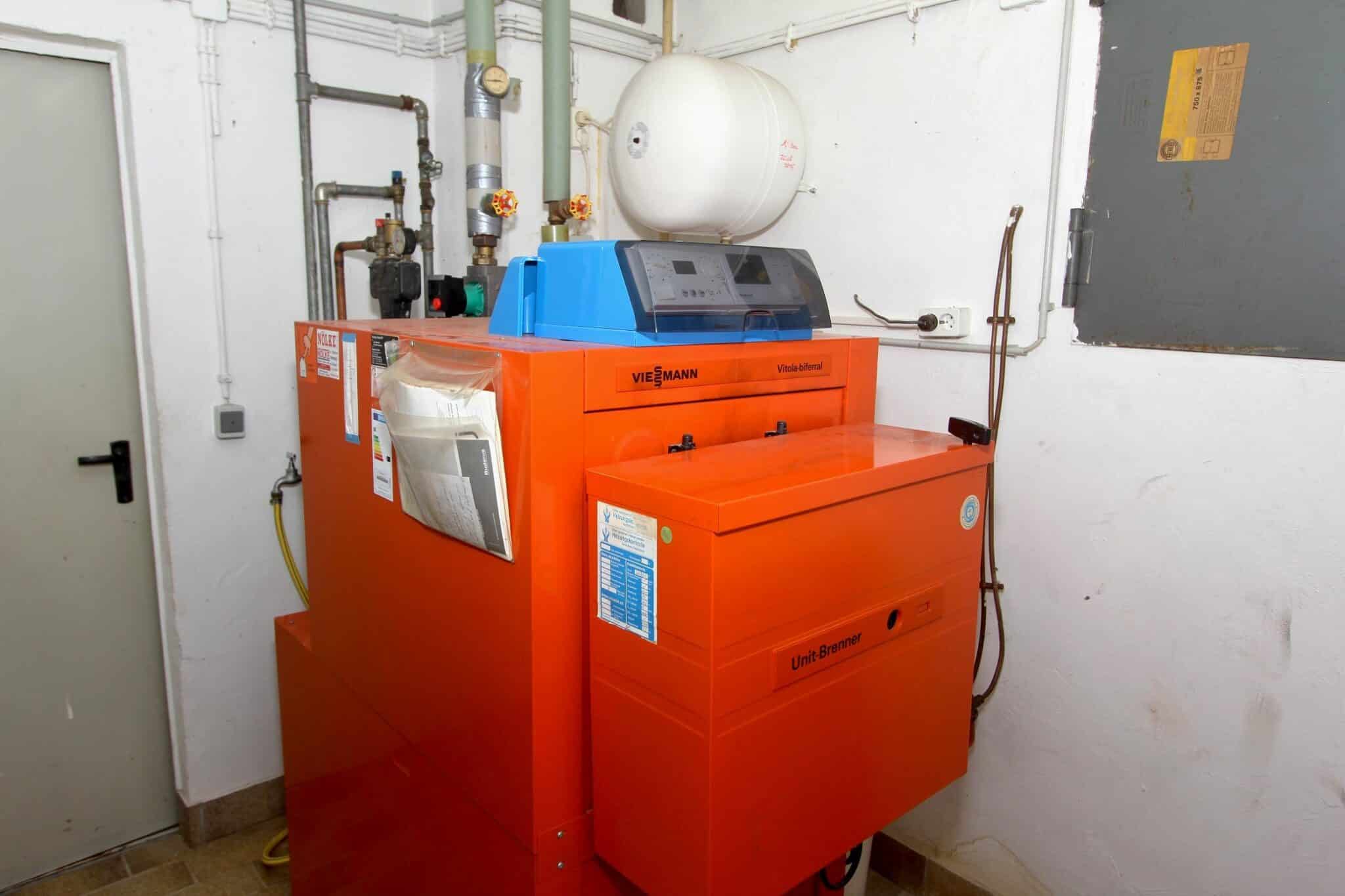 Die Beheizung erfolgt mit einer Ölzentralheizung (Fabrikat Viessmann, Baujahr 1987, mit Warmwasserspeicher). Das Heizöl wird in einem Stahltank bevorratet.