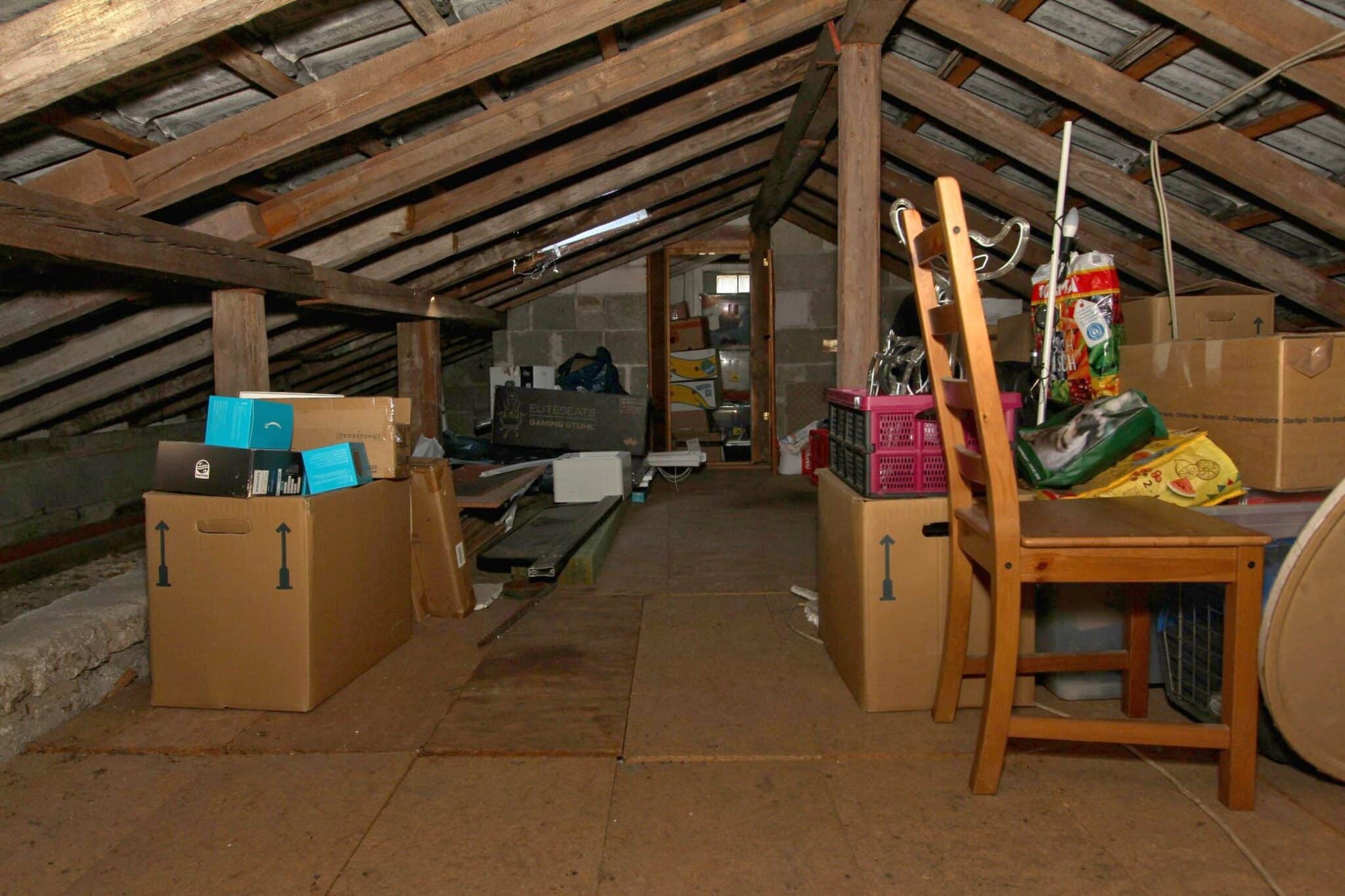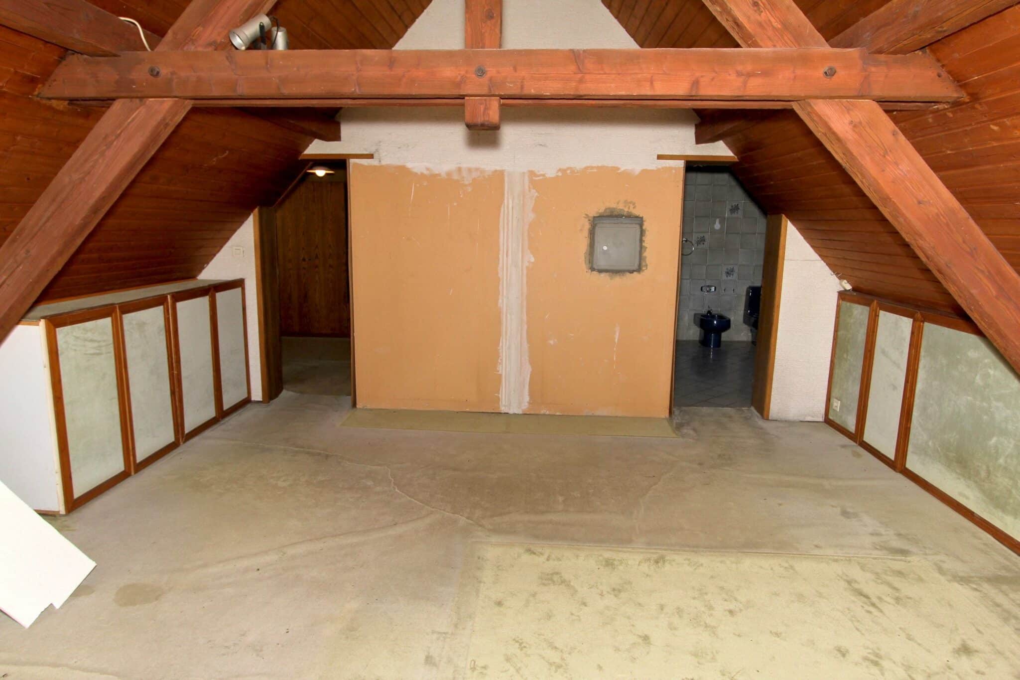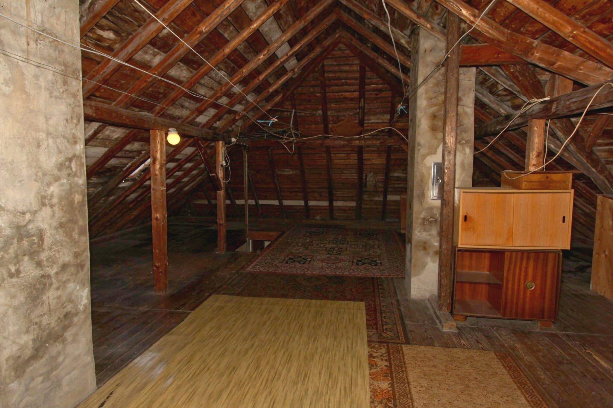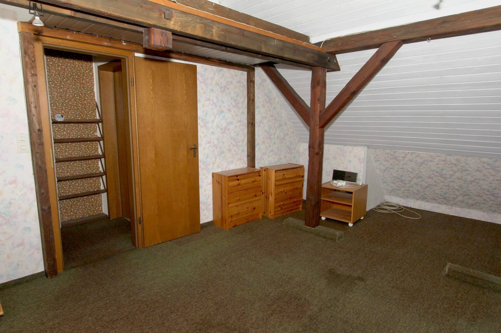 Der Dachboden ist über eine Holzauszugsleiter erreichbar. Das Haus ist unterkellert (niedrig!).