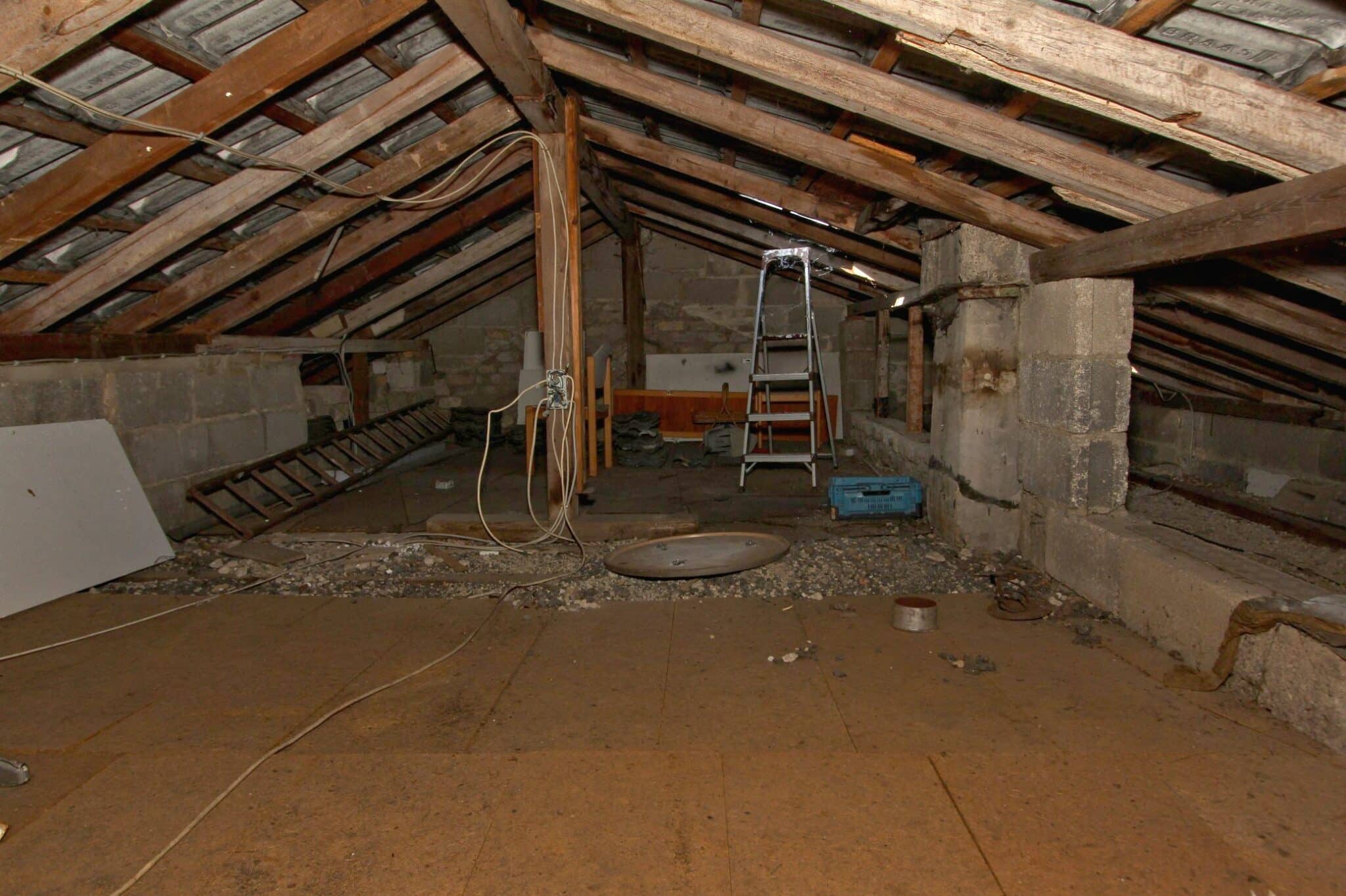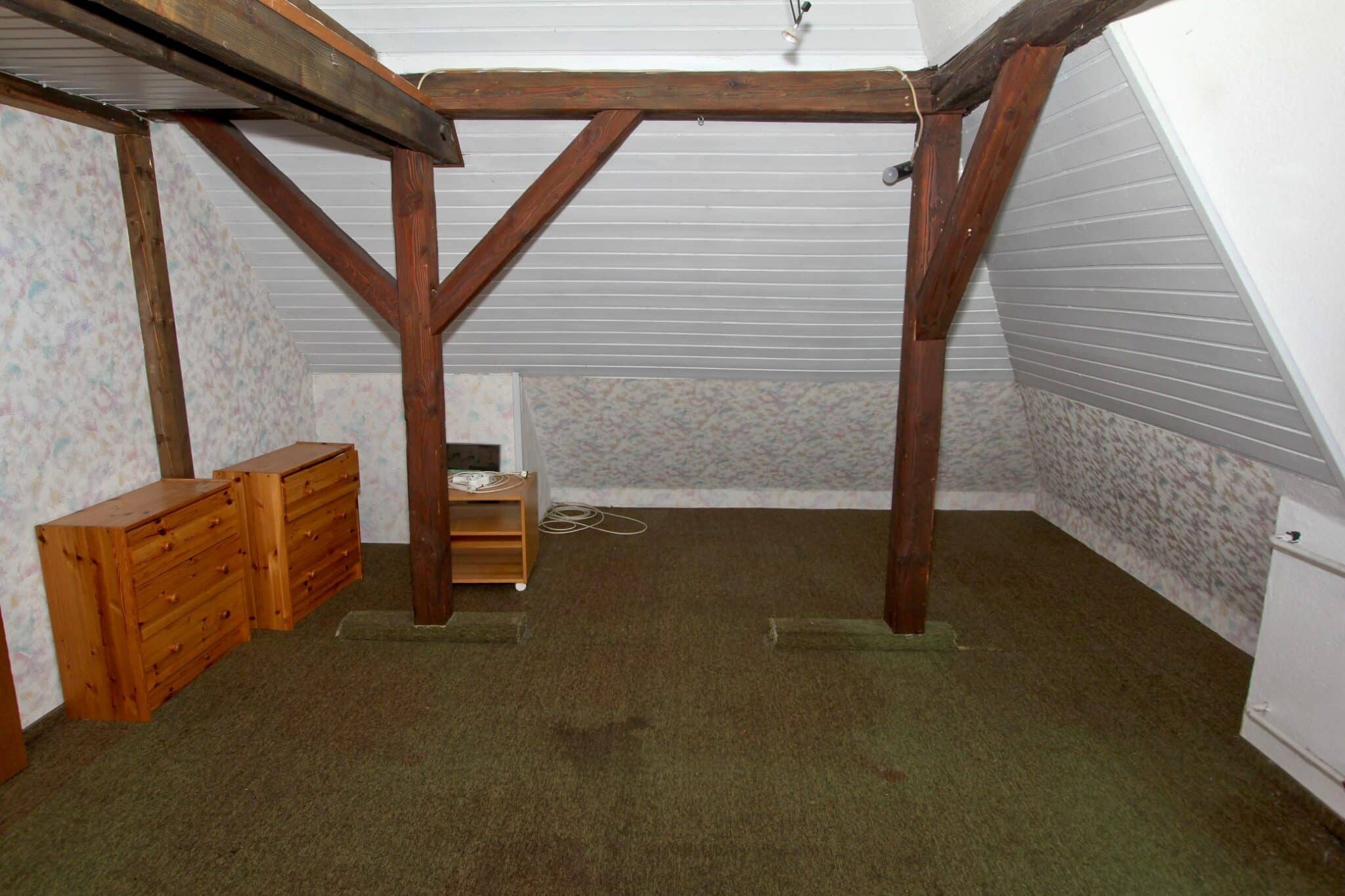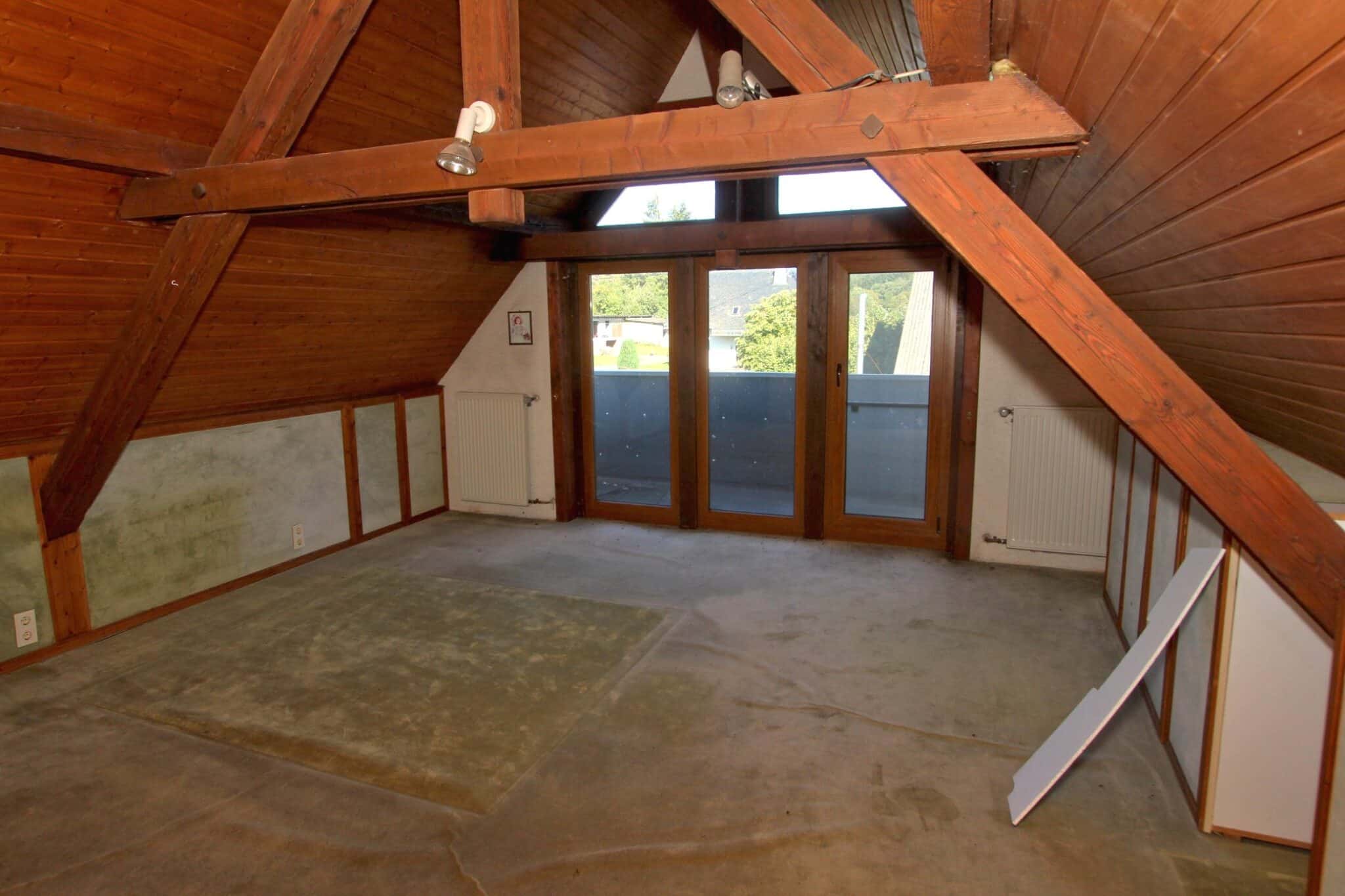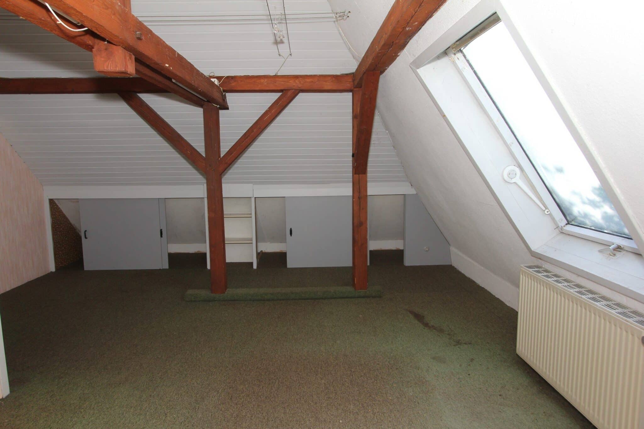 Der Dachboden ist über eine Holzauszugsleiter erreichbar. Das Haus ist unterkellert (niedrig!).