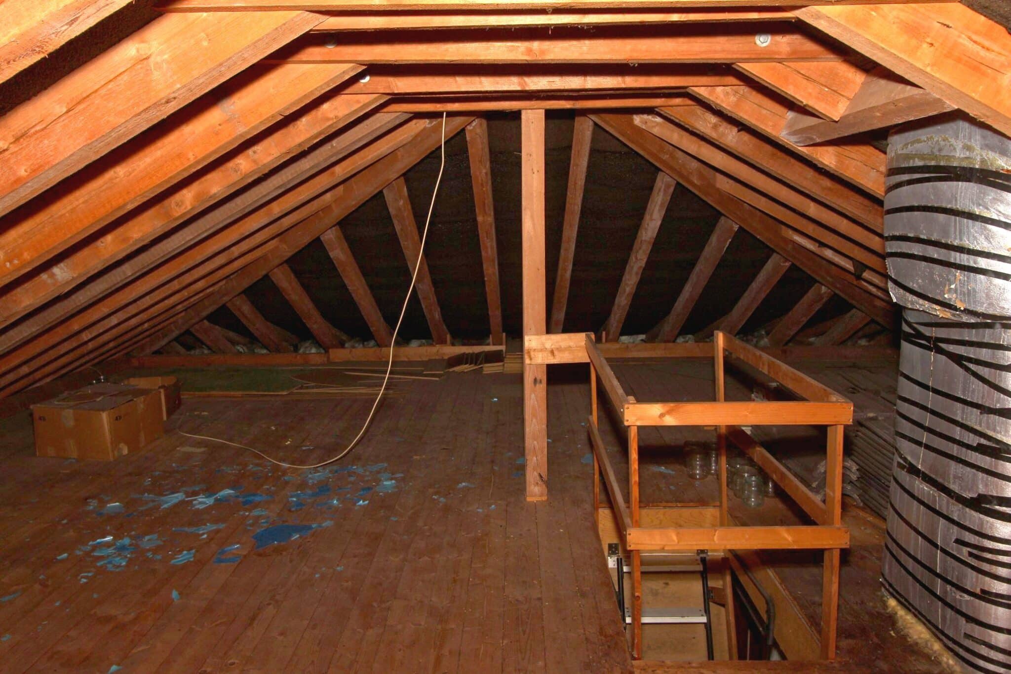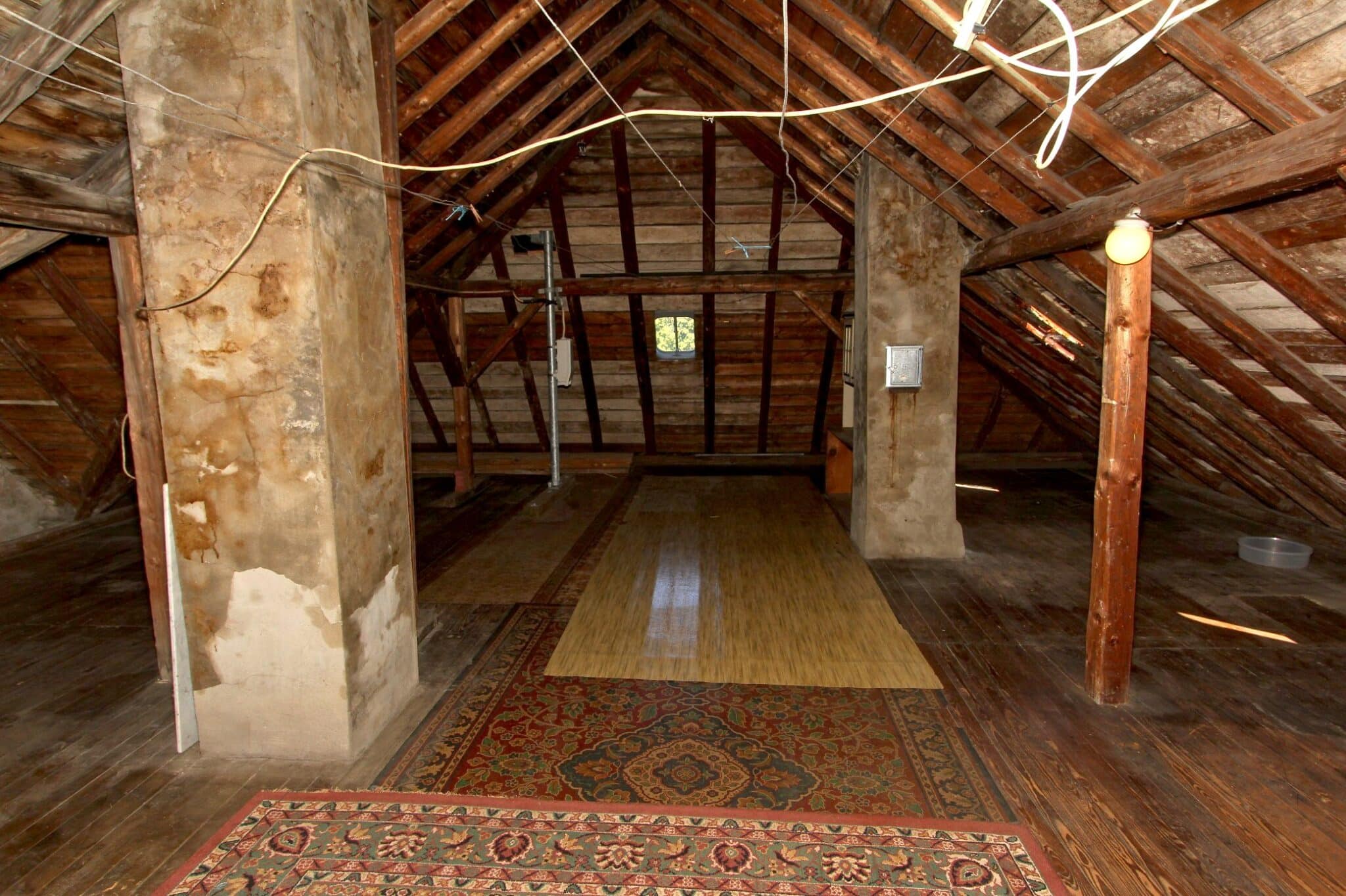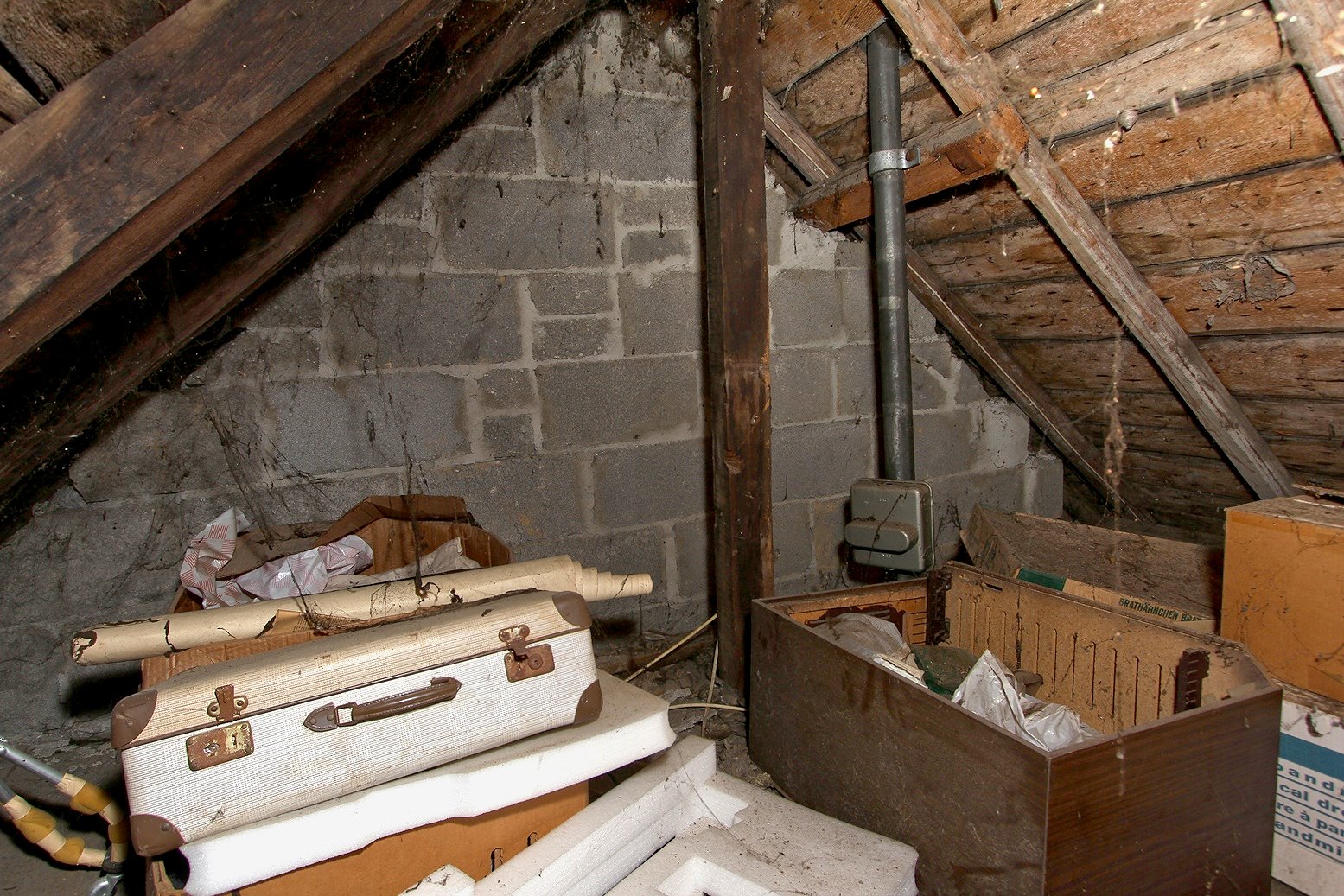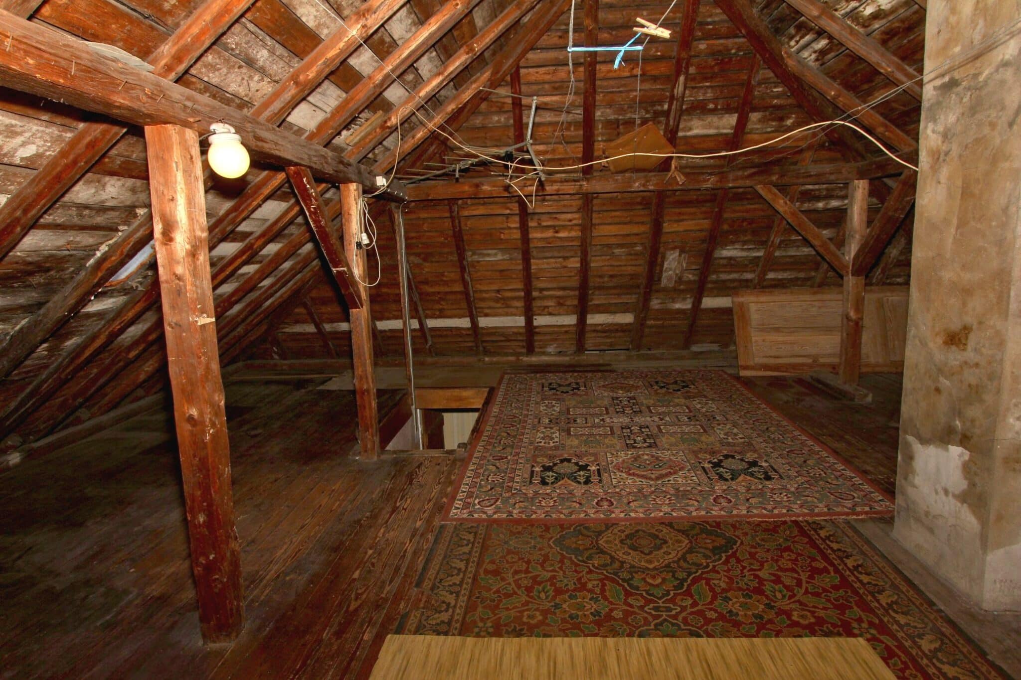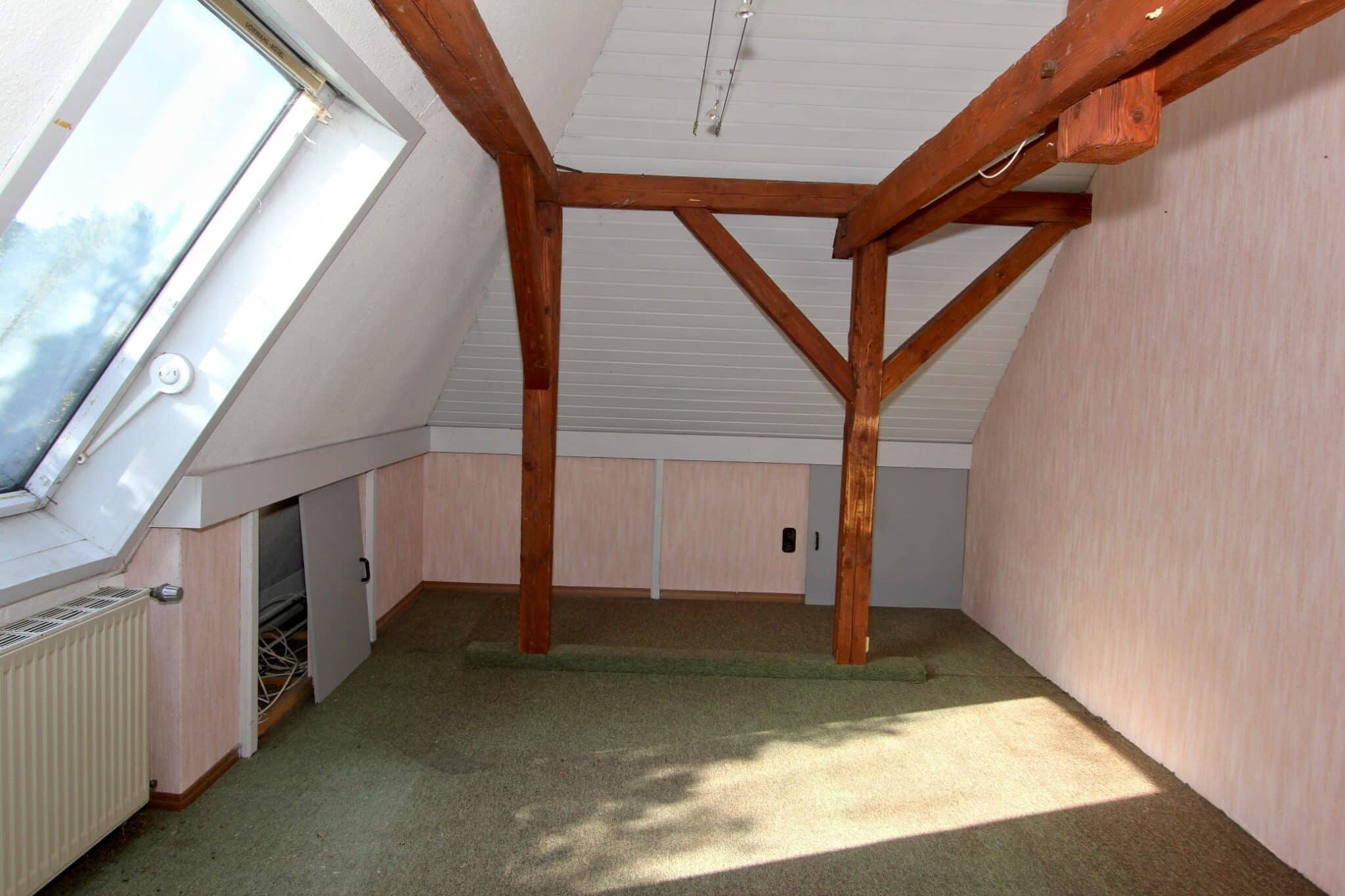Der Dachboden ist über eine Holzauszugsleiter erreichbar. Das Haus ist unterkellert (niedrig!).