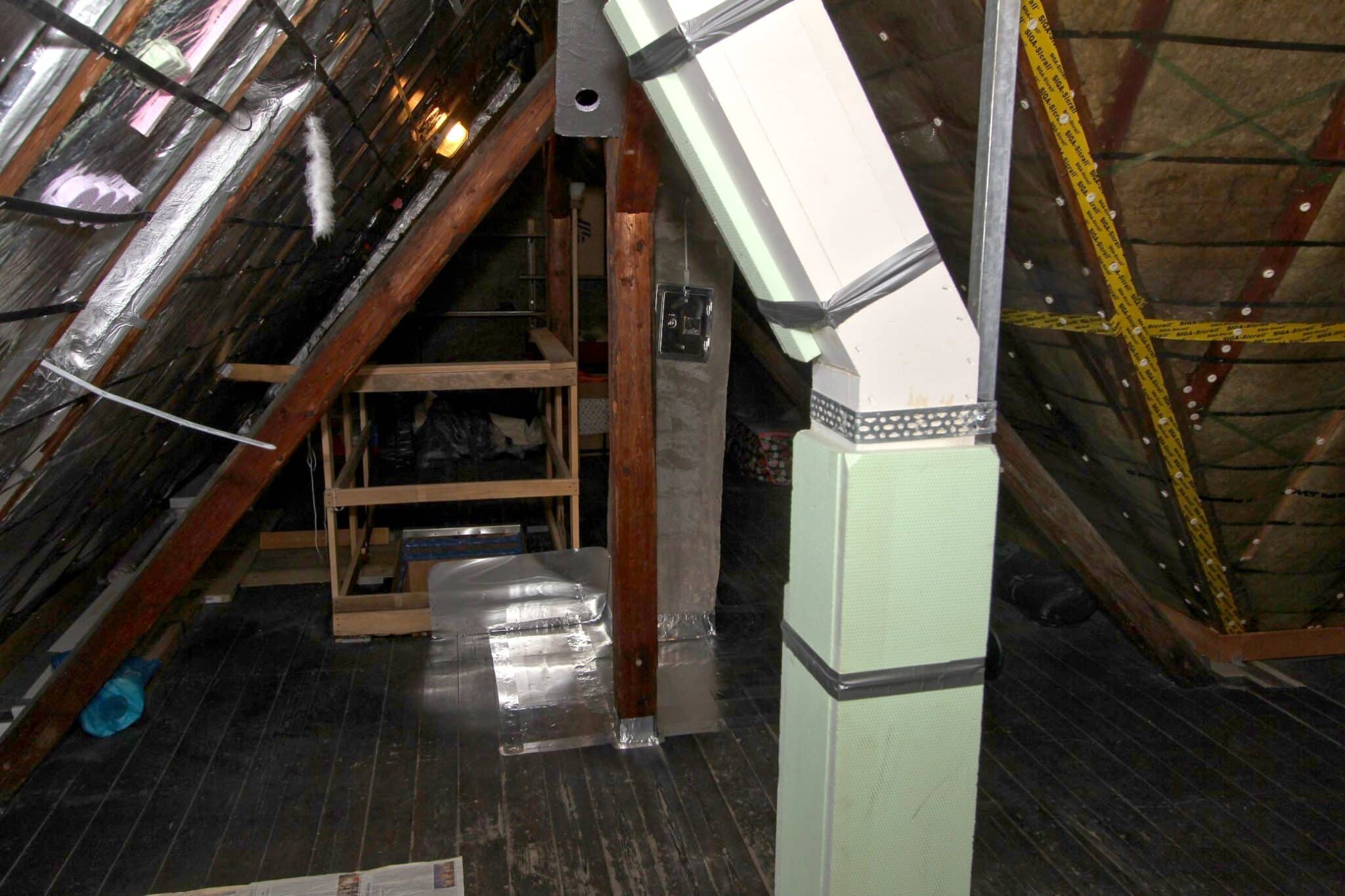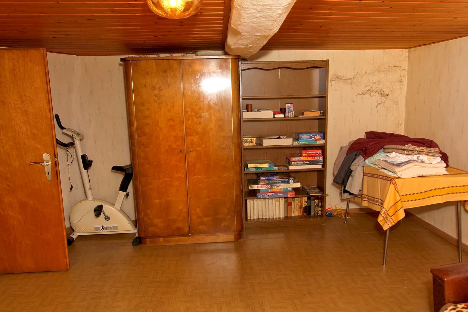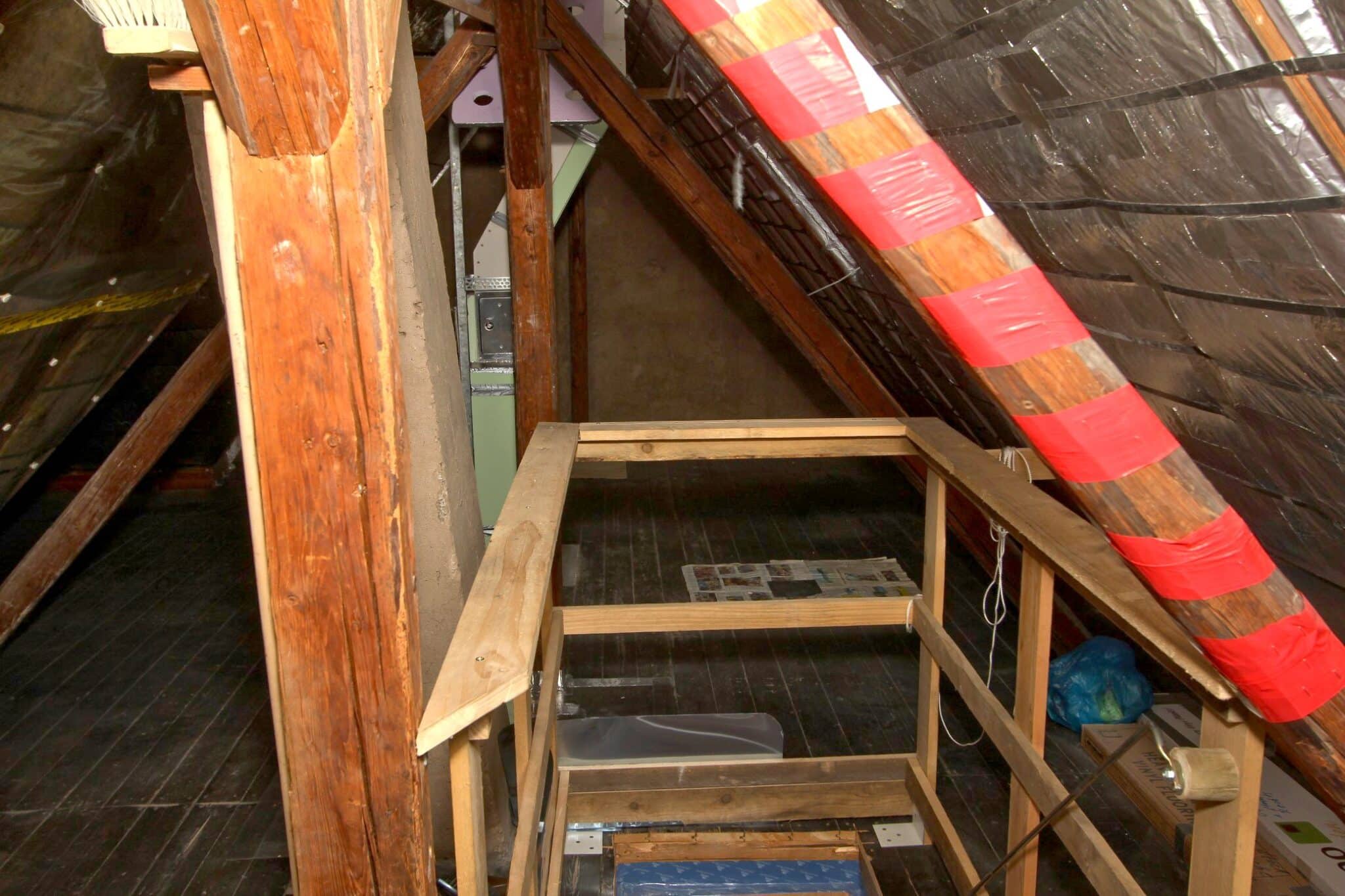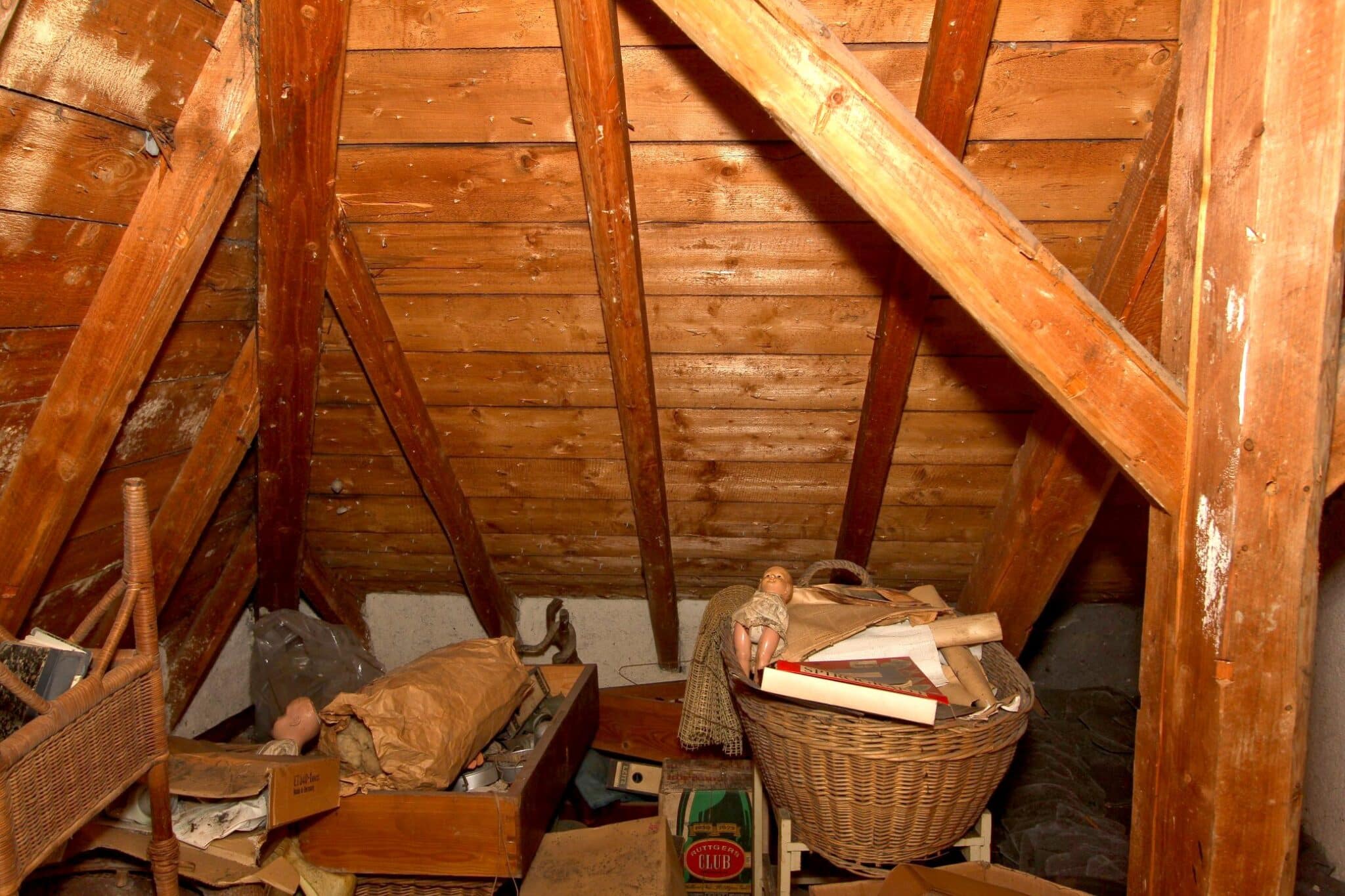 Der Dachboden ist über eine Holzauszugsleiter erreichbar. Das Haus ist unterkellert (niedrig!).