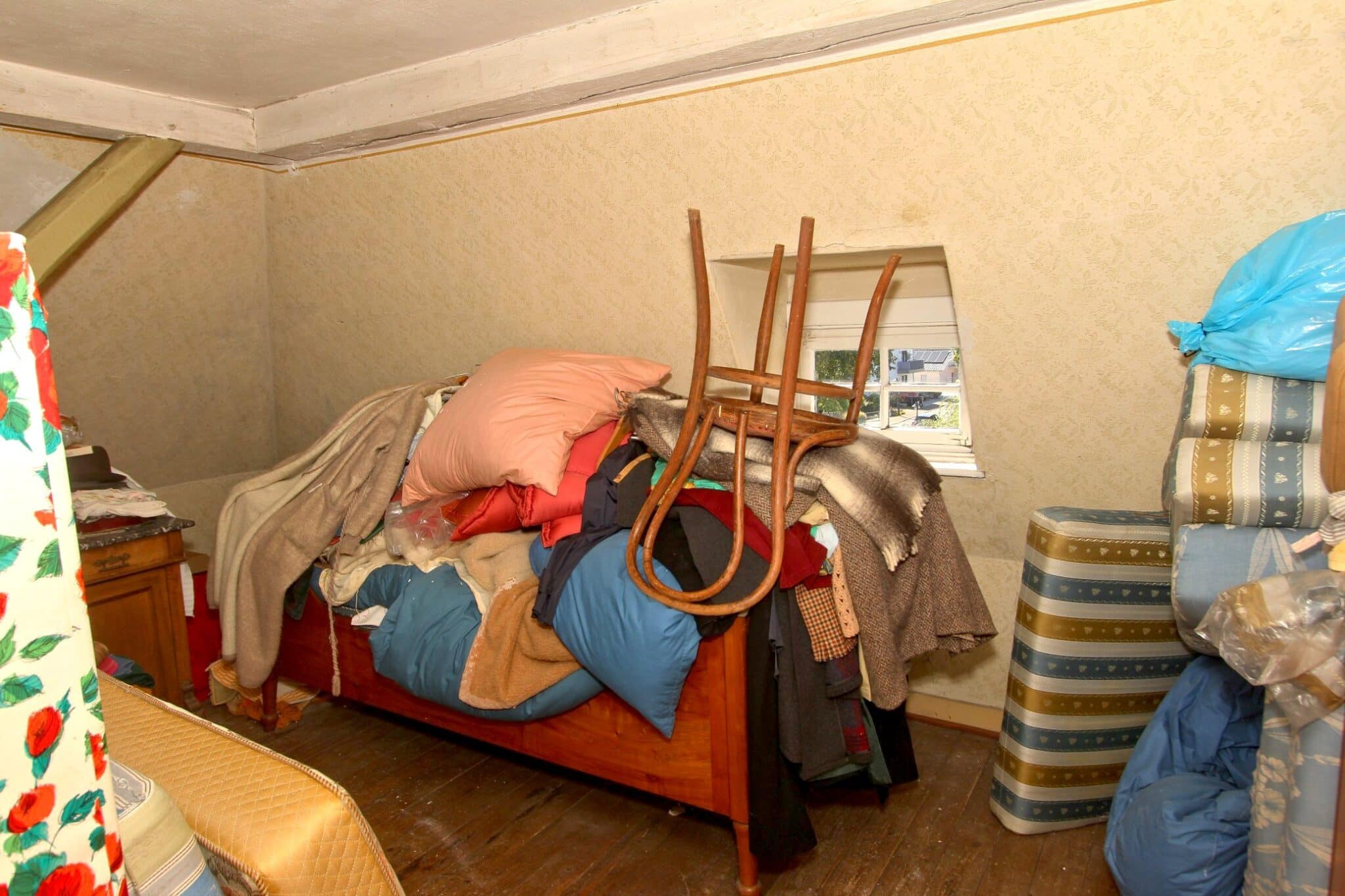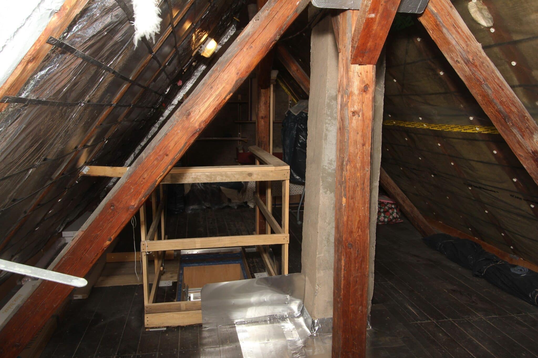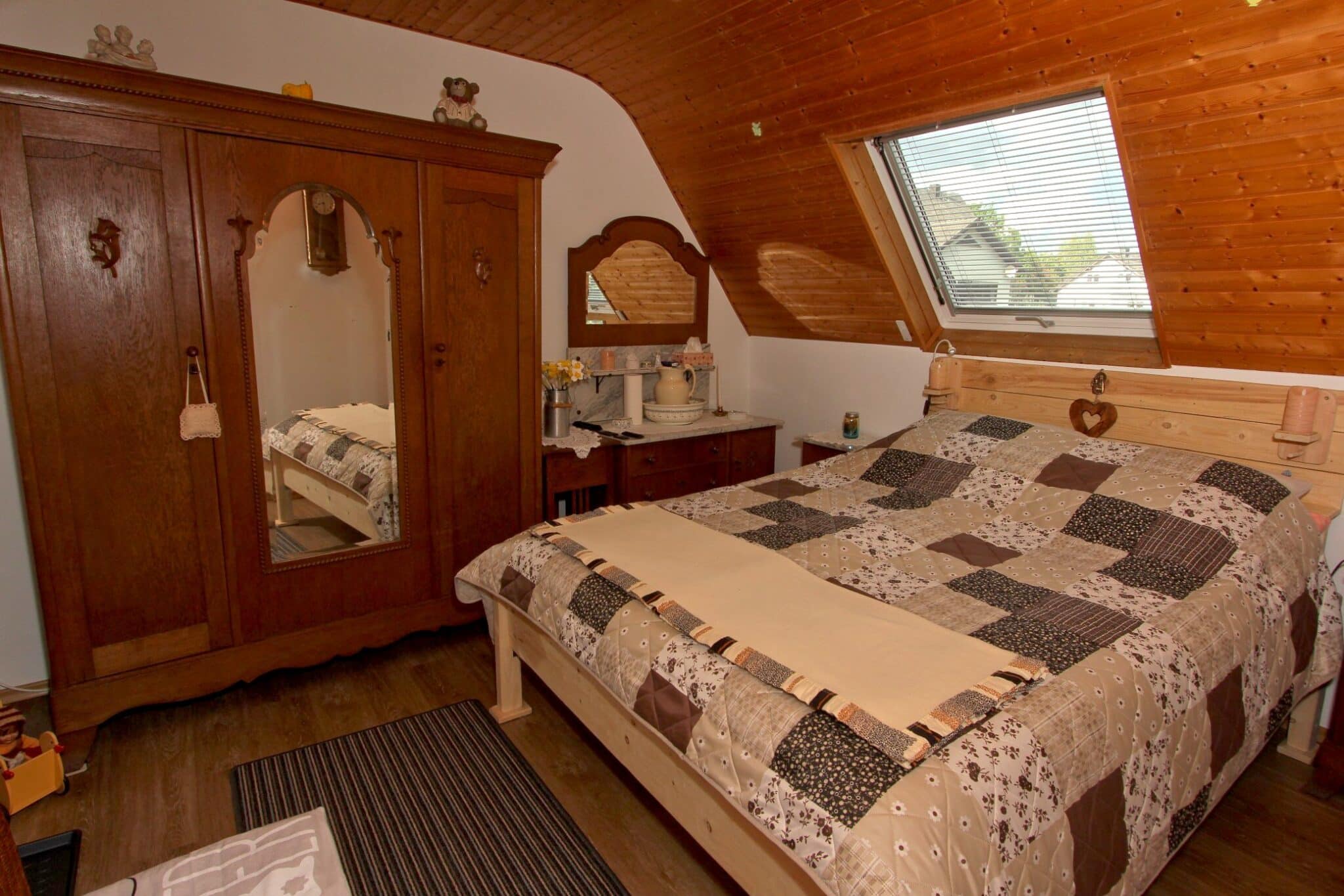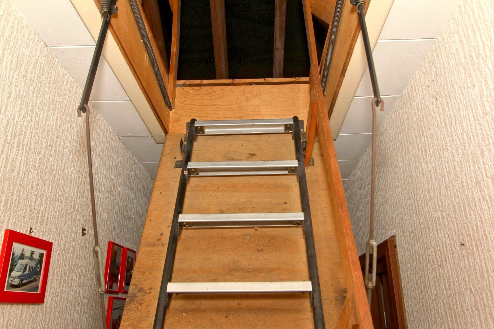 Der Dachboden ist über eine Holzauszugsleiter erreichbar. Das Haus ist unterkellert (niedrig!).
