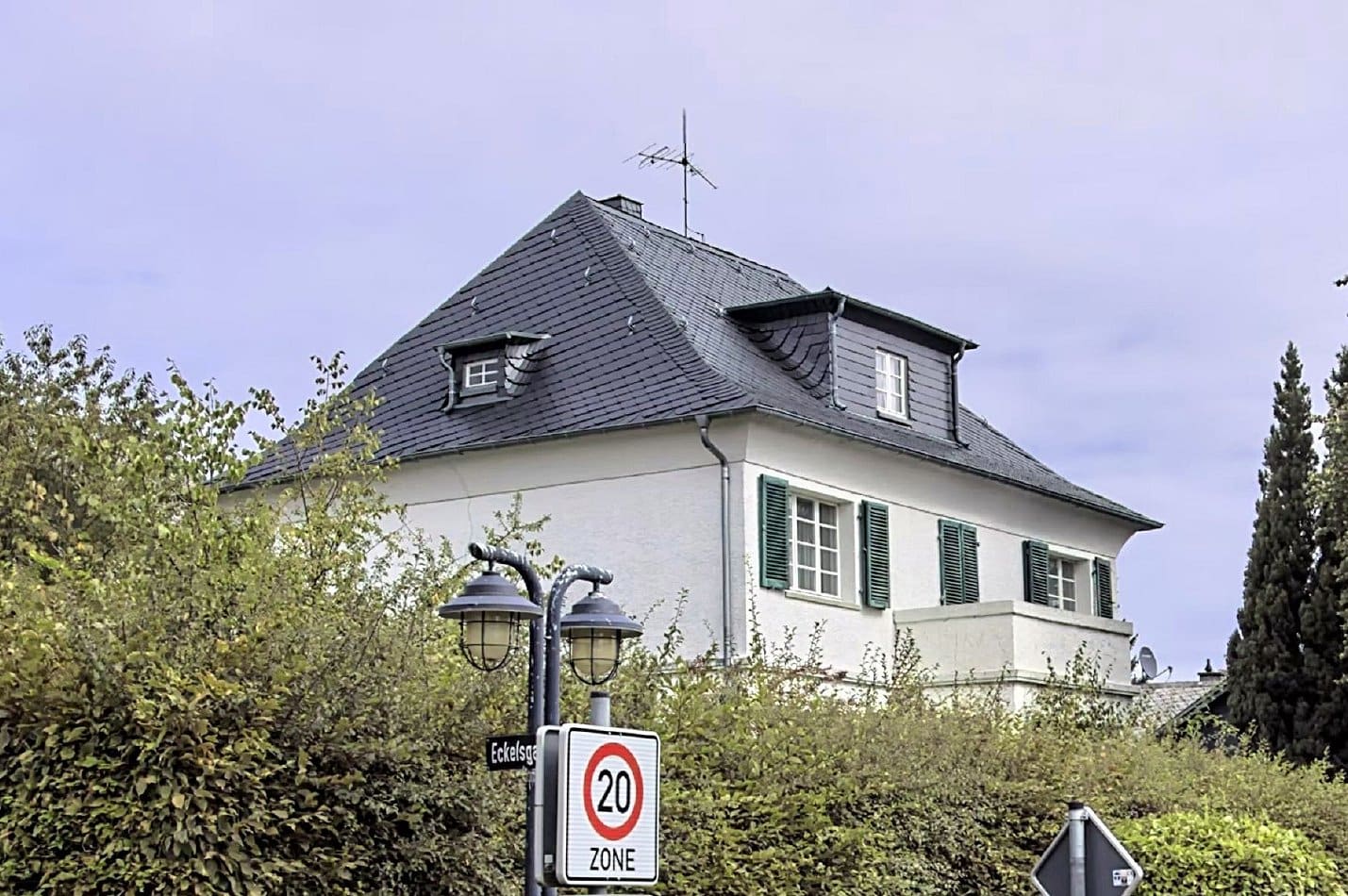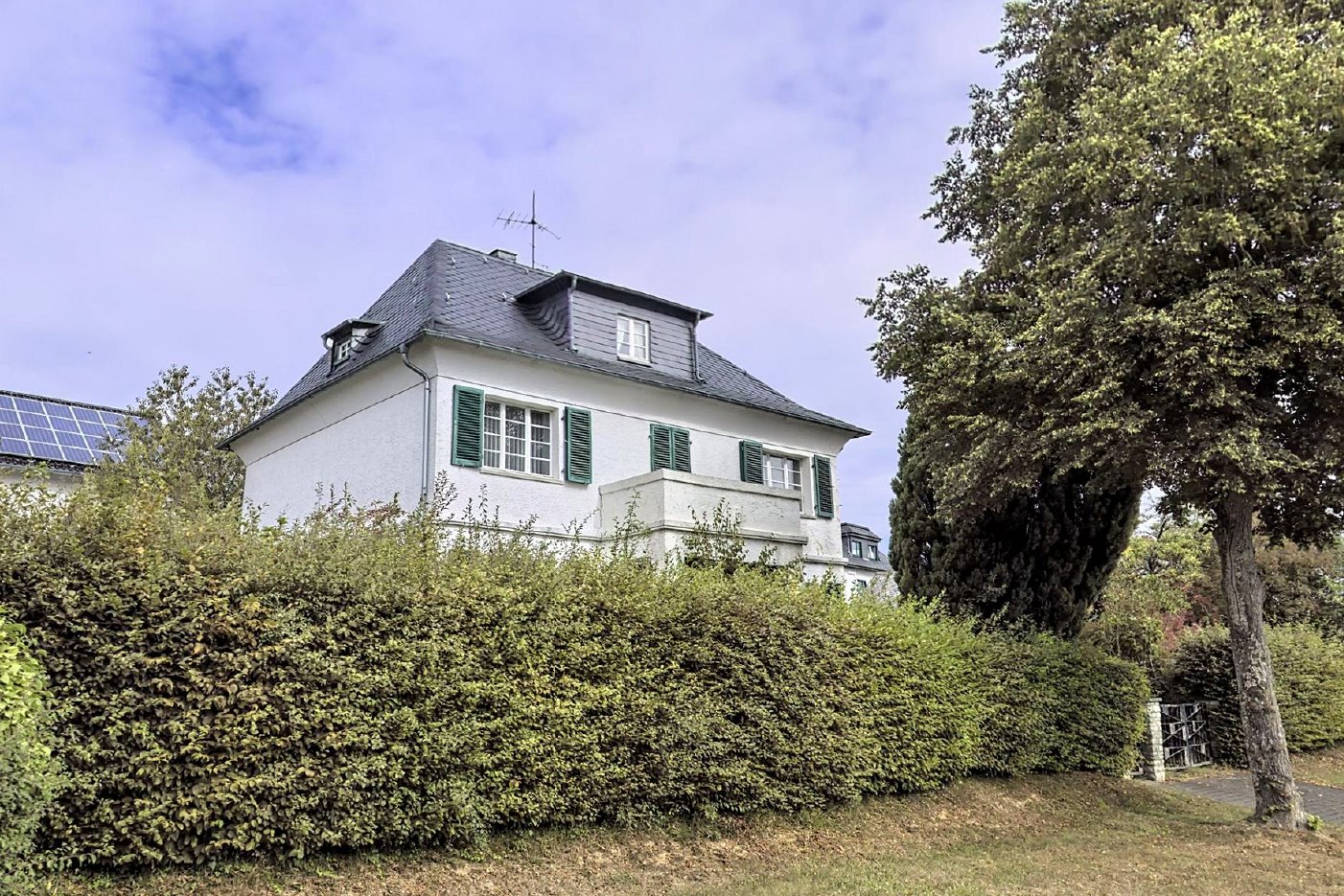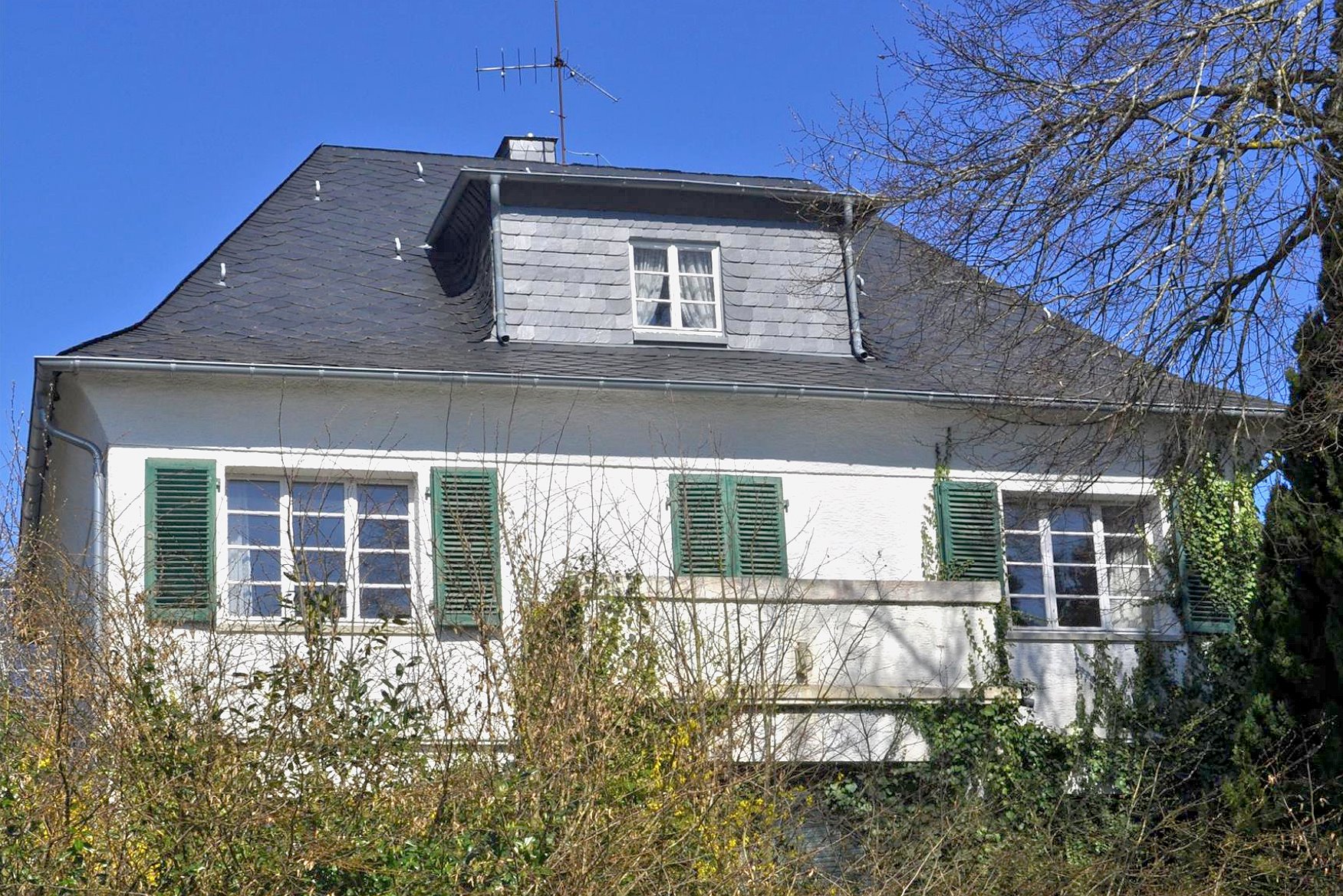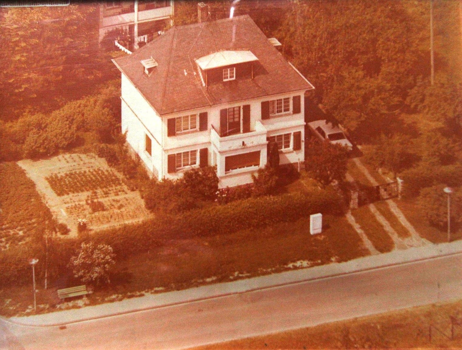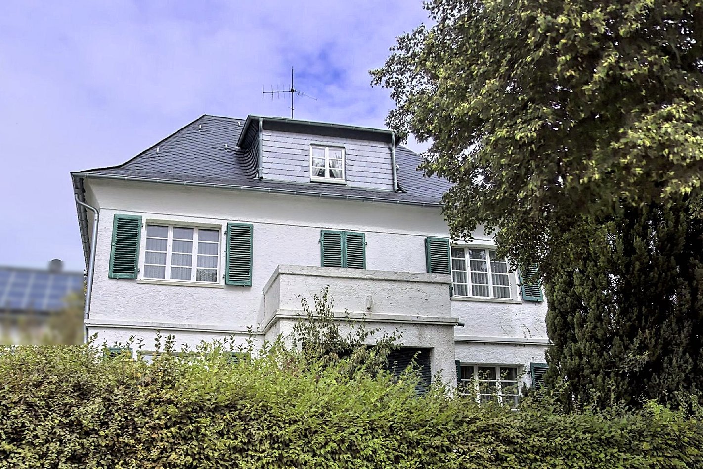 In Alleinlage am südlichen Ortsrand wurde in den Jahren 1922/23 die zu veräußernde Immobilie als Jugendstilvilla erbaut. Das eindrucksvolle Gebäude trägt den Charme einer vergangenen Epoche in die Gegenwart. Die Außenwände wurden ab Mitte der 70er Jahre verkleidet, der Wintergarten 1994 angebaut. Seitlich versetzt hinter dem Haus steht die Garage.