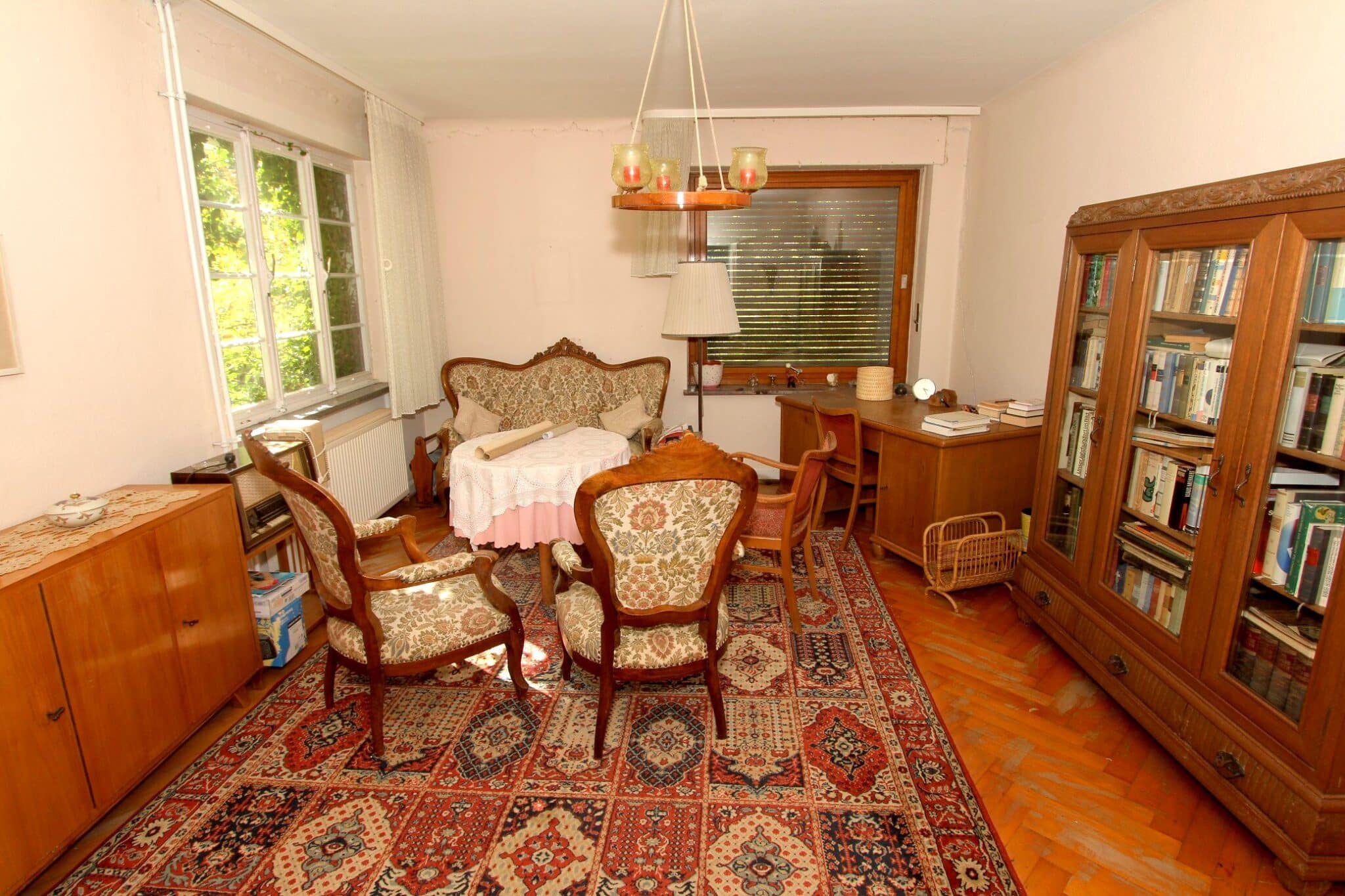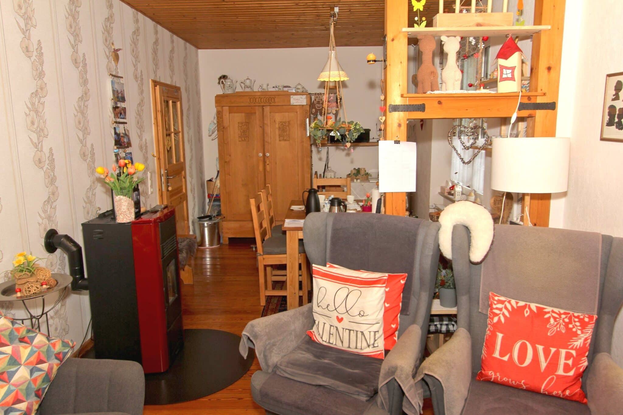 Die Wohnbereiche befinden sich in vorbildlich renoviertem Zustand und könnten direkt bezogen werden. Alle Arbeiten im und am Haus wurden von regional ansässigen Fachfirmen ausgeführt. Die Dachgeschosswohnung ist vermietet.