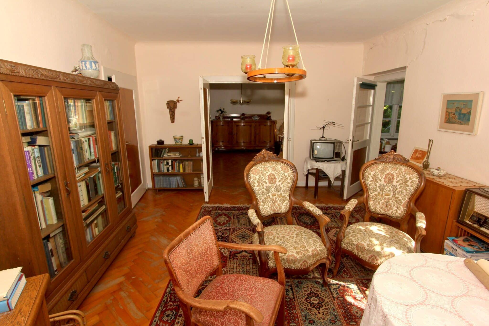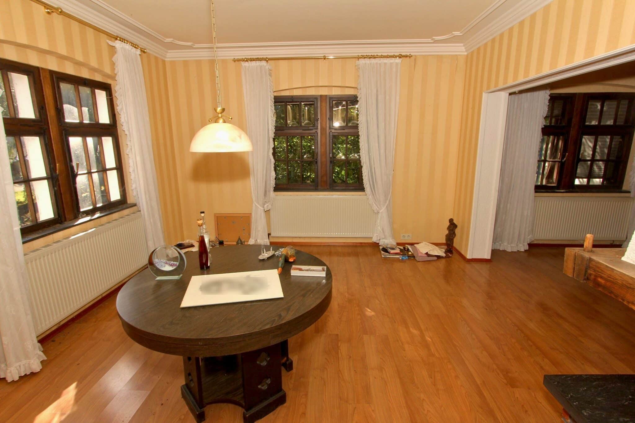 Schon beim Eintreten spürt man: Die Diele ist das Herz dieser Jugendstilvilla. Sie empfängt den Besucher nicht einfach – sie inszeniert den Eintritt ins Haus. Das Wohngefühl ist geprägt von historischer Atmosphäre, handwerklicher Eleganz und der stillen Würde eines Hauses, das Geschichte atmet und Geborgenheit vermittelt.
