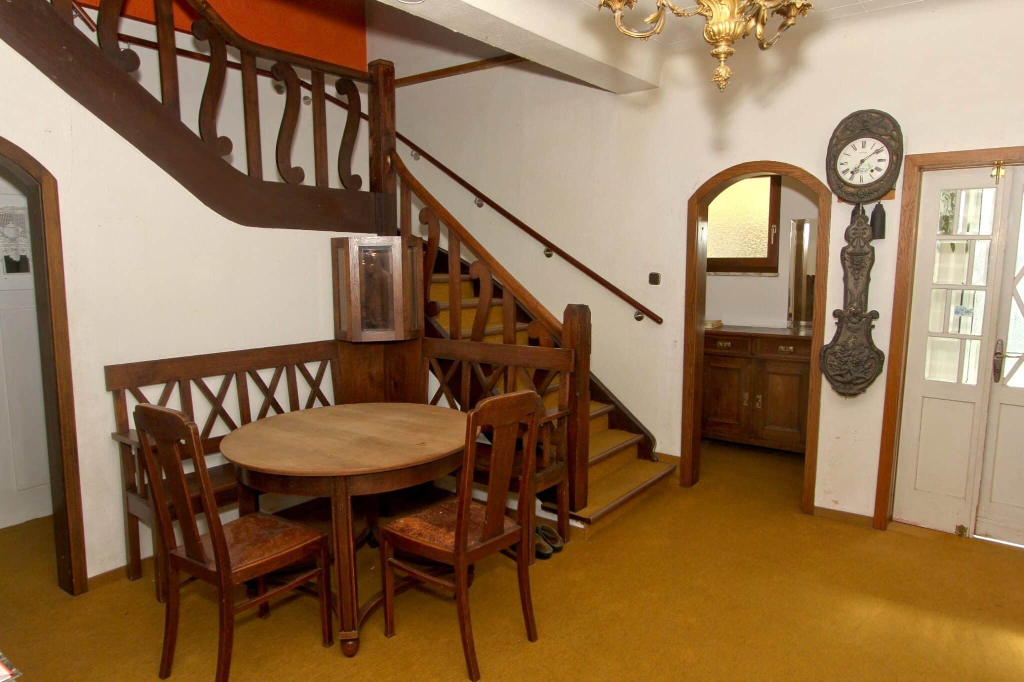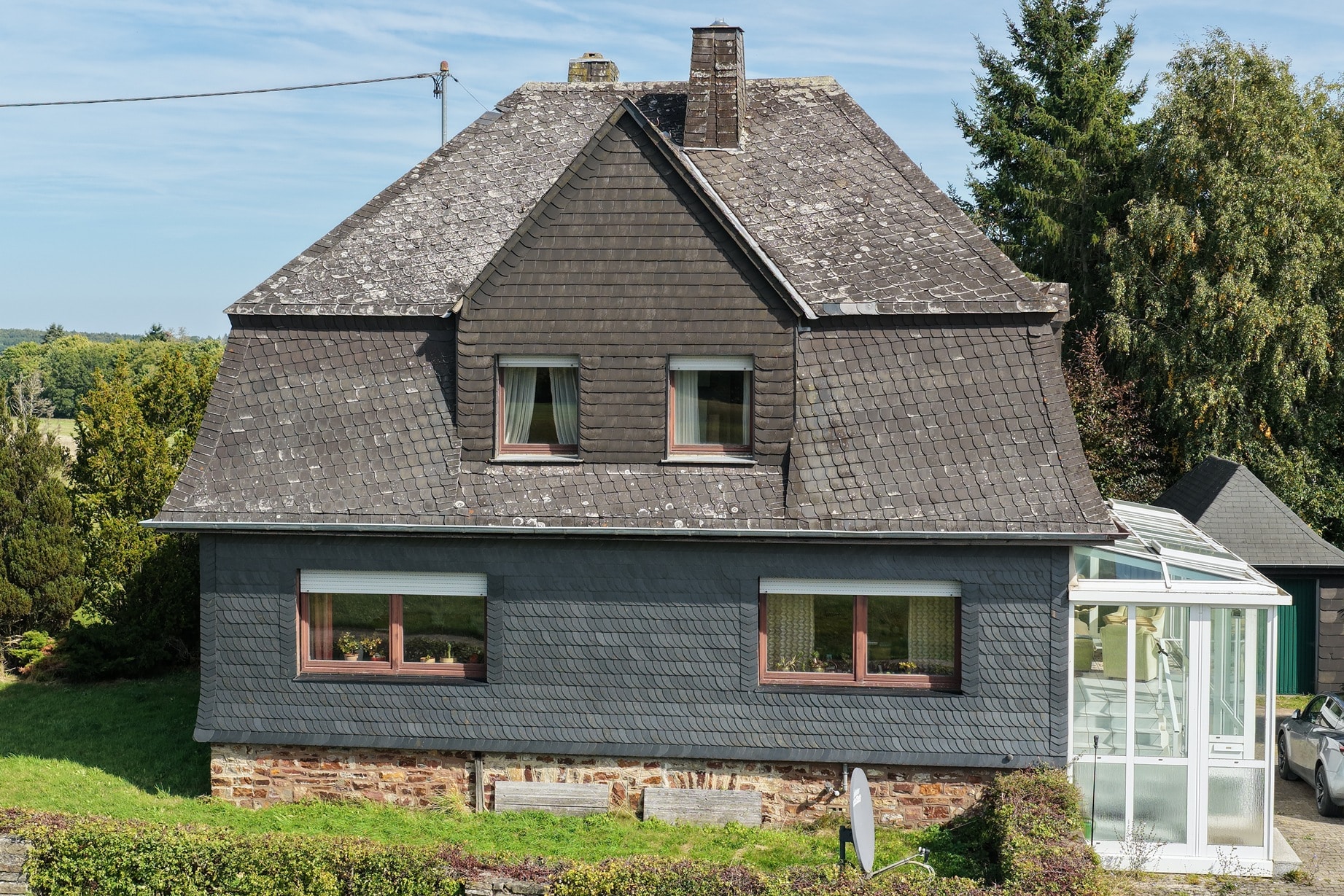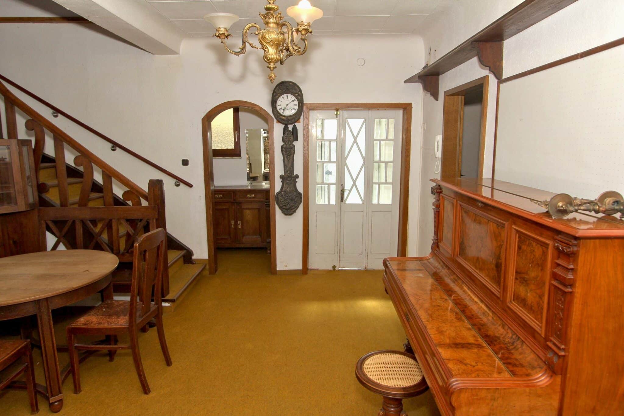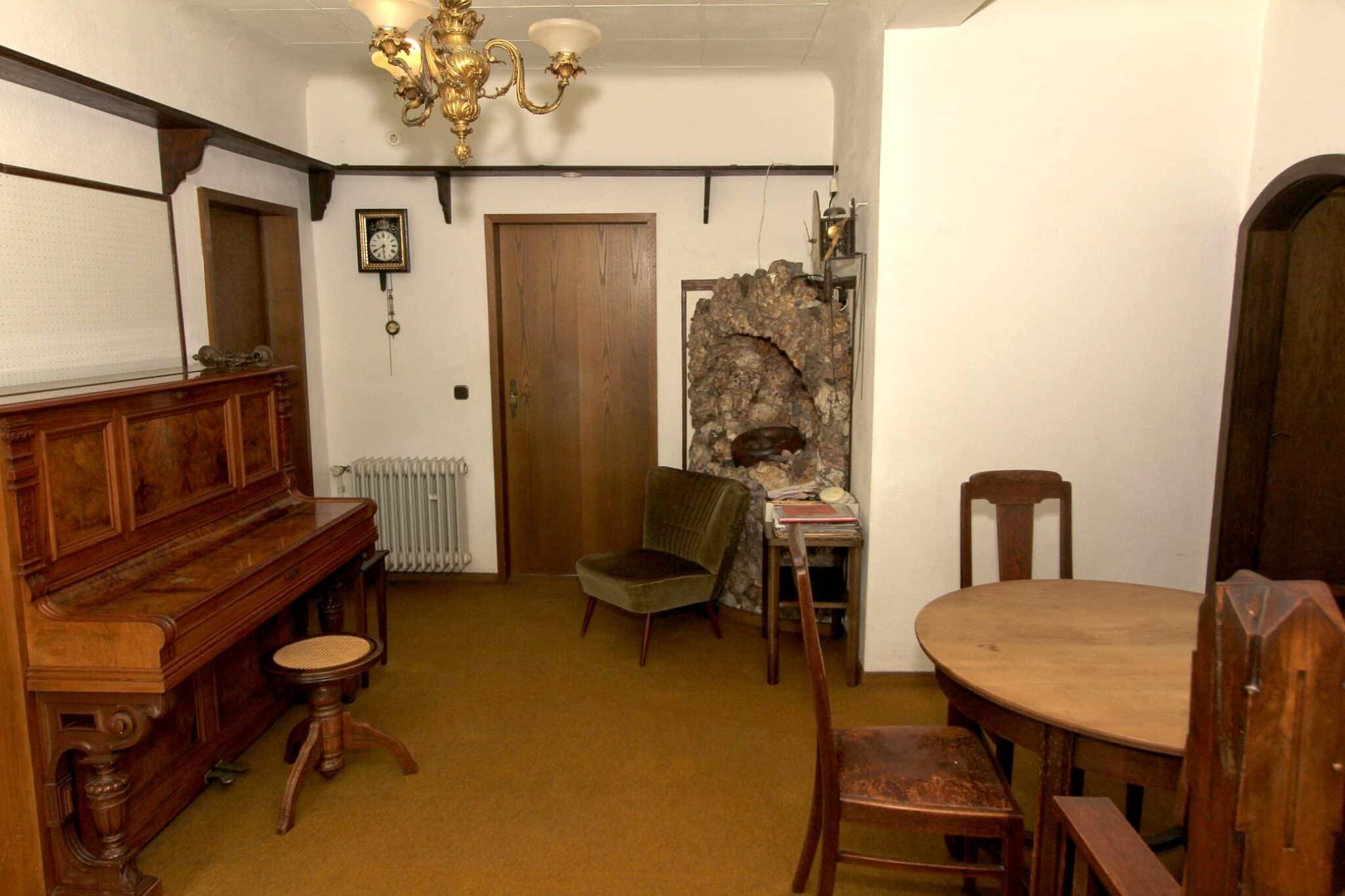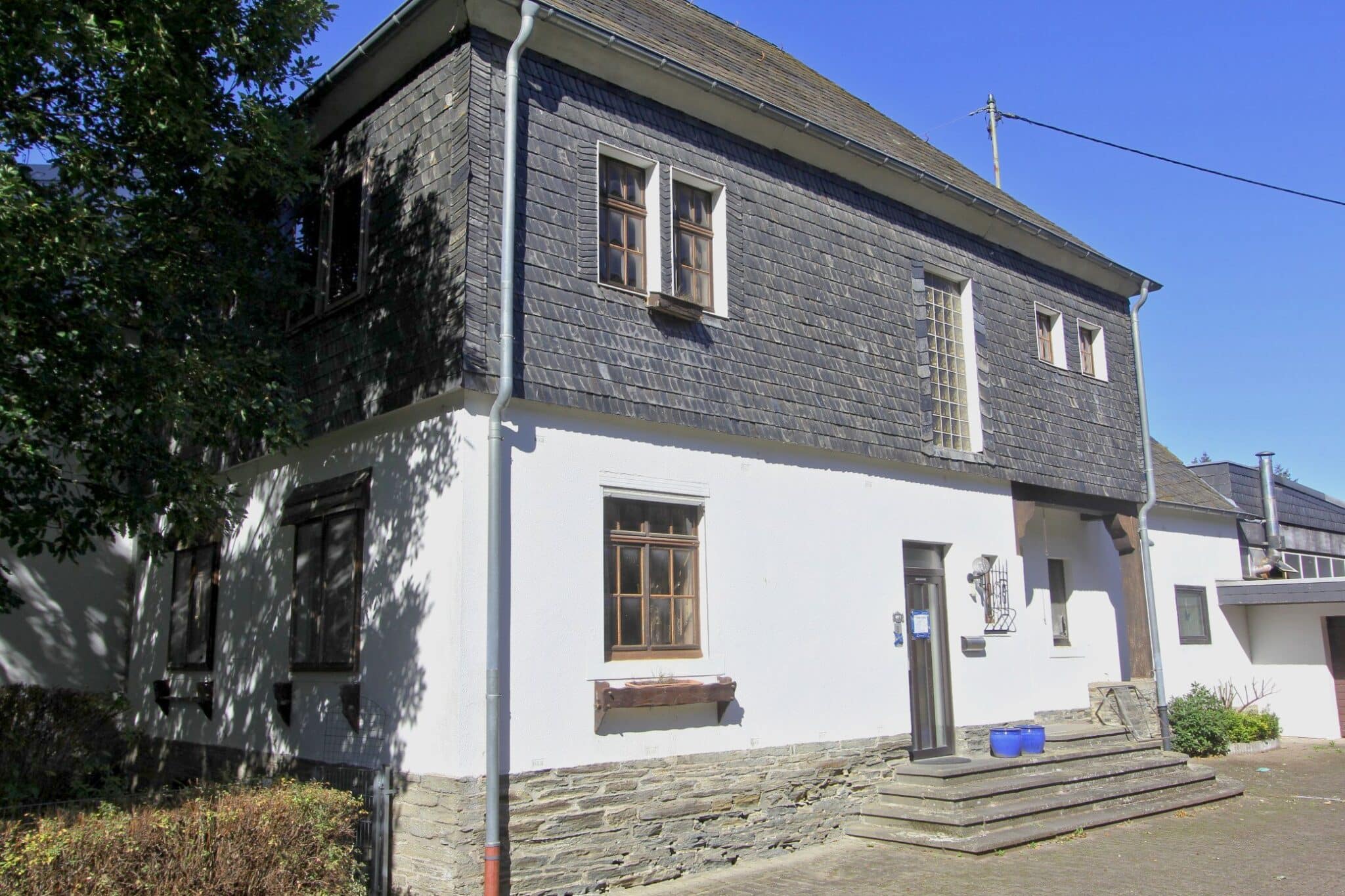 Die Beheizung erfolgt mit drei Einzelöfen (Öl und Kohle). Das Dach ist mit Naturschiefer eingedeckt. Den renovierungsbedürftigen Zustand der Immobilie entnehmen Sie bitte den Beschreibungsfotos.