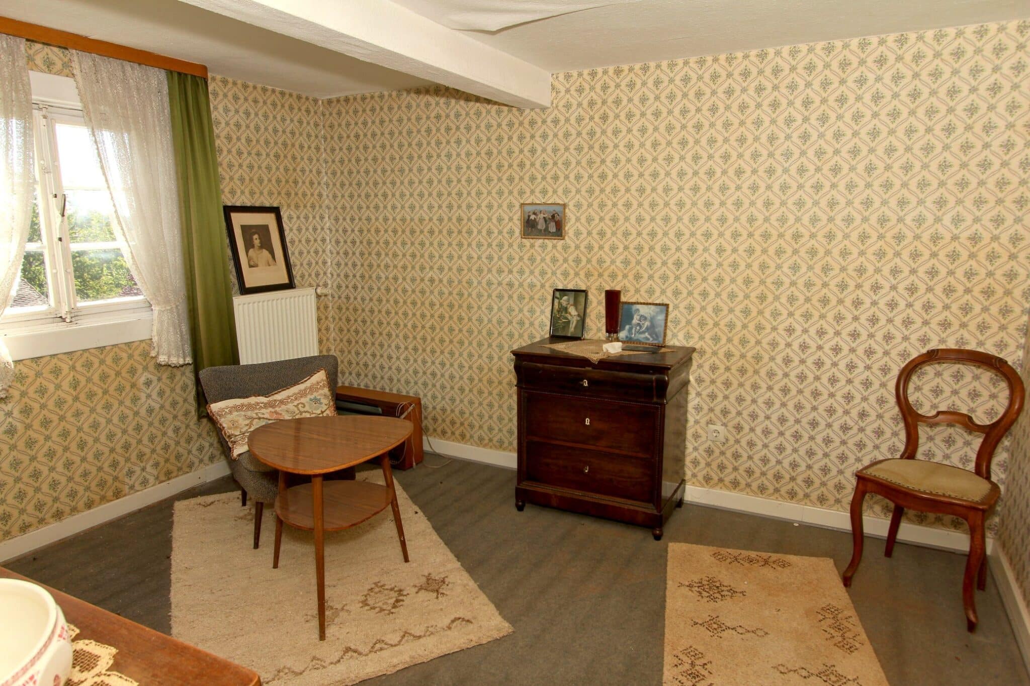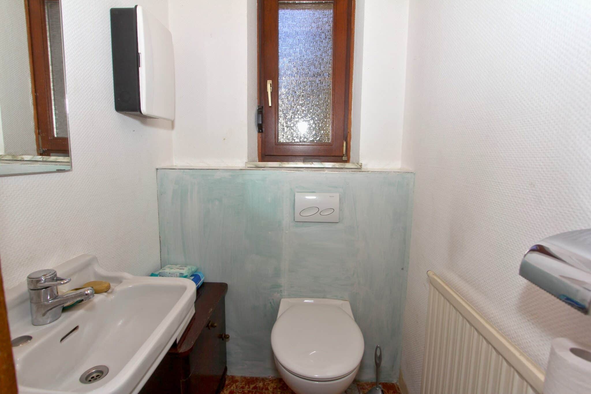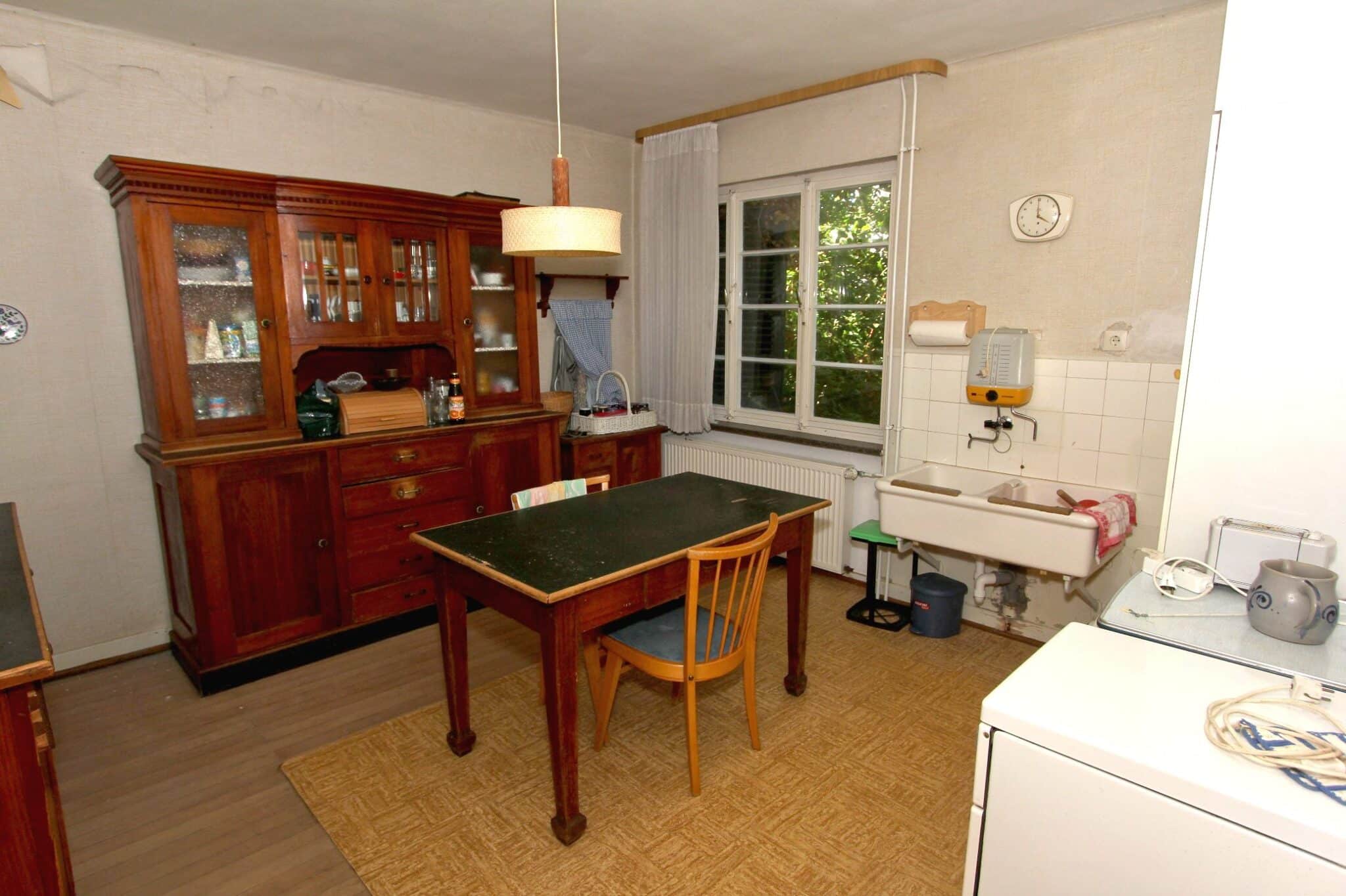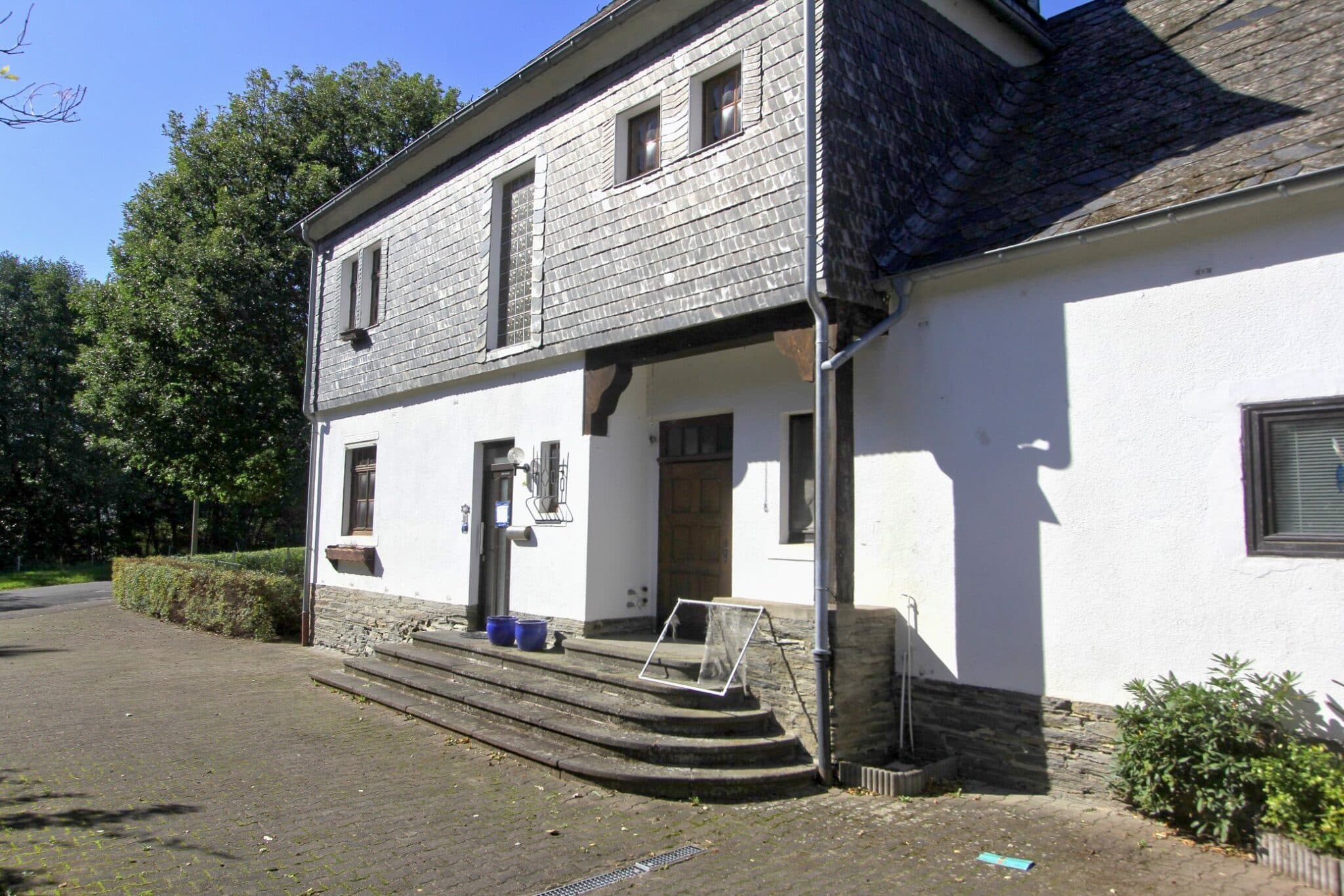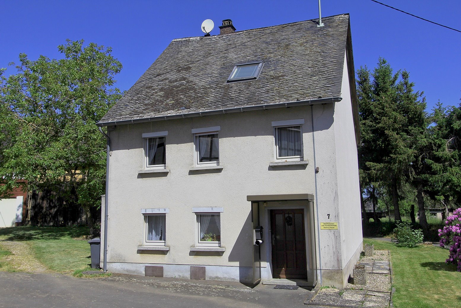 Die Beheizung erfolgt mit drei Einzelöfen (Öl und Kohle). Das Dach ist mit Naturschiefer eingedeckt. Den renovierungsbedürftigen Zustand der Immobilie entnehmen Sie bitte den Beschreibungsfotos.