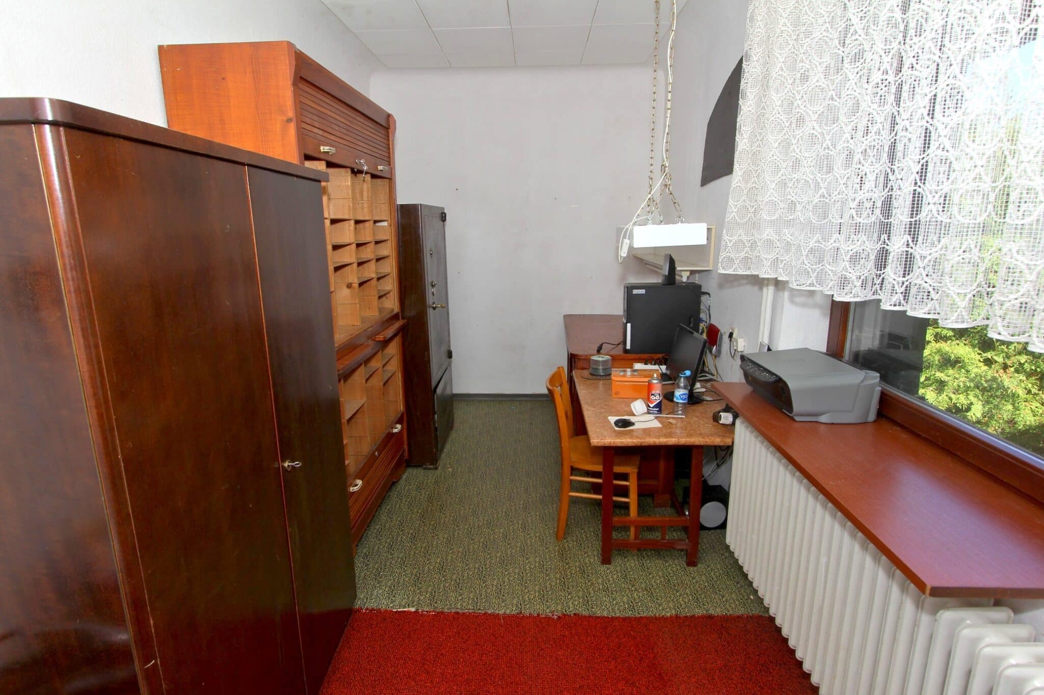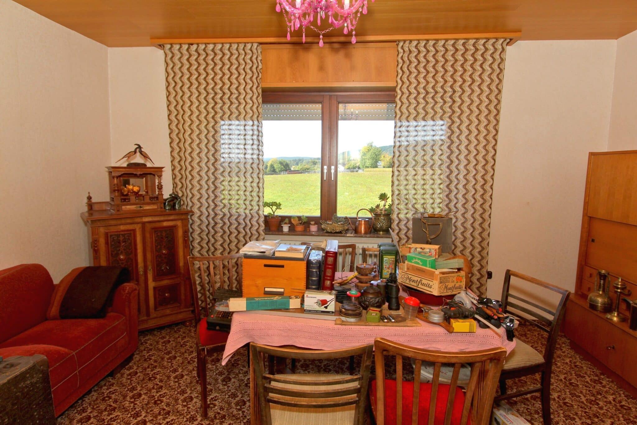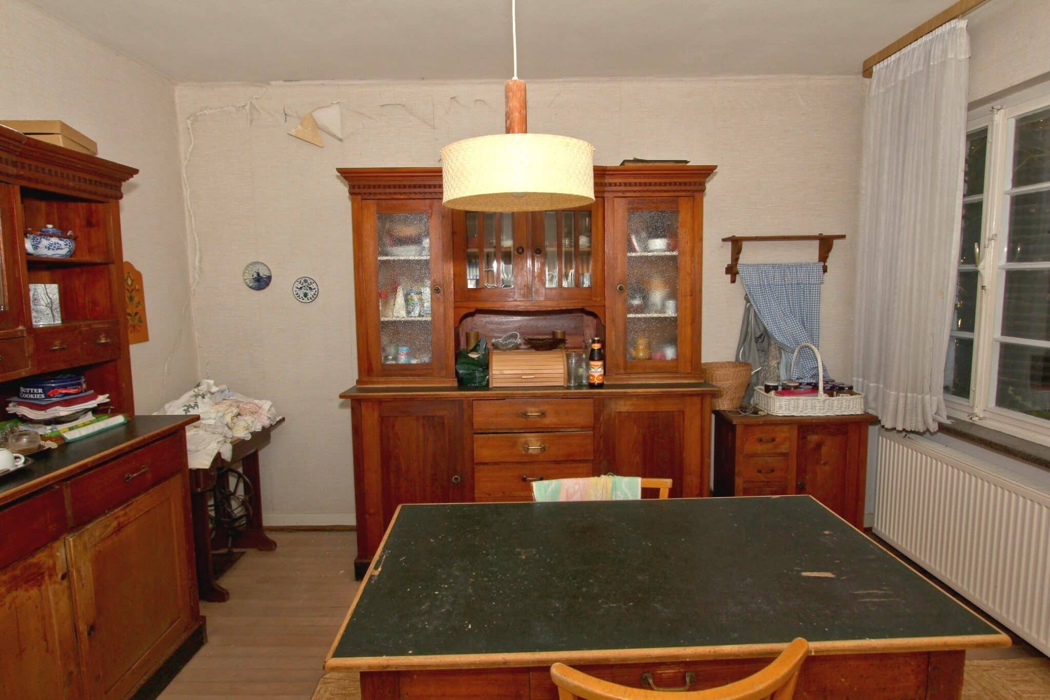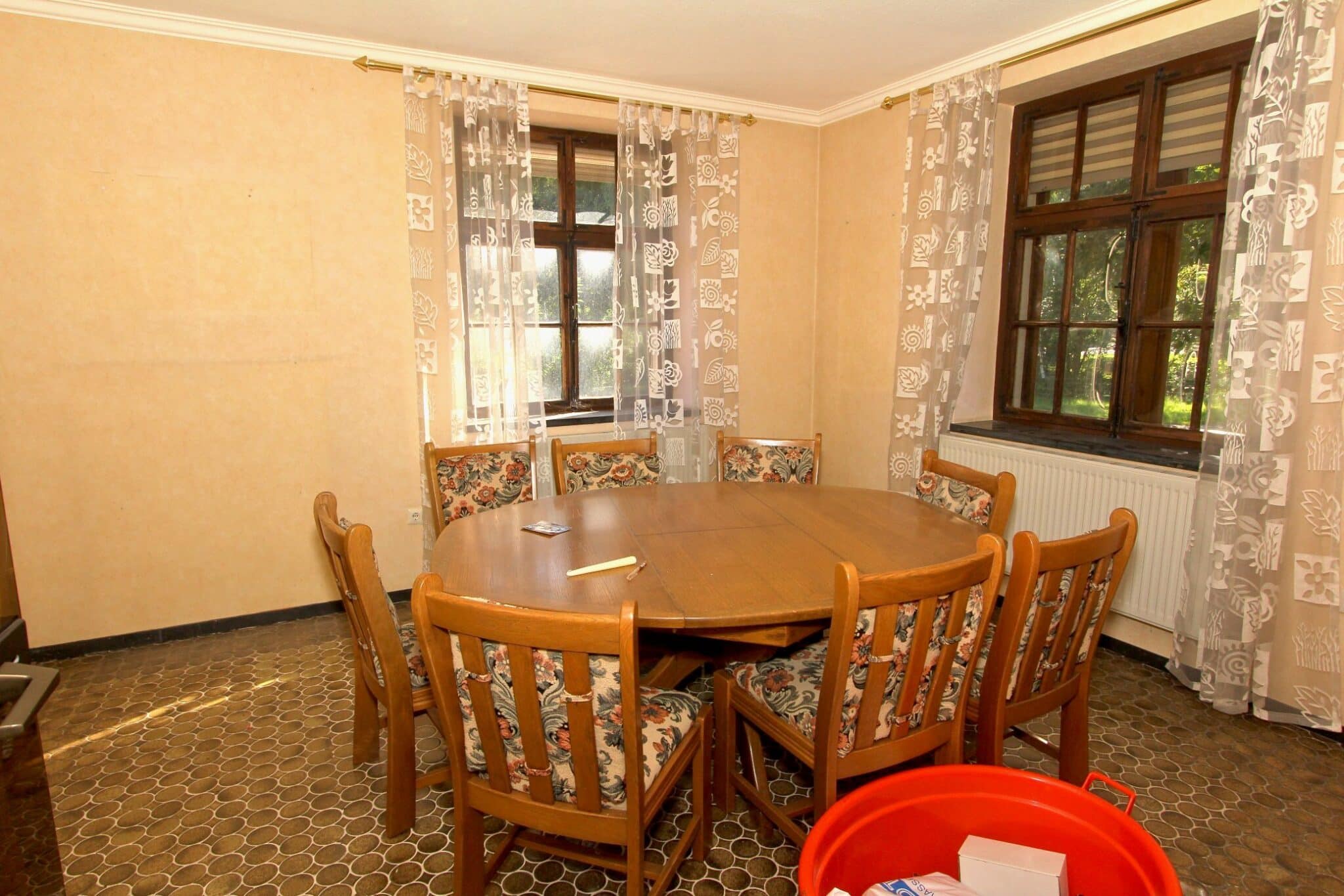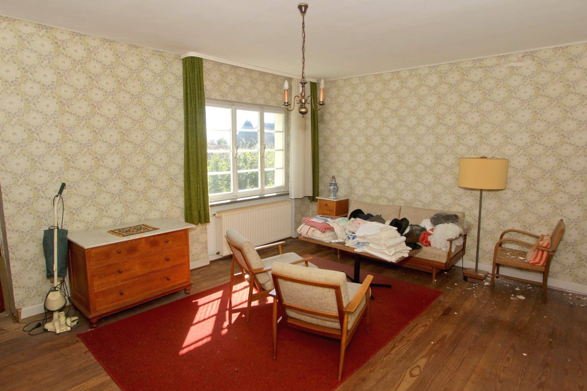 Die Beheizung erfolgt mit drei Einzelöfen (Öl und Kohle). Das Dach ist mit Naturschiefer eingedeckt. Den renovierungsbedürftigen Zustand der Immobilie entnehmen Sie bitte den Beschreibungsfotos.