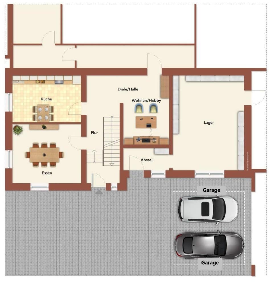 Ein echtes Plus für Komfort und Alltag: Die großzügige Doppelgarage bietet geschützten Raum für zwei Fahrzeuge.