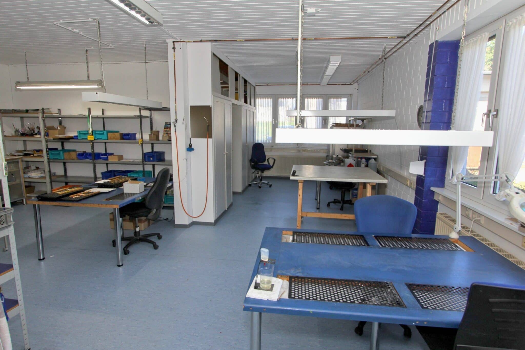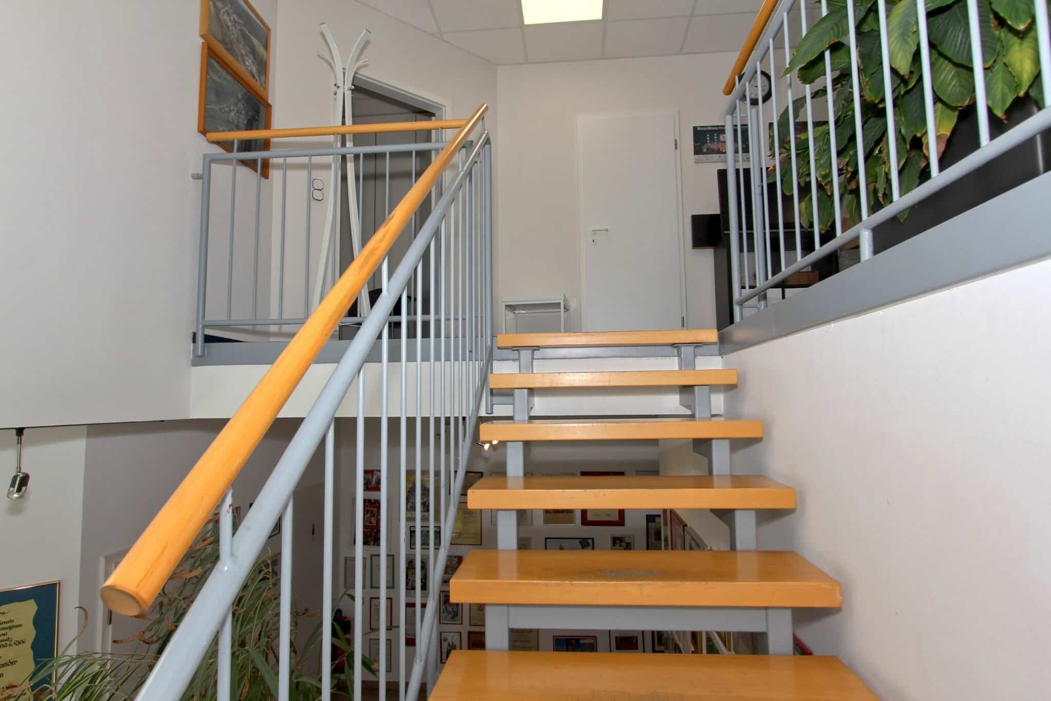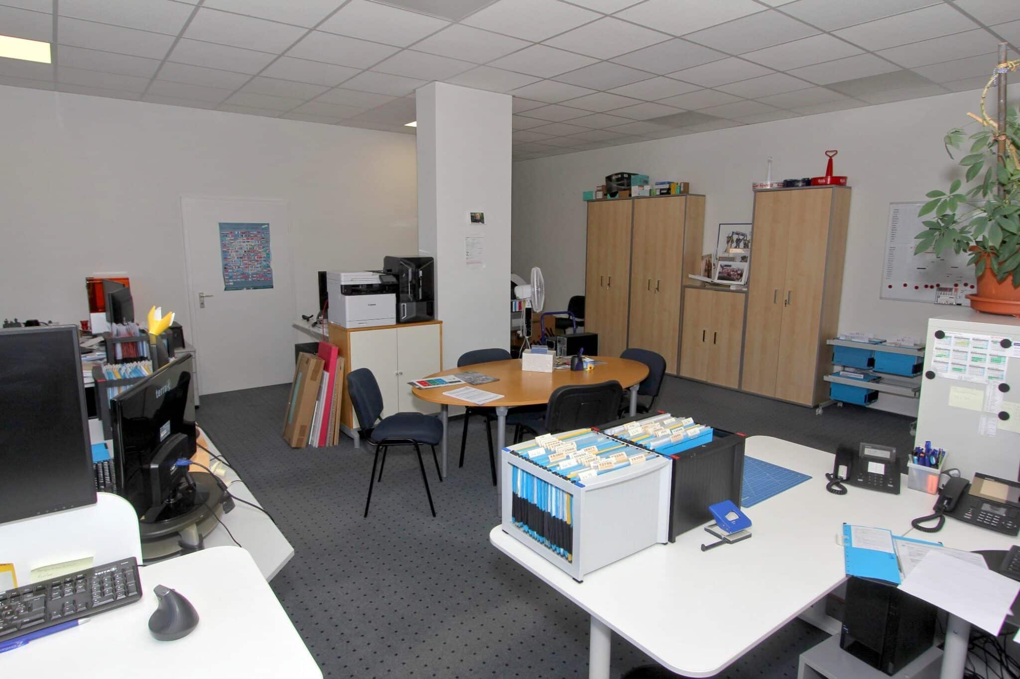 Der gewerbliche Teil des Anwesens wurde im Jahr 2001 errichtet und präsentiert sich in gepflegtem Zustand. Auf rund 928 m² Gewerbefläche verteilen sich helle Büros, funktionale Sozial- und Technikräume sowie eine großzügige Produktions- oder Werkhalle mit ebenerdiger Zufahrt.