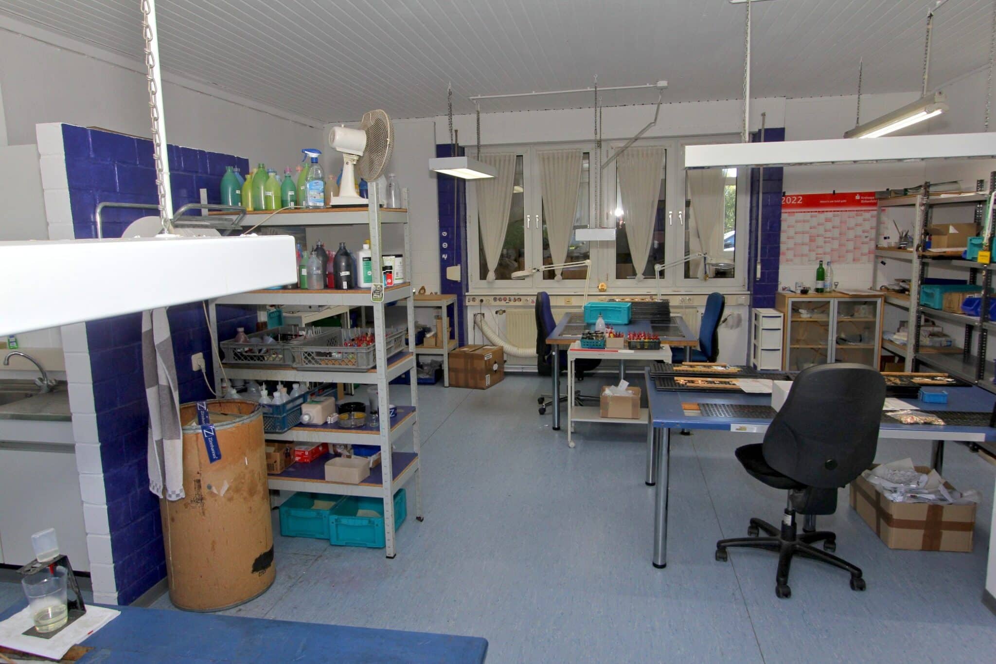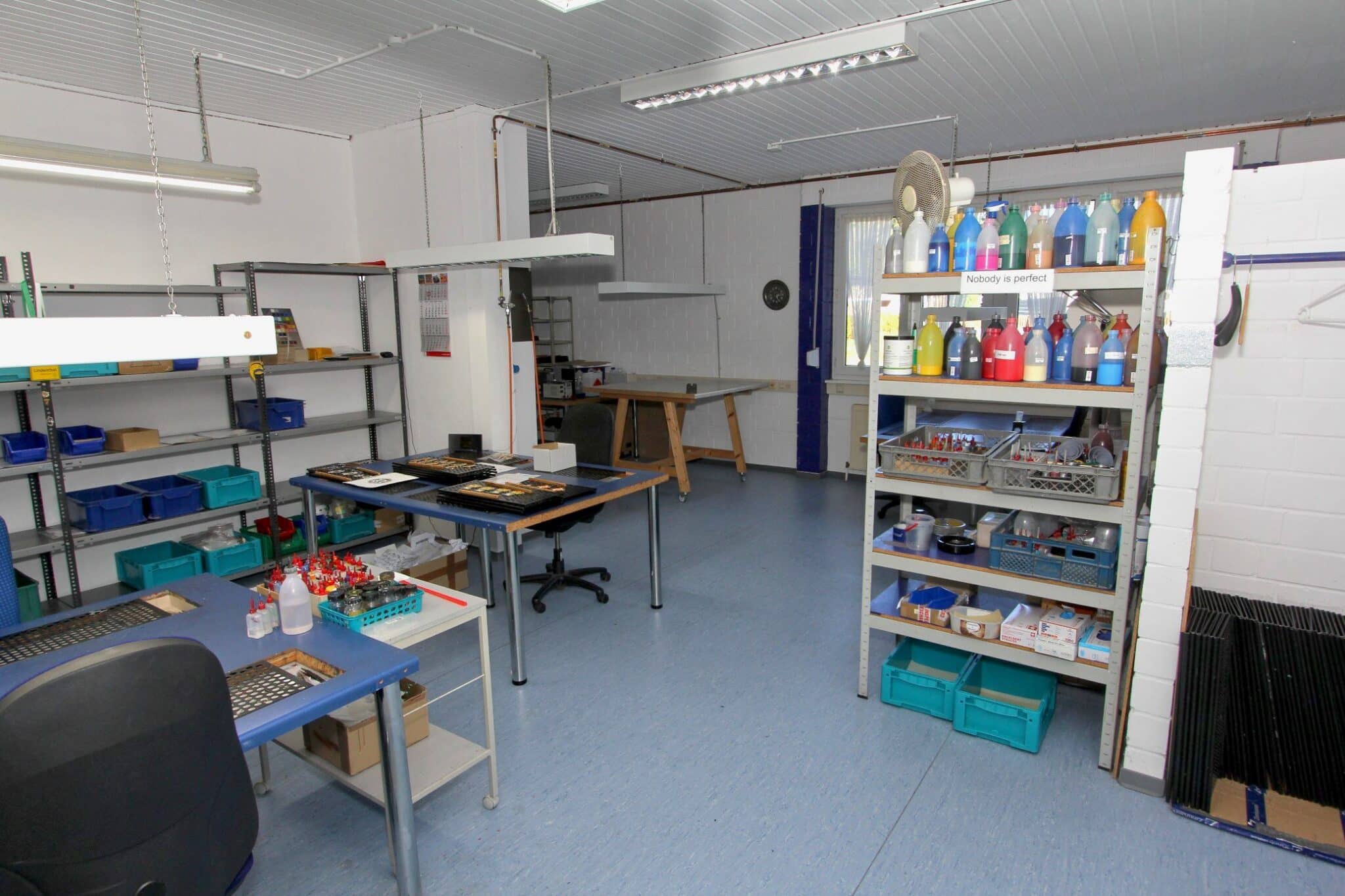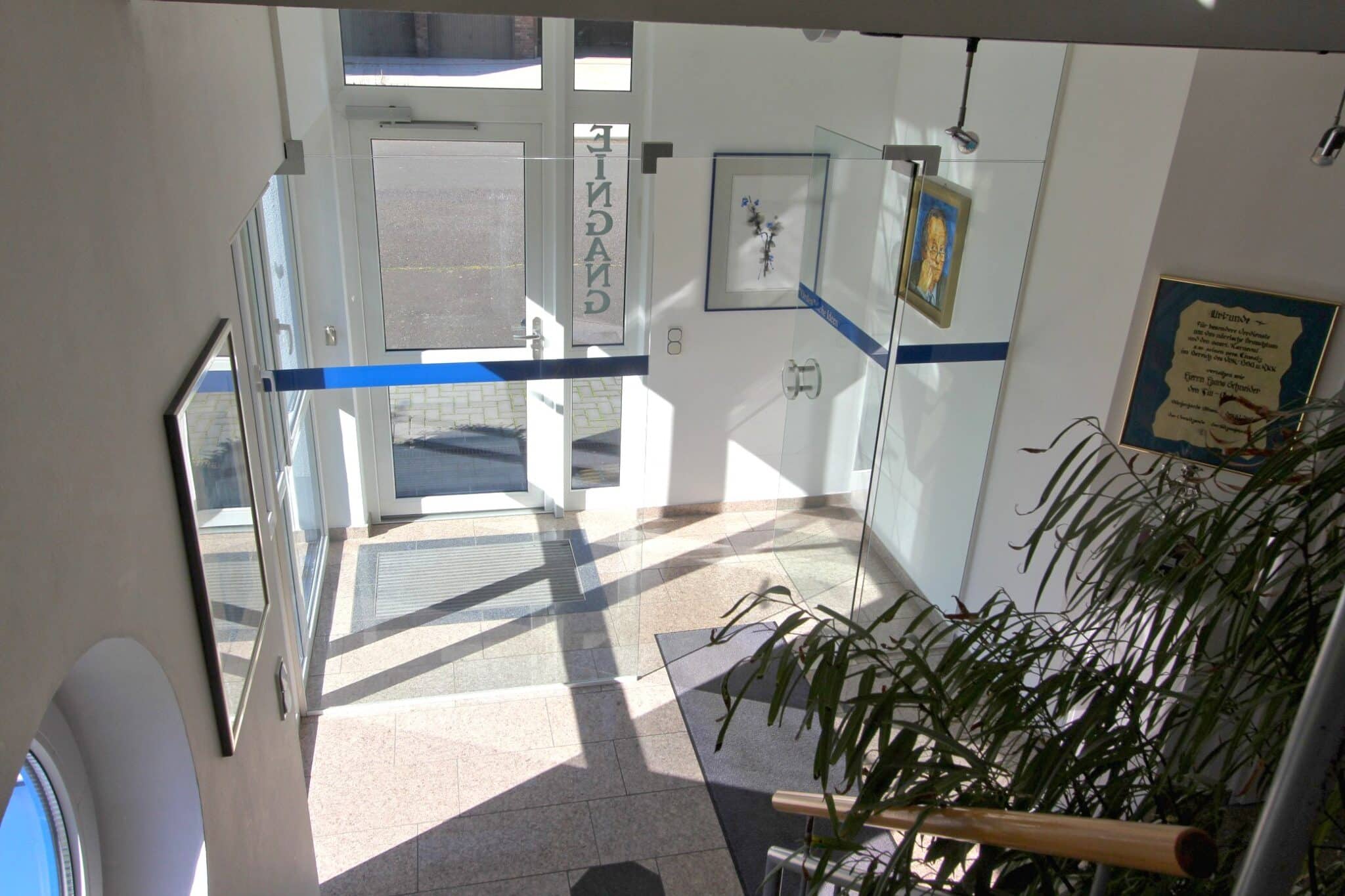 Der gewerbliche Teil des Anwesens wurde im Jahr 2001 errichtet und präsentiert sich in gepflegtem Zustand. Auf rund 928 m² Gewerbefläche verteilen sich helle Büros, funktionale Sozial- und Technikräume sowie eine großzügige Produktions- oder Werkhalle mit ebenerdiger Zufahrt.