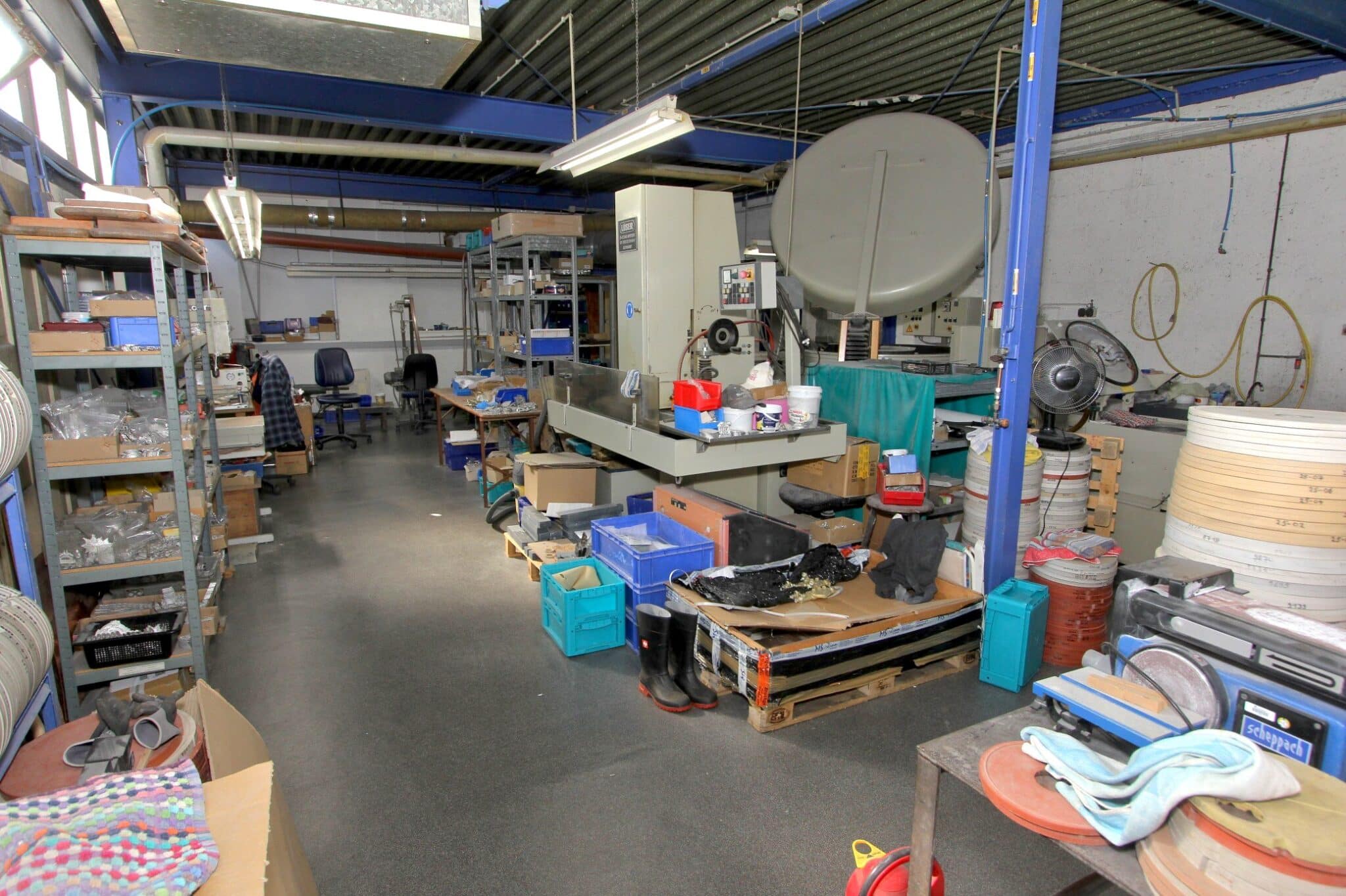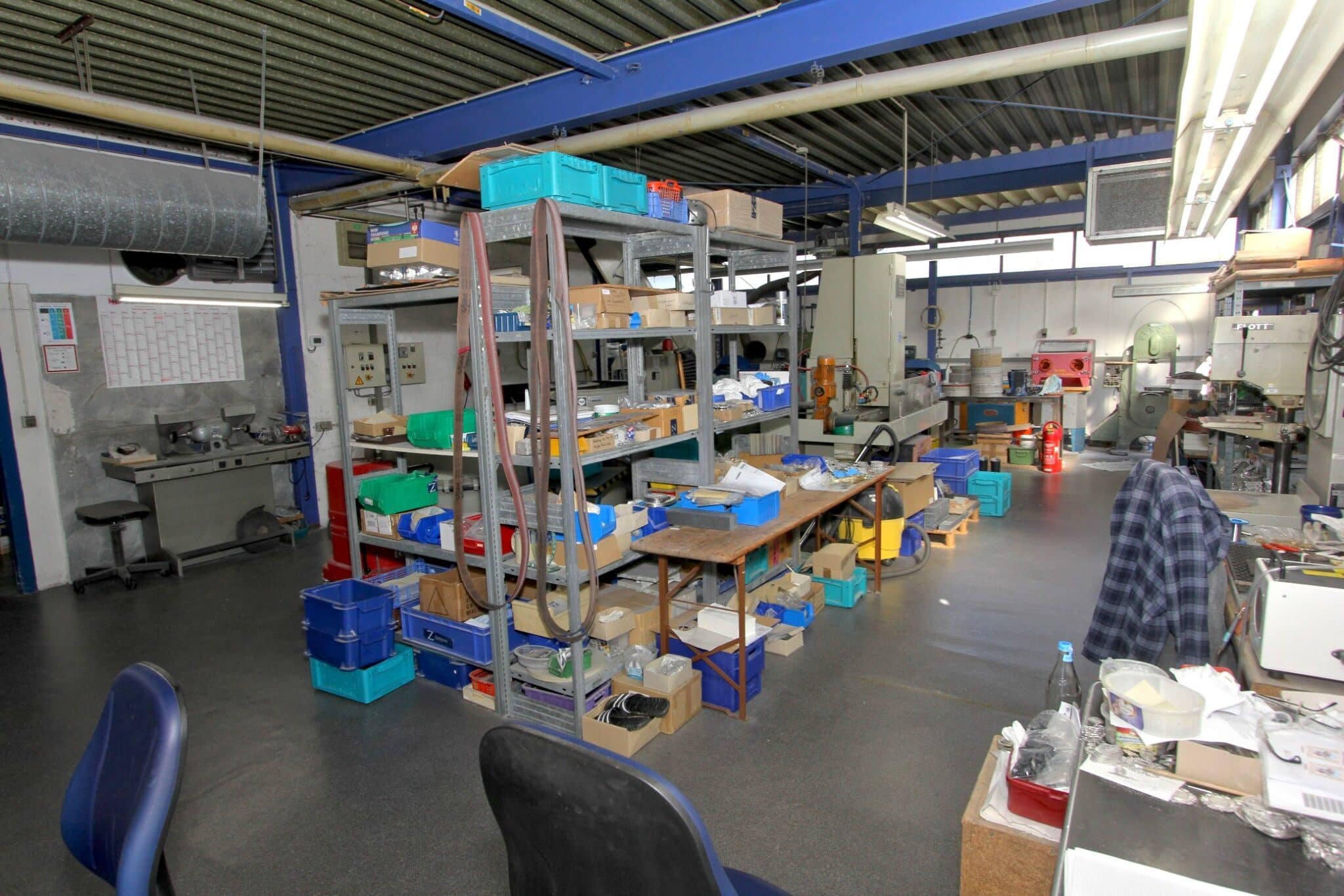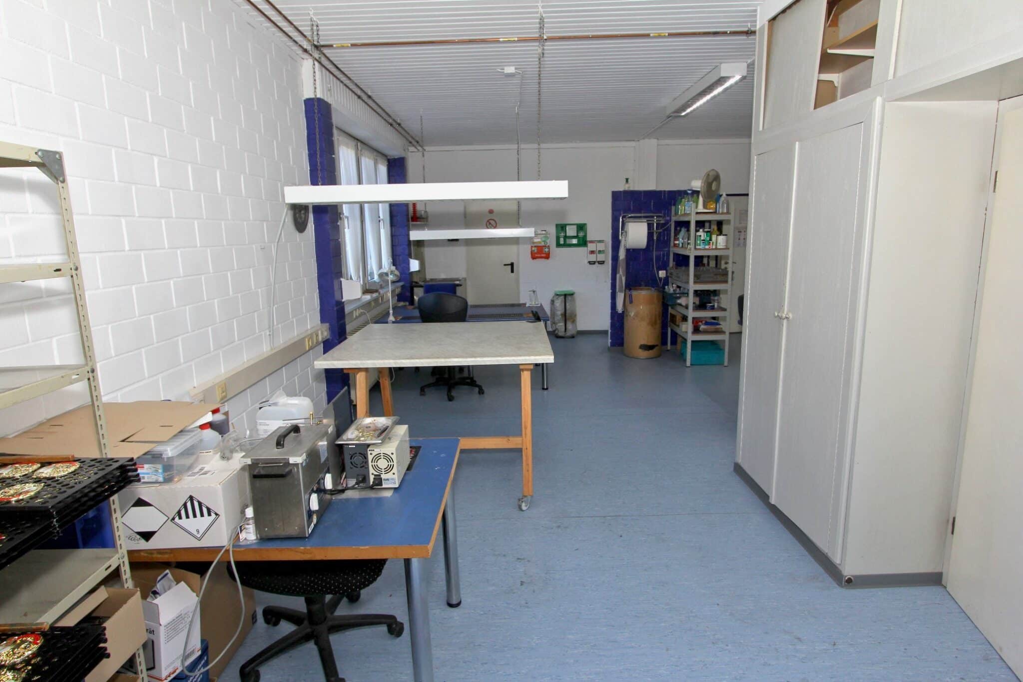 Die solide Bauweise, Industrieböden und hohen Decken gewährleisten eine vielseitige Nutzung – von Werkstatt- und Fertigungsflächen bis hin zu modernen Bürostrukturen oder kombinierten Arbeitszonen. Eine zeitgemäße IT- und Kommunikationsverkabelung ist vorhanden.