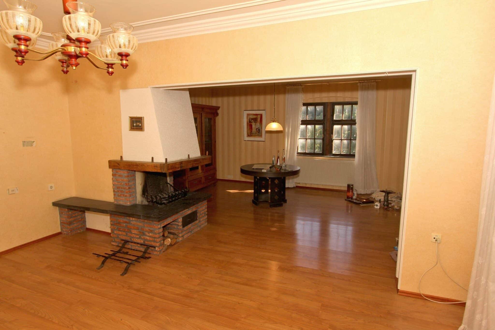Das angrenzende Wohnhaus wurde um 1900 als Dorfschule erbaut und später zu einem Wohnhaus umgestaltet. Auf rund 224 m² Wohnfläche bietet es großzügige Räume mit hohen Decken, hellen Fenstern und dem besonderen Charme eines historischen Gebäudes.